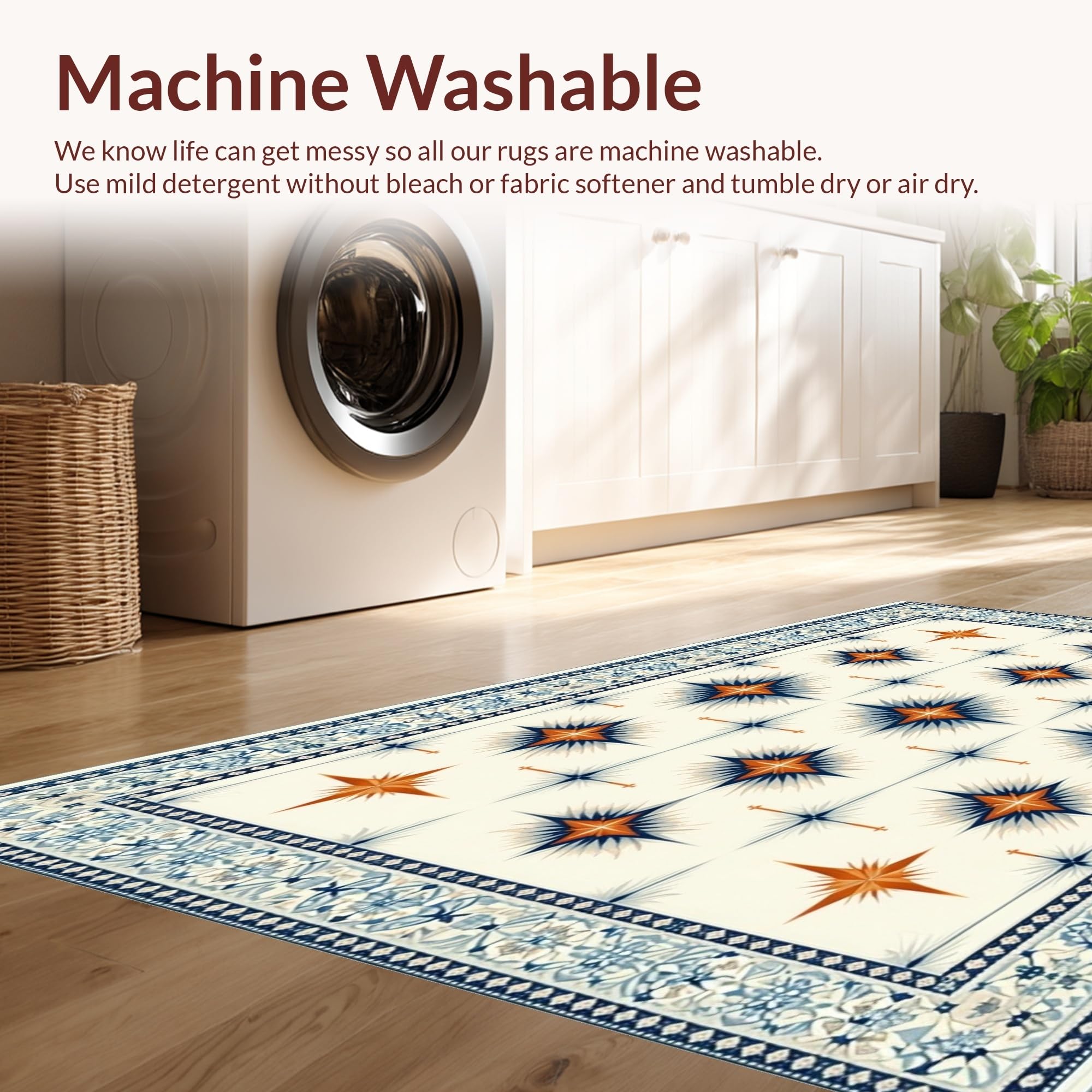 - Machine Washable: Our rugs can be easily thrown in the wash machine.
