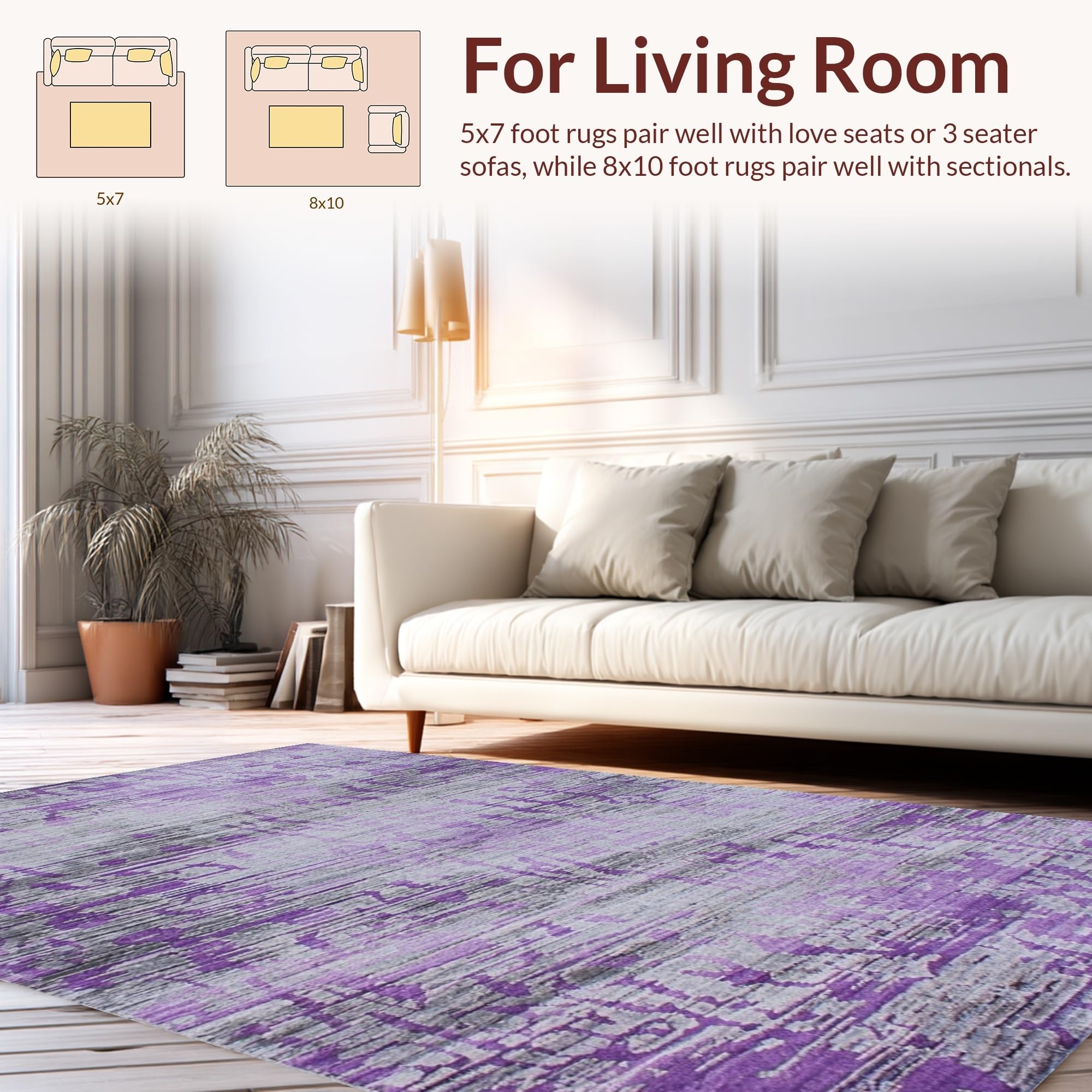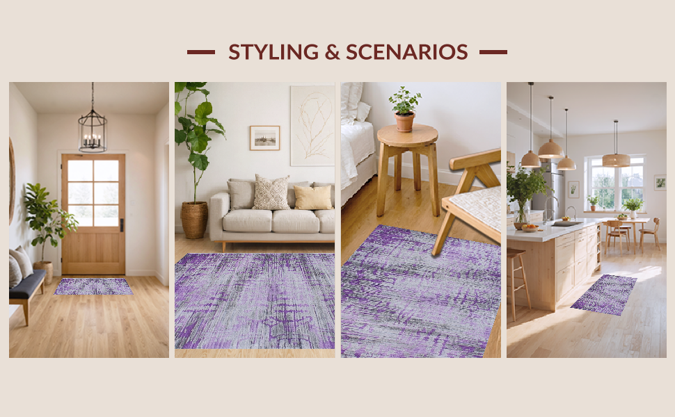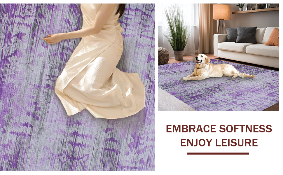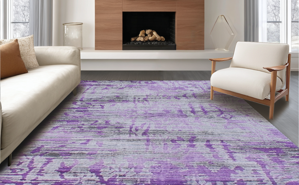 Ultra Soft Area Rug, Non Slip, Stain Resistant, Washable Area Rugs for Living Room, Bedroom, Dynamic Layered Color Spectrum(Purple) Overview: