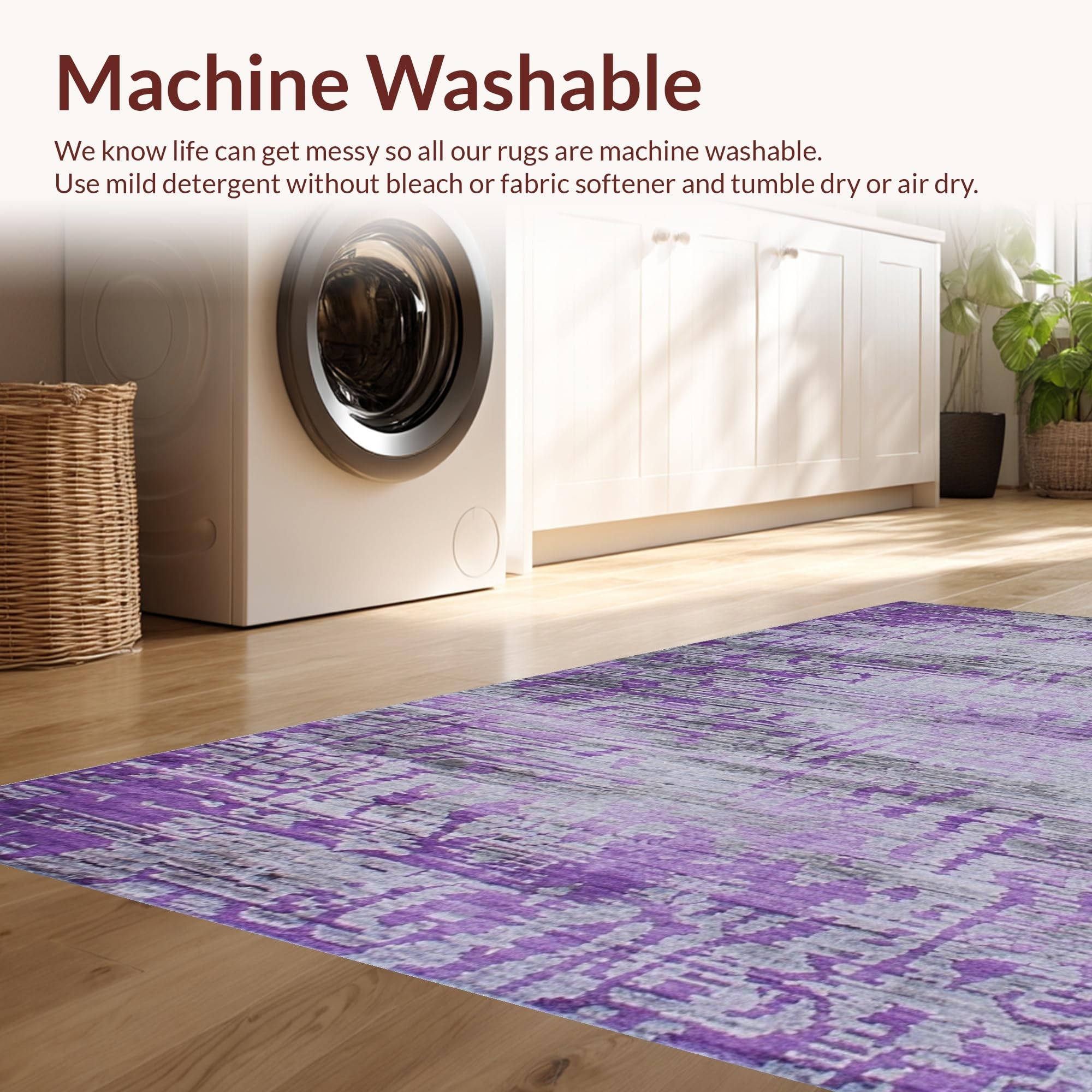 - Machine Washable: Our rugs can be easily thrown in the wash machine.