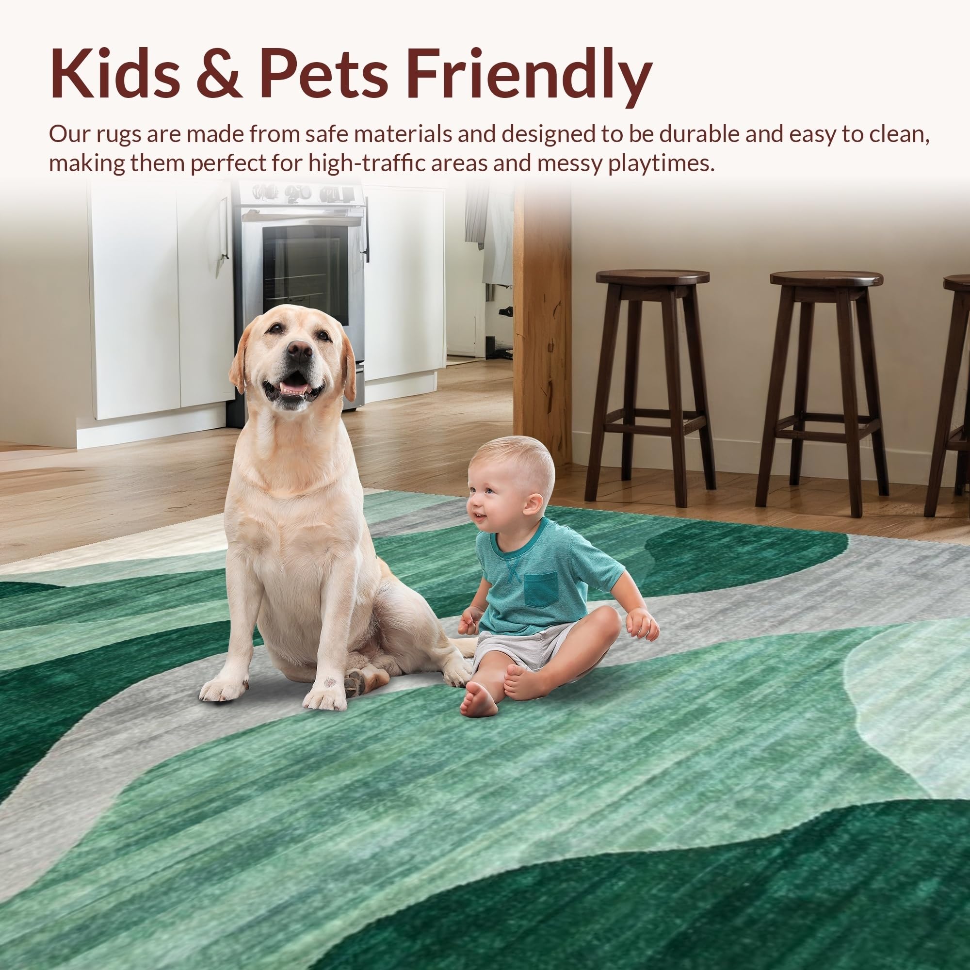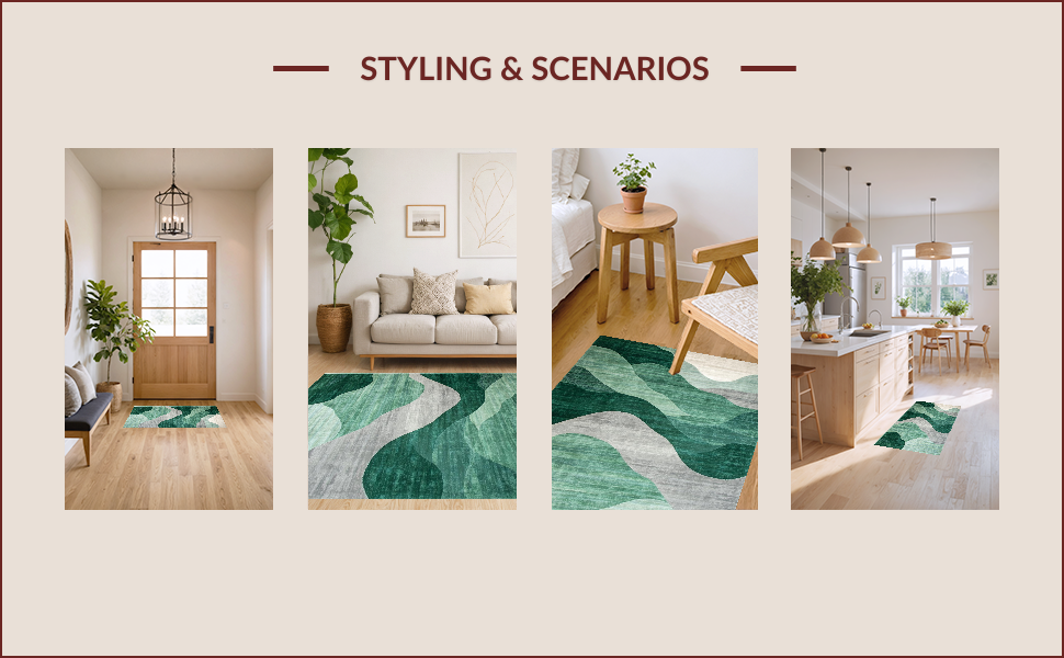 Ultra Soft Area Rug, Non Slip, Stain Resistant, Washable Area Rugs for Living Room, Bedroom, Dynamic Light Blue Linear Arrangement(Green) Overview: