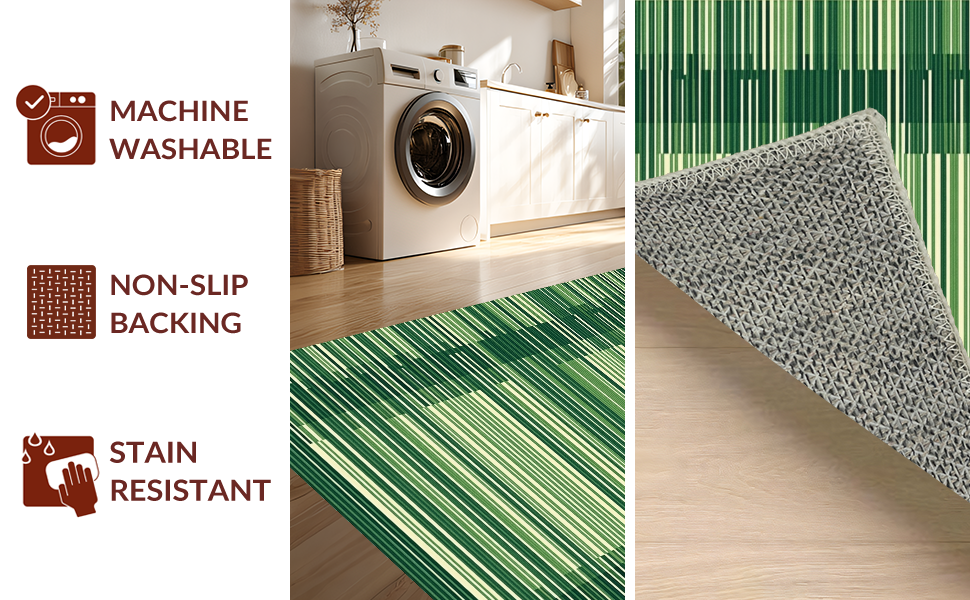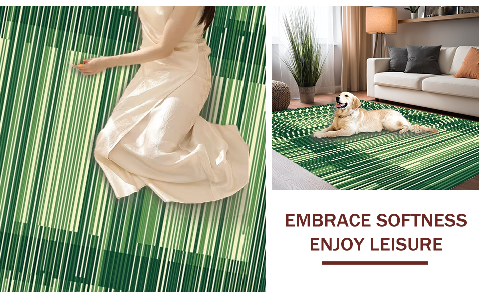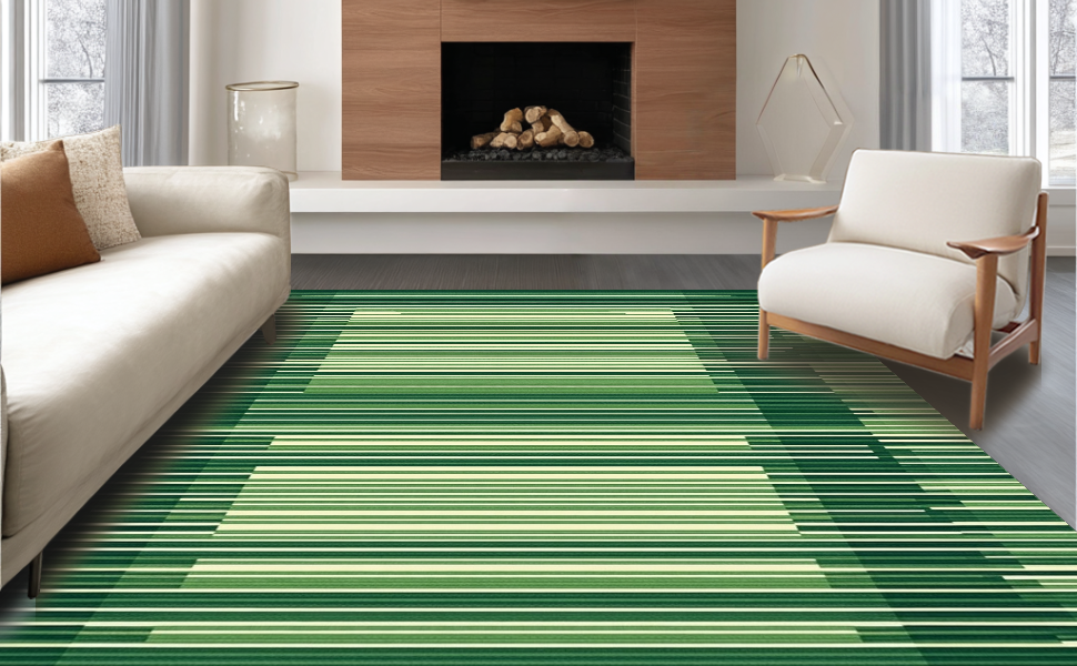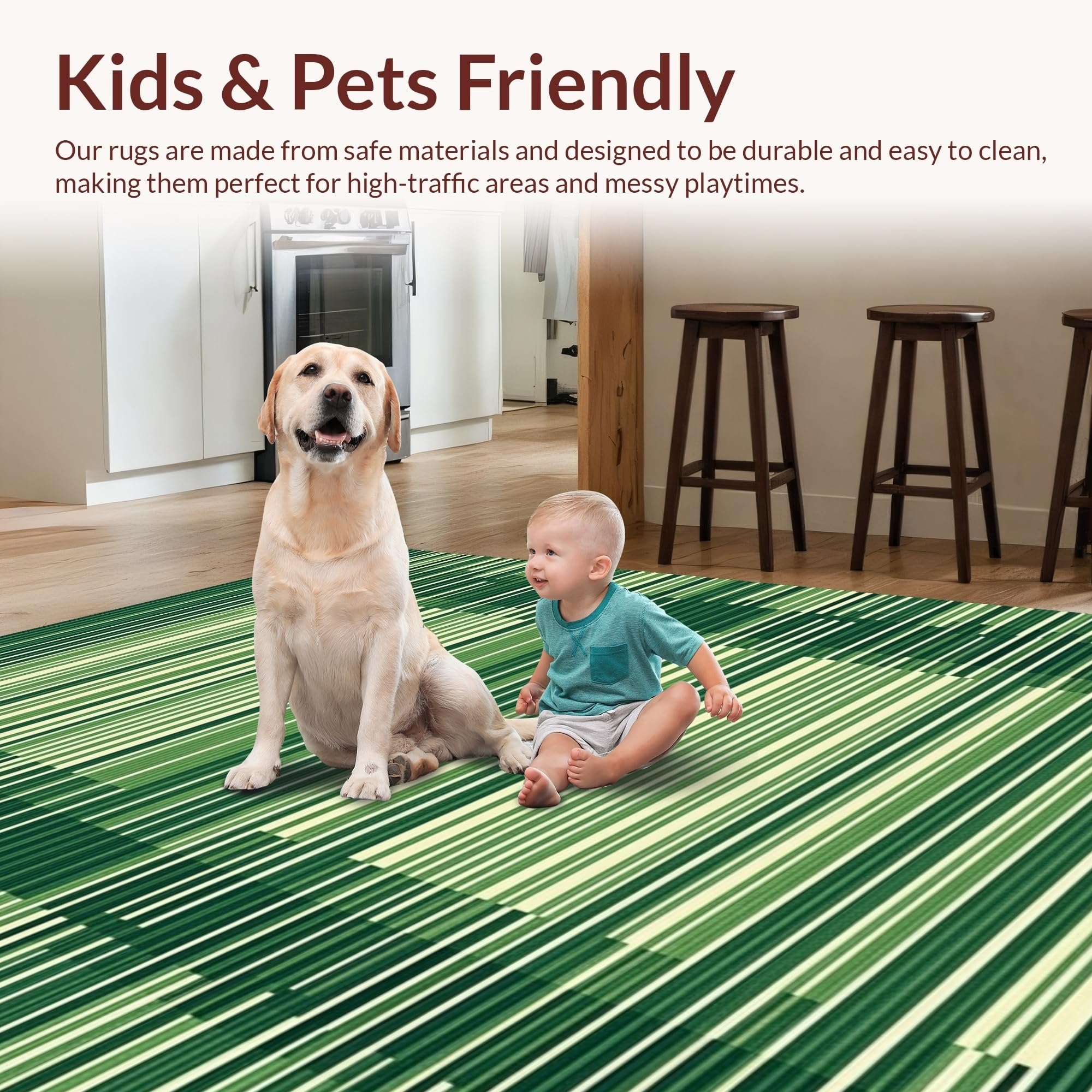Ultra Soft Area Rug, Non Slip, Stain Resistant, Washable Area Rugs for Living Room, Bedroom, Dynamic Lively Geometric Texture(Green) Overview: