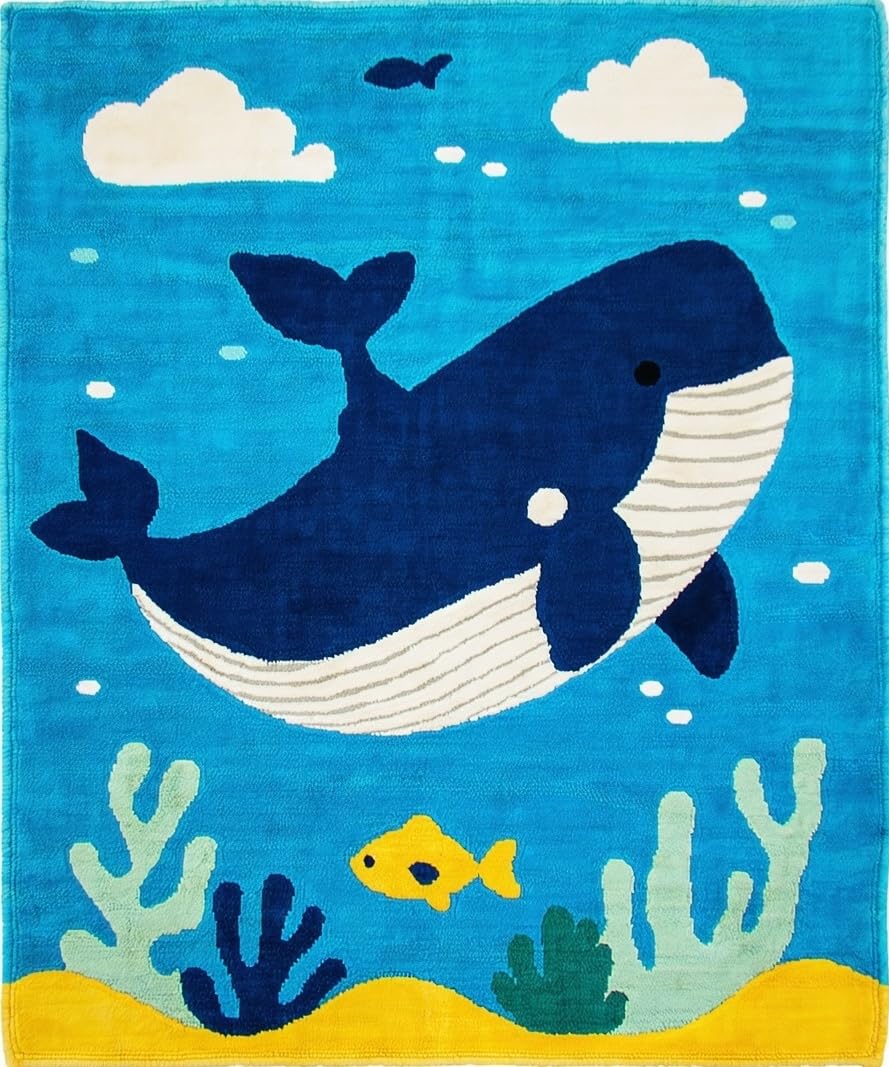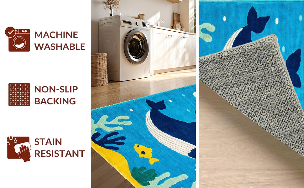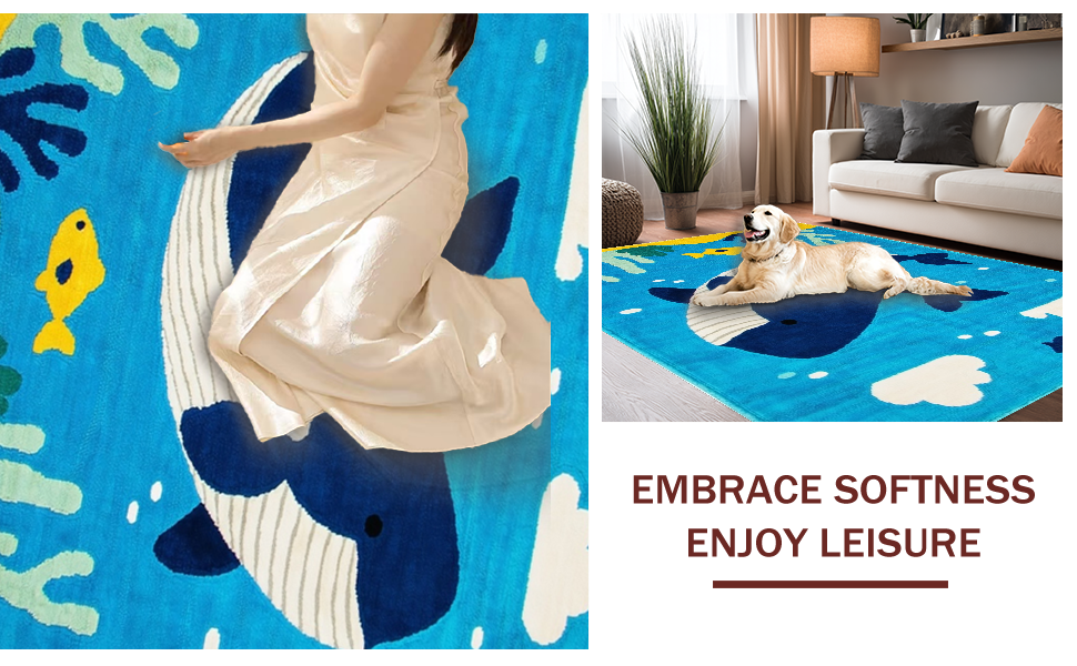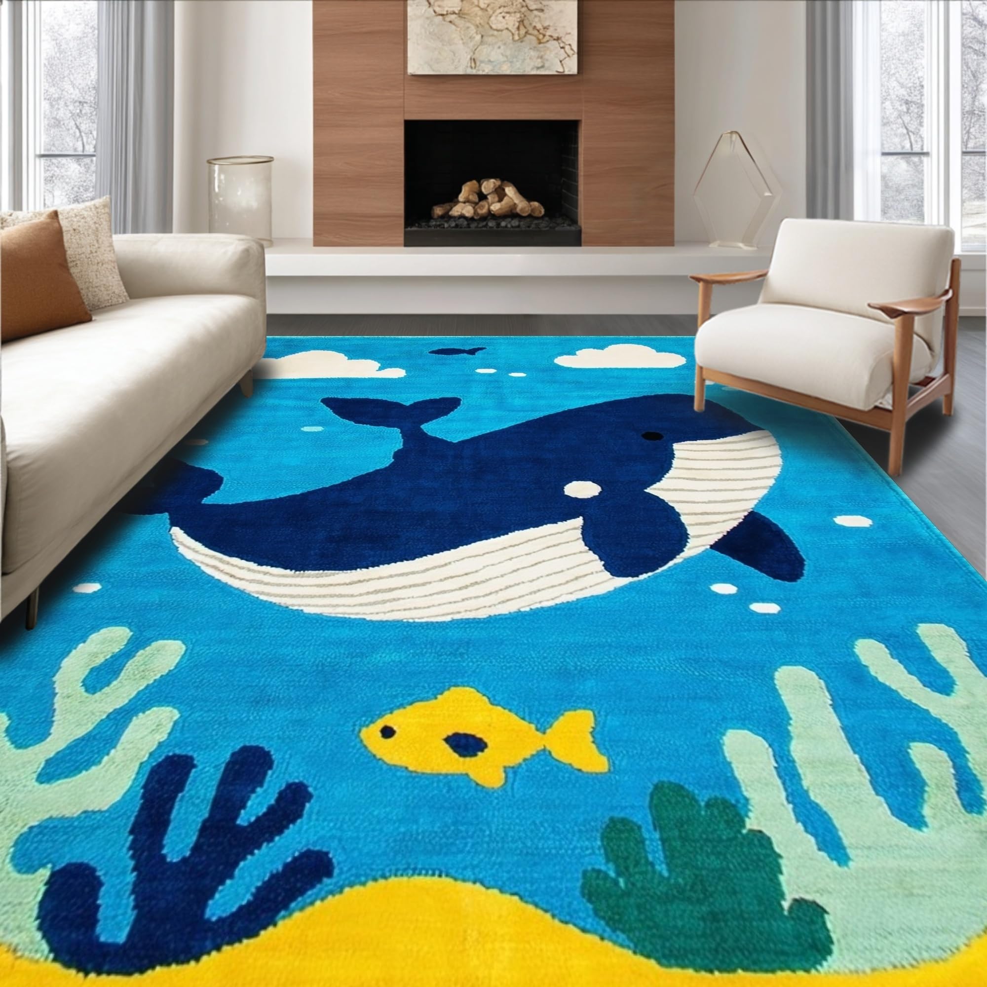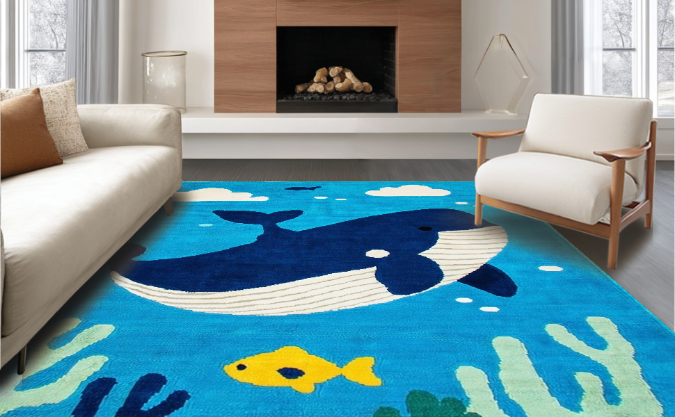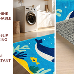 Ultra Soft Area Rug, Non Slip, Stain Resistant, Washable Area Rugs for Living Room, Bedroom, Dynamic Marine Life Educational Design(Blue) Overview: