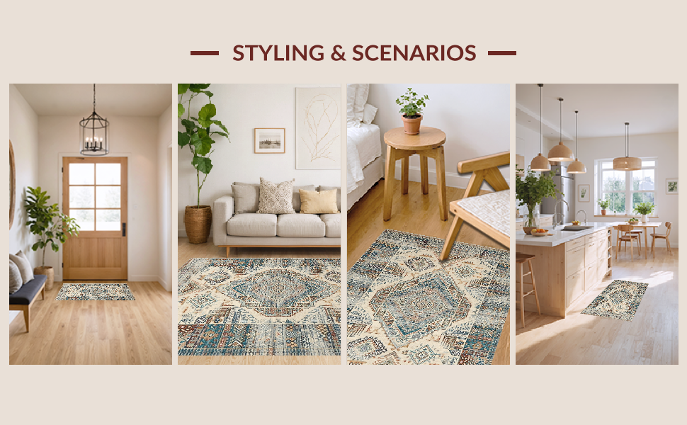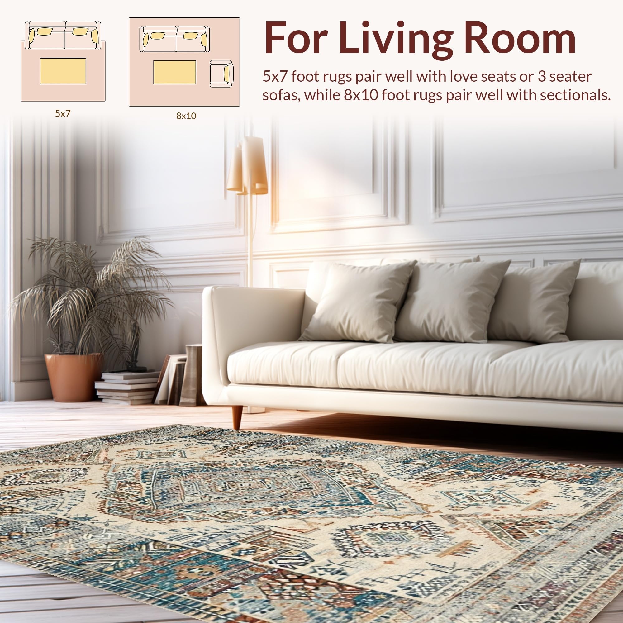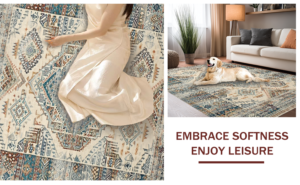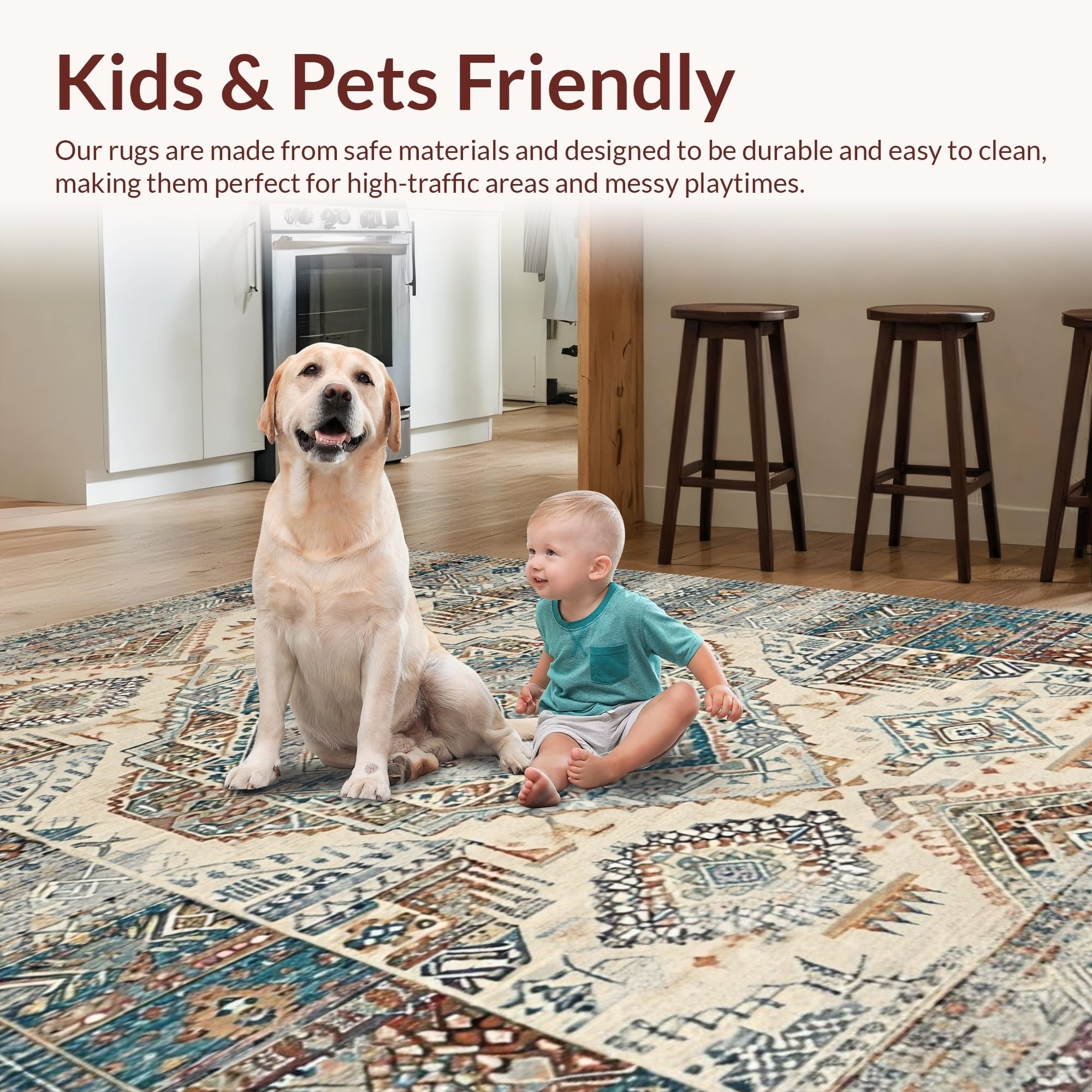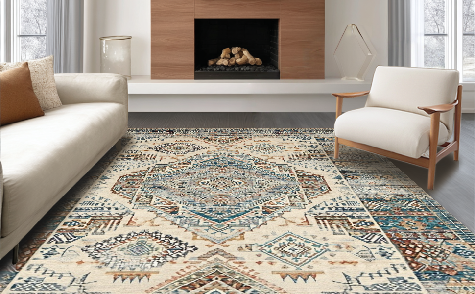 Ultra Soft Area Rug, Non Slip, Stain Resistant, Washable Area Rugs for Living Room, Bedroom, Dynamic Modern Eclectic Design Scheme(Beige) Overview: