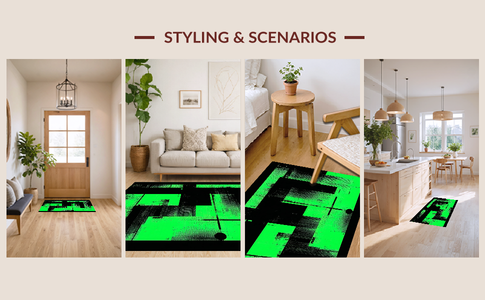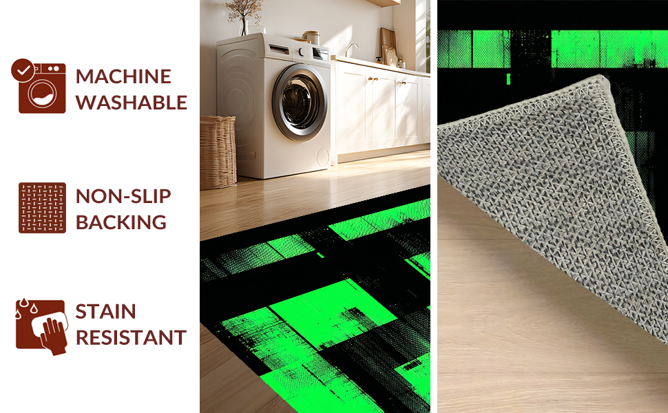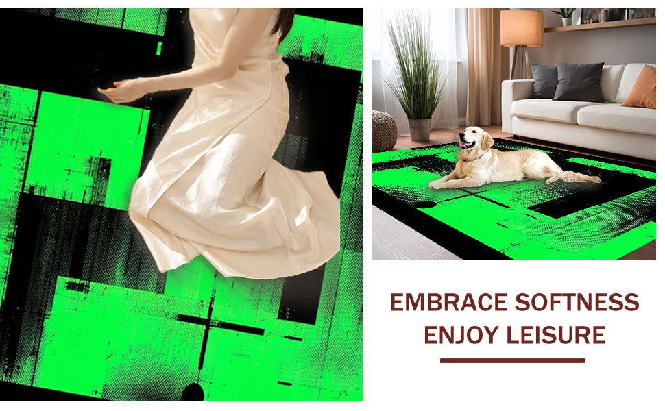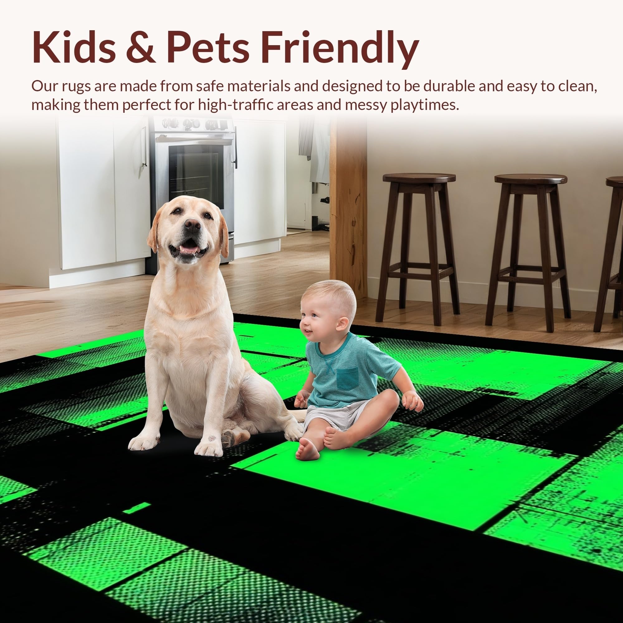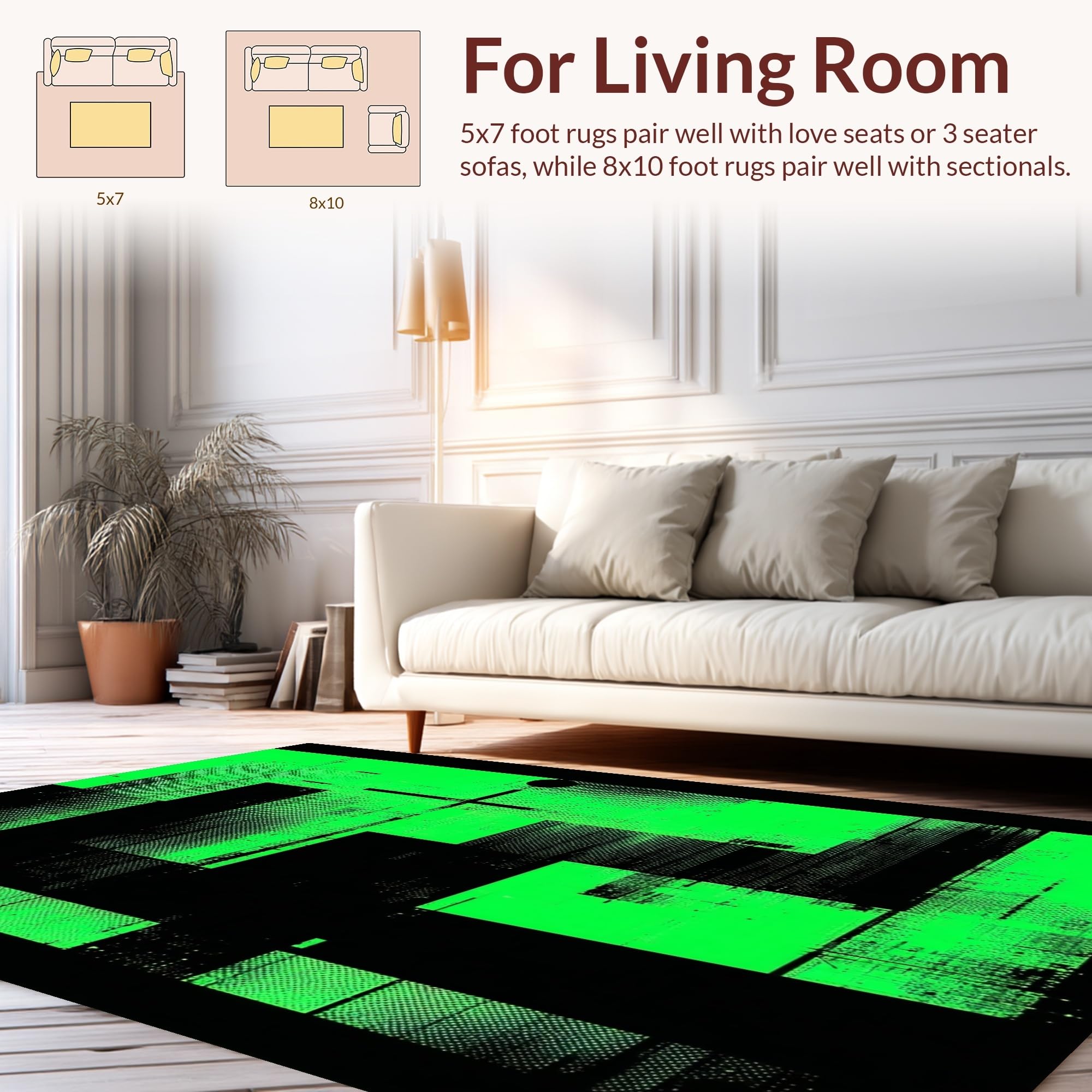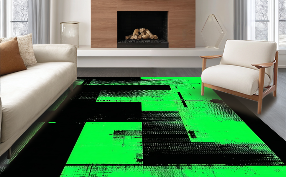 Ultra Soft Area Rug, Non Slip, Stain Resistant, Washable Area Rugs for Living Room, Bedroom, Dynamic Modern Patterned Composition(Green) Overview:
