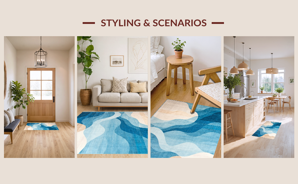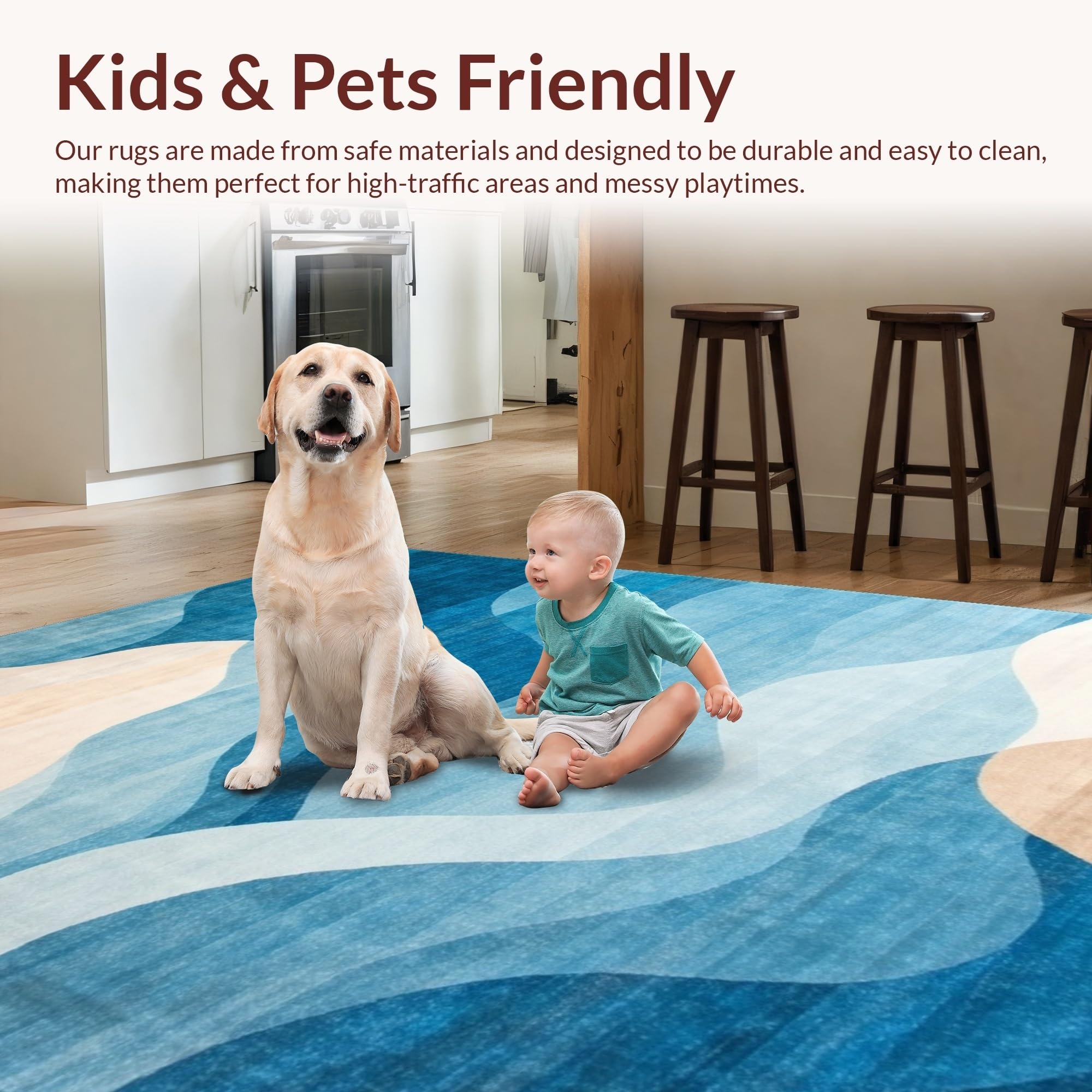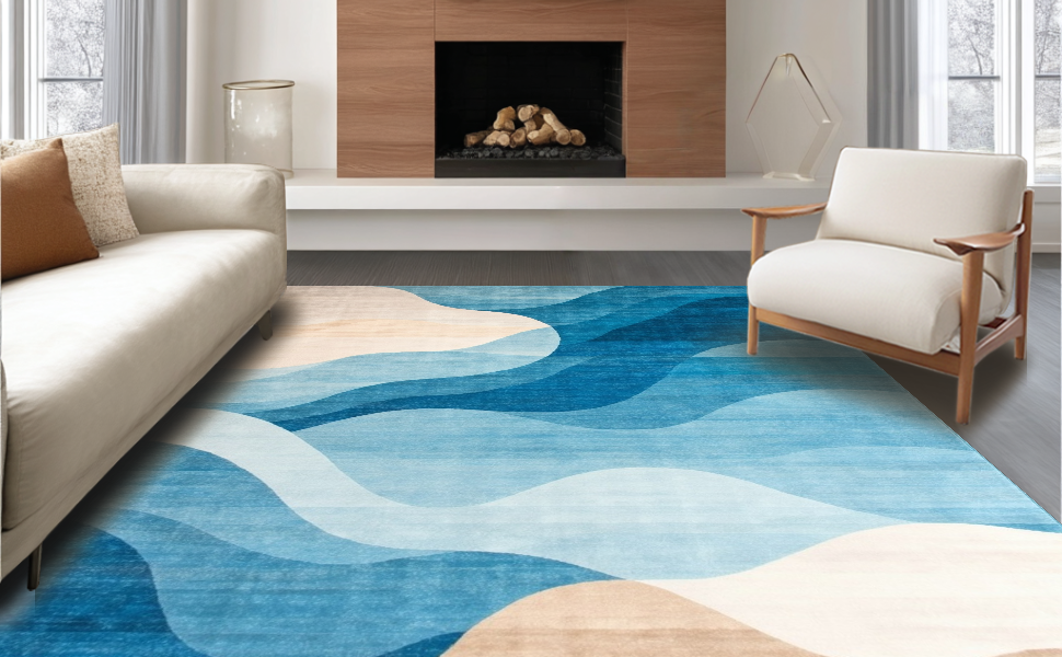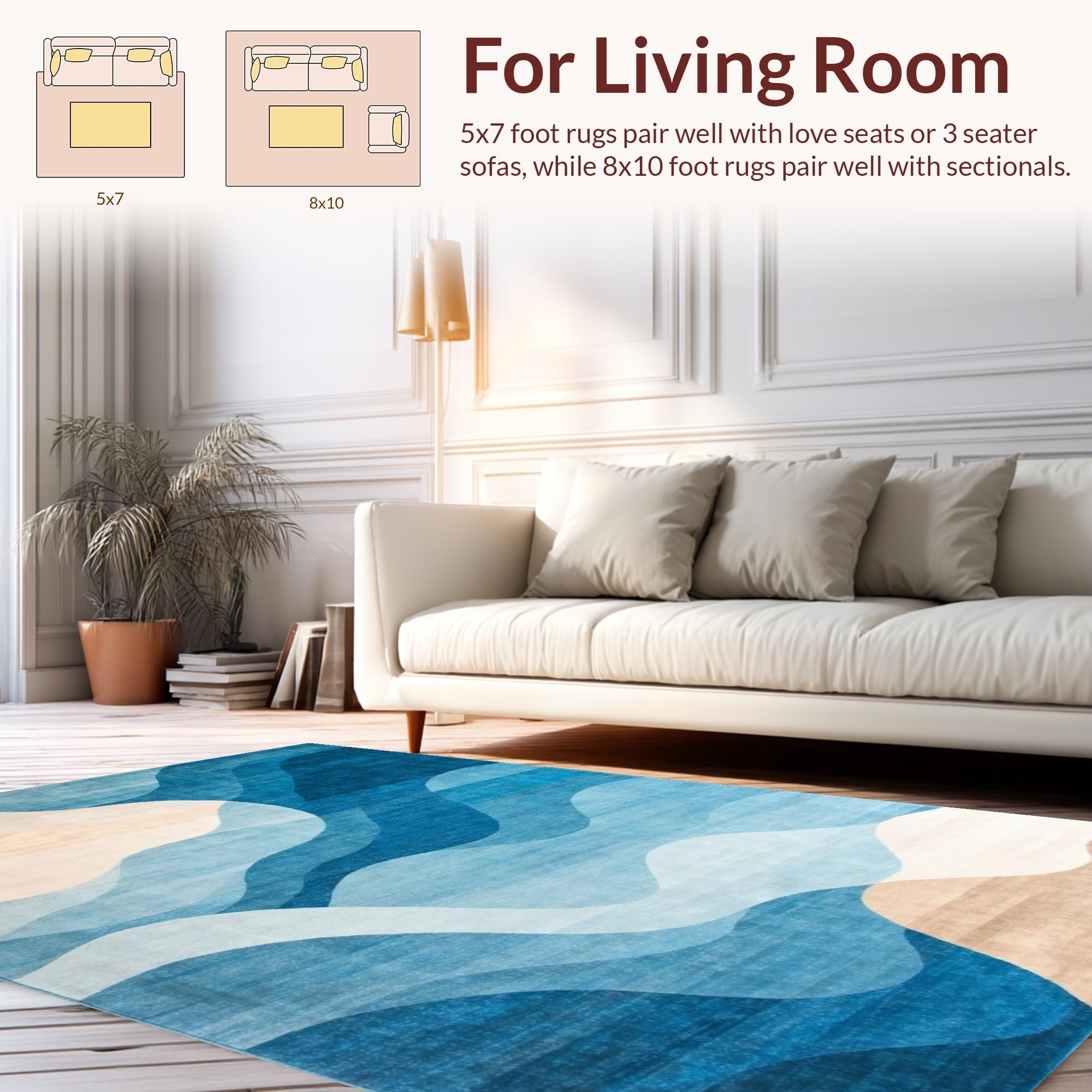 Ultra Soft Area Rug, Non Slip, Stain Resistant, Washable Area Rugs for Living Room, Bedroom, Dynamic Modern Textured Illusion(Beige) Overview: