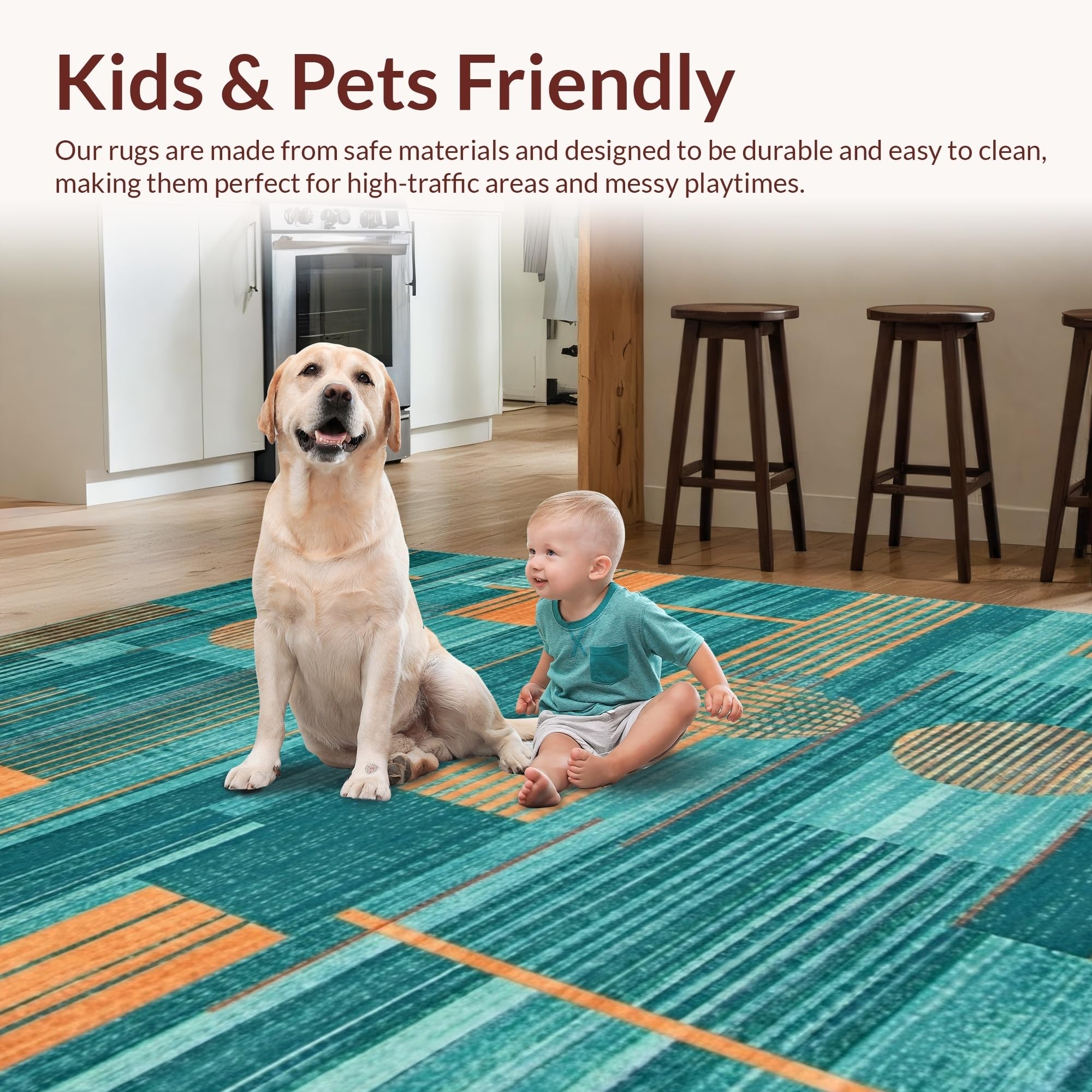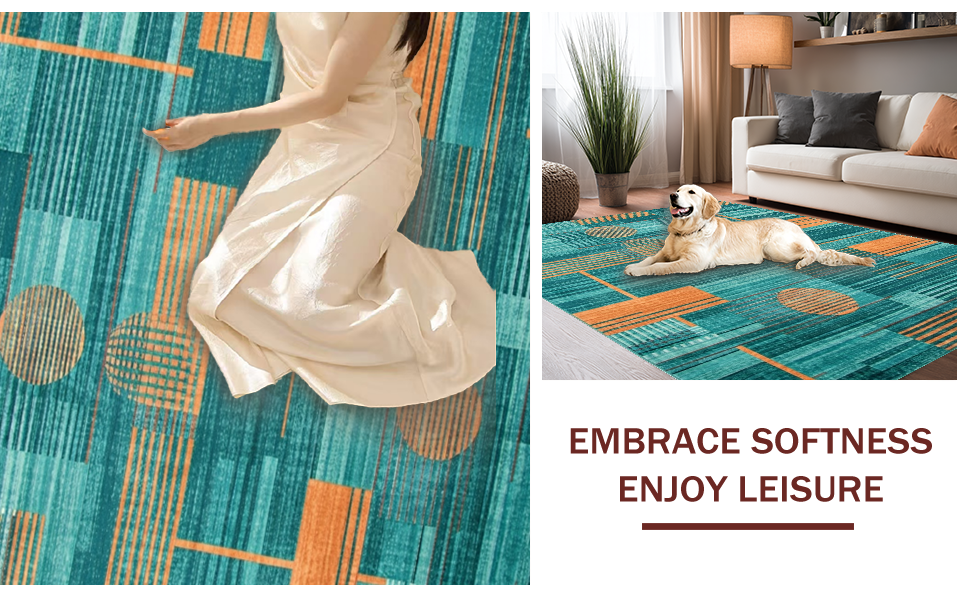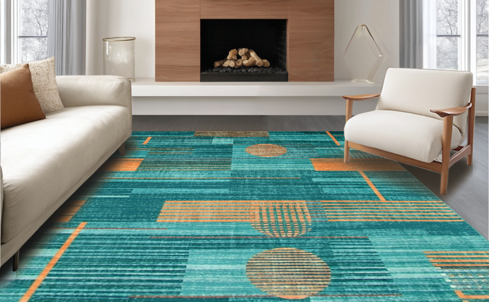 Ultra Soft Area Rug, Non Slip, Stain Resistant, Washable Area Rugs for Living Room, Bedroom, Dynamic Modern Trellis Aesthetic(Blue) Overview: