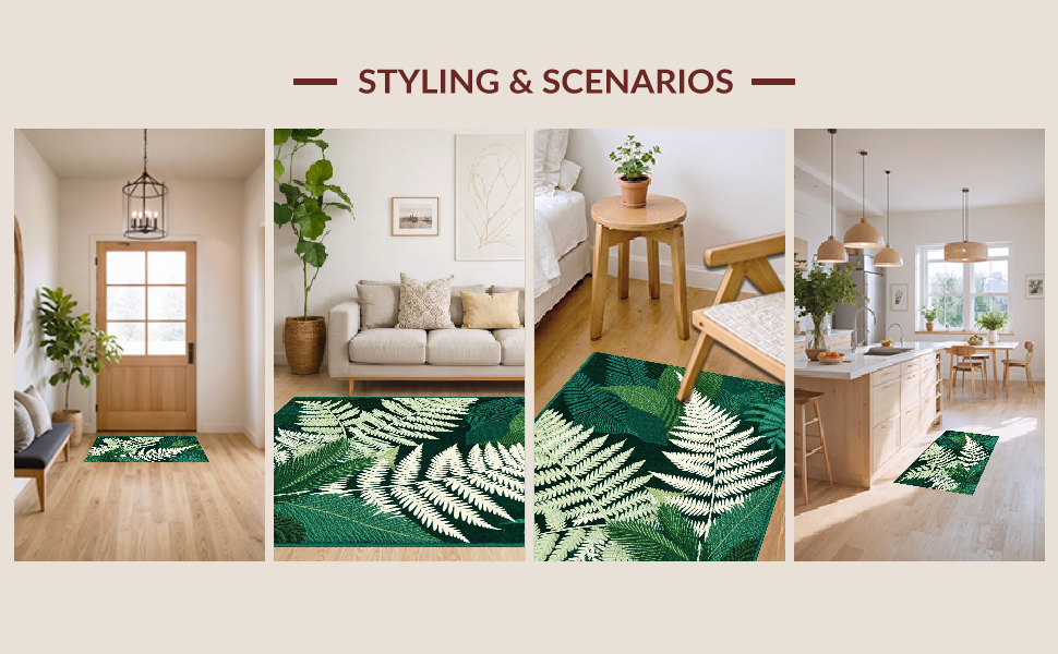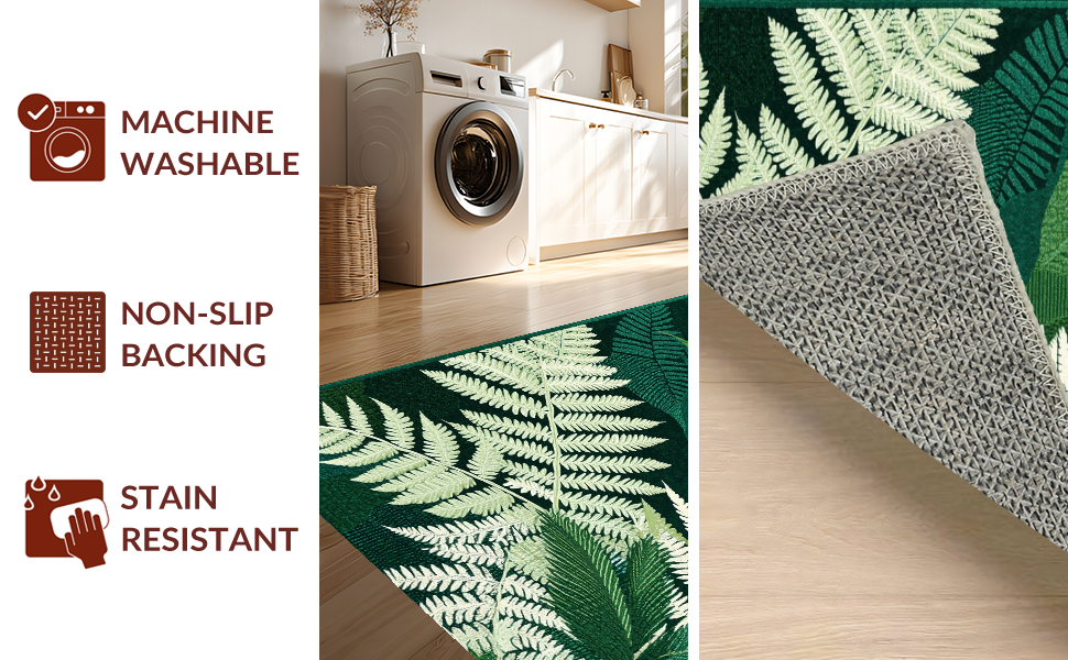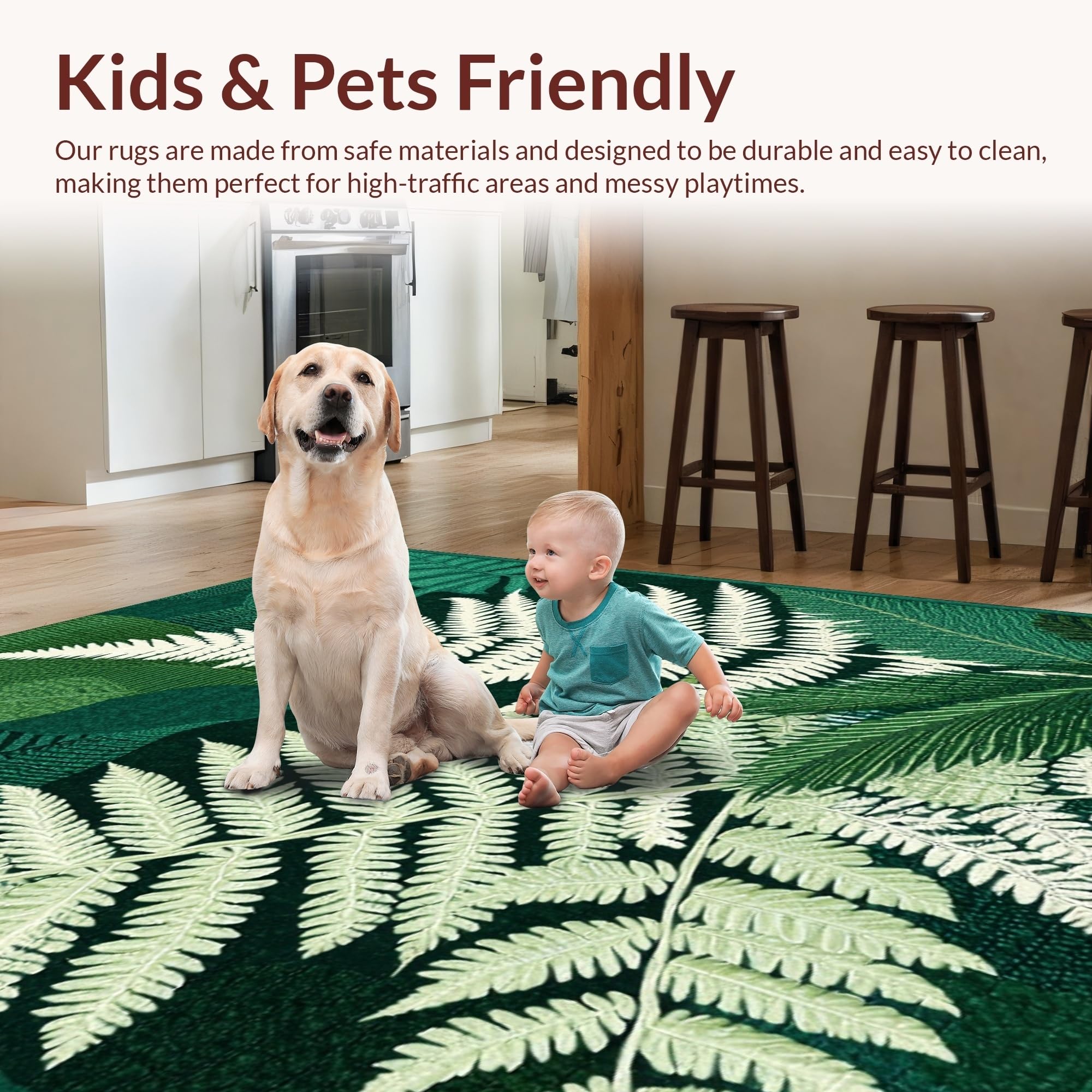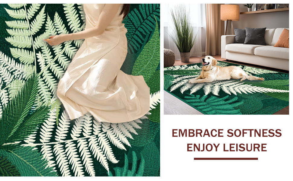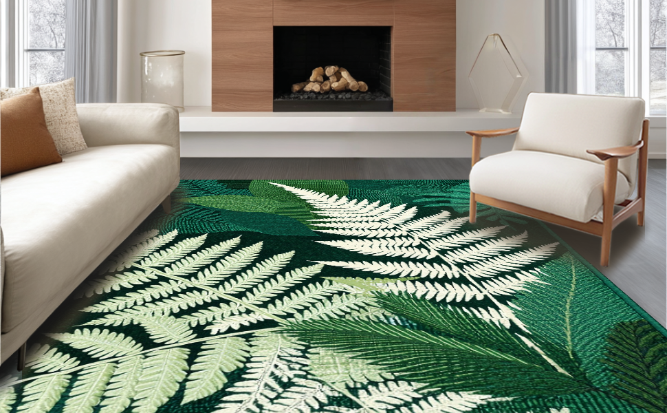 Ultra Soft Area Rug, Non Slip, Stain Resistant, Washable Area Rugs for Living Room, Bedroom, Dynamic Modern Tropical Elements(Green) Overview: