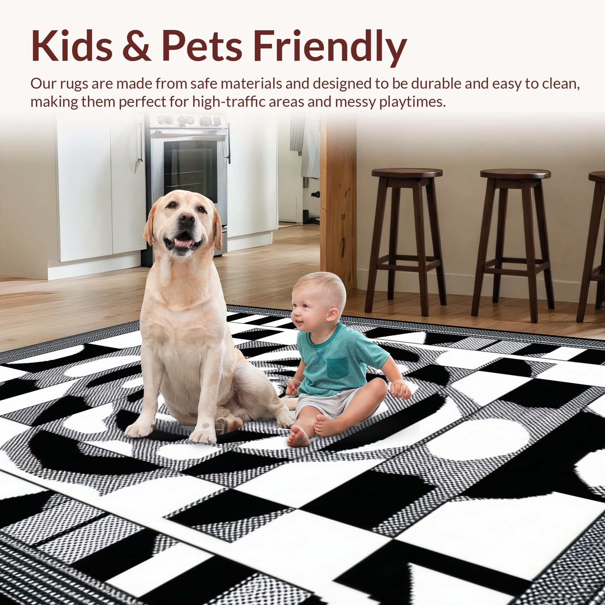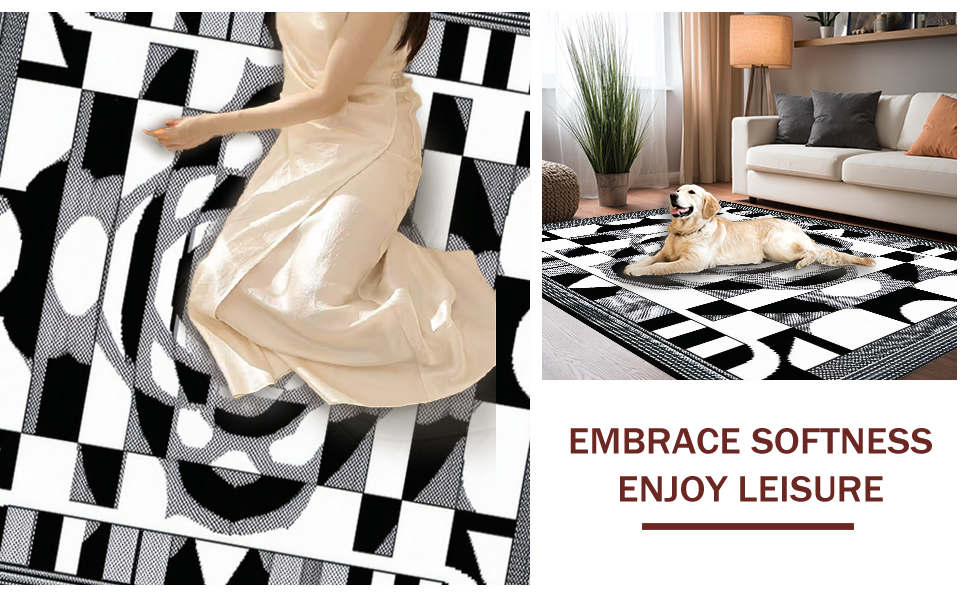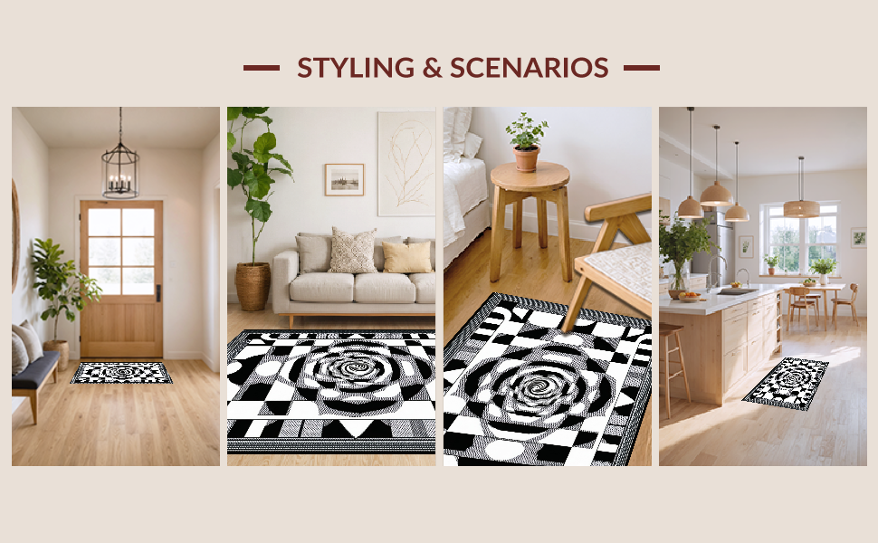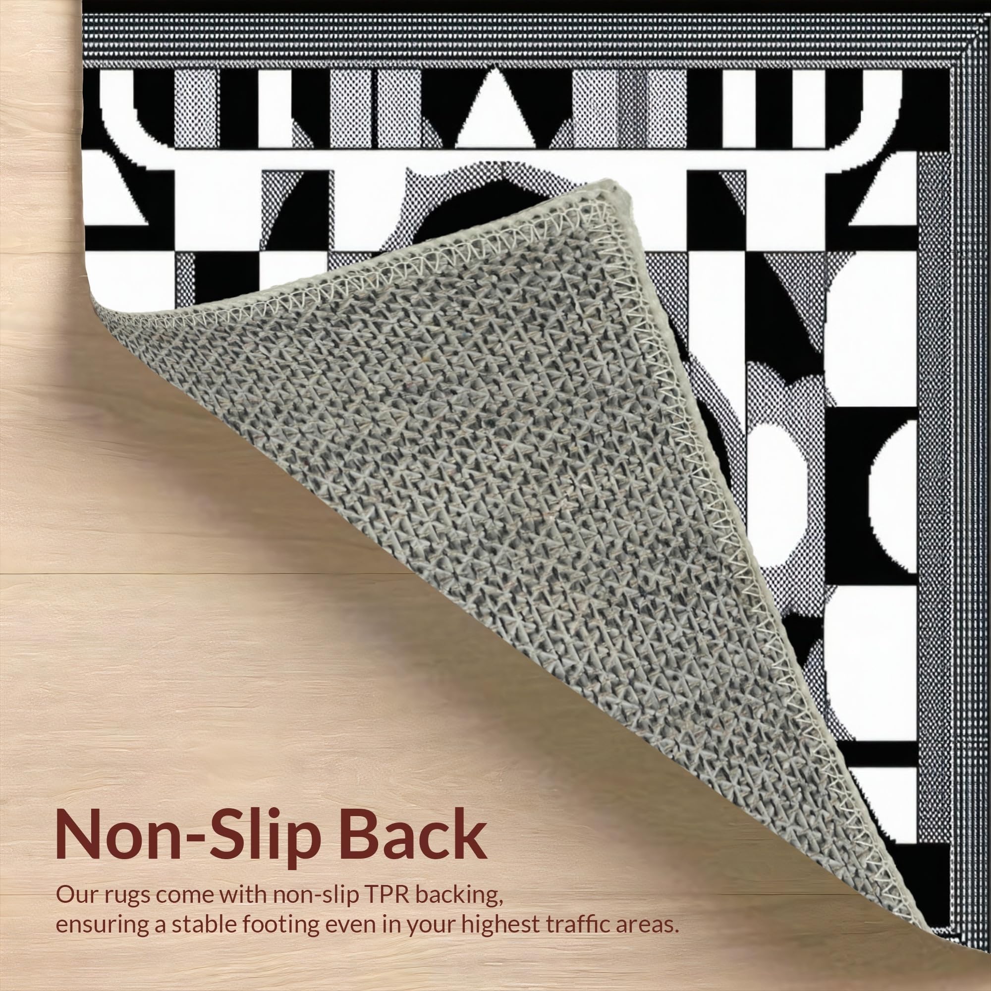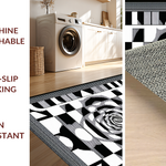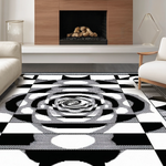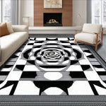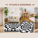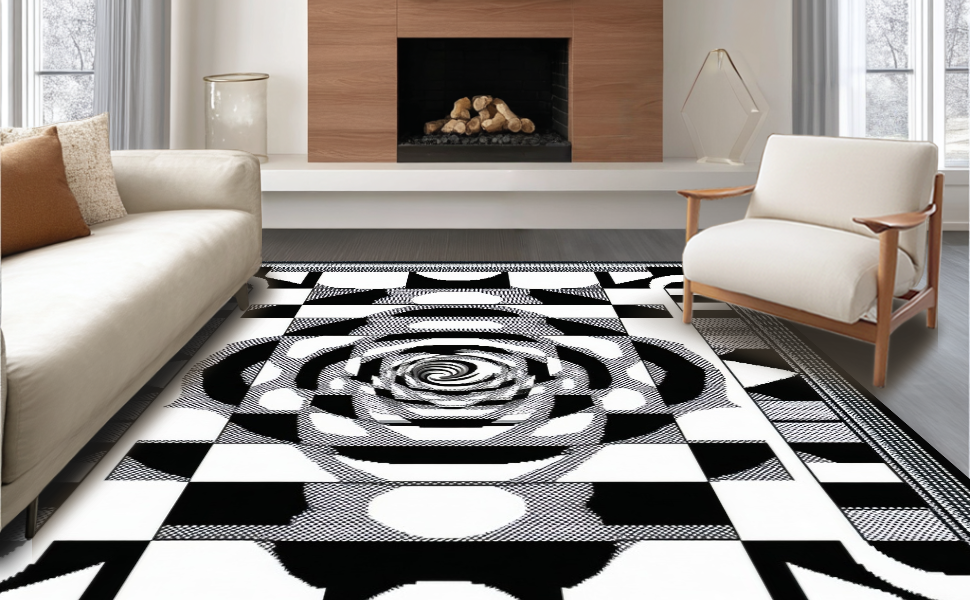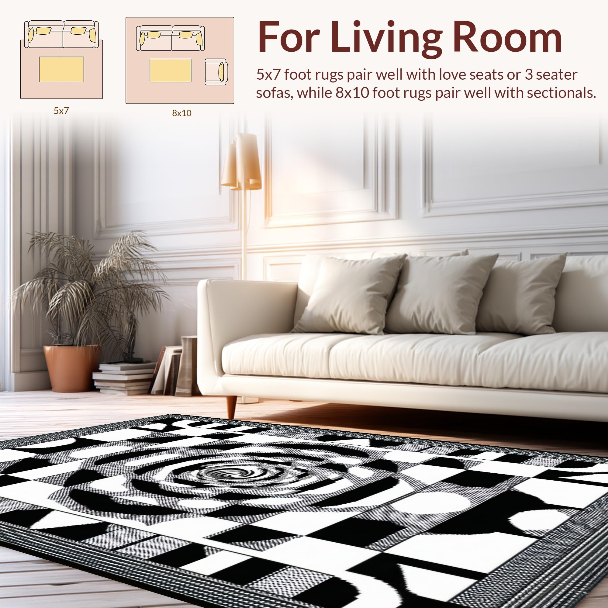 Ultra Soft Area Rug, Non Slip, Stain Resistant, Washable Area Rugs for Living Room, Bedroom, Dynamic Monochrome Vortex Aesthetic(Black) Overview: