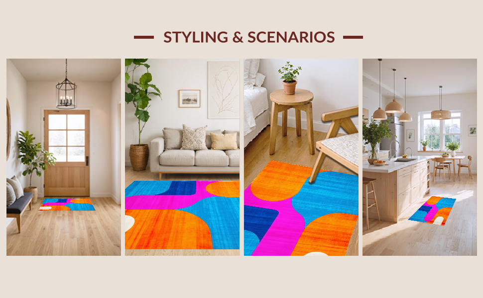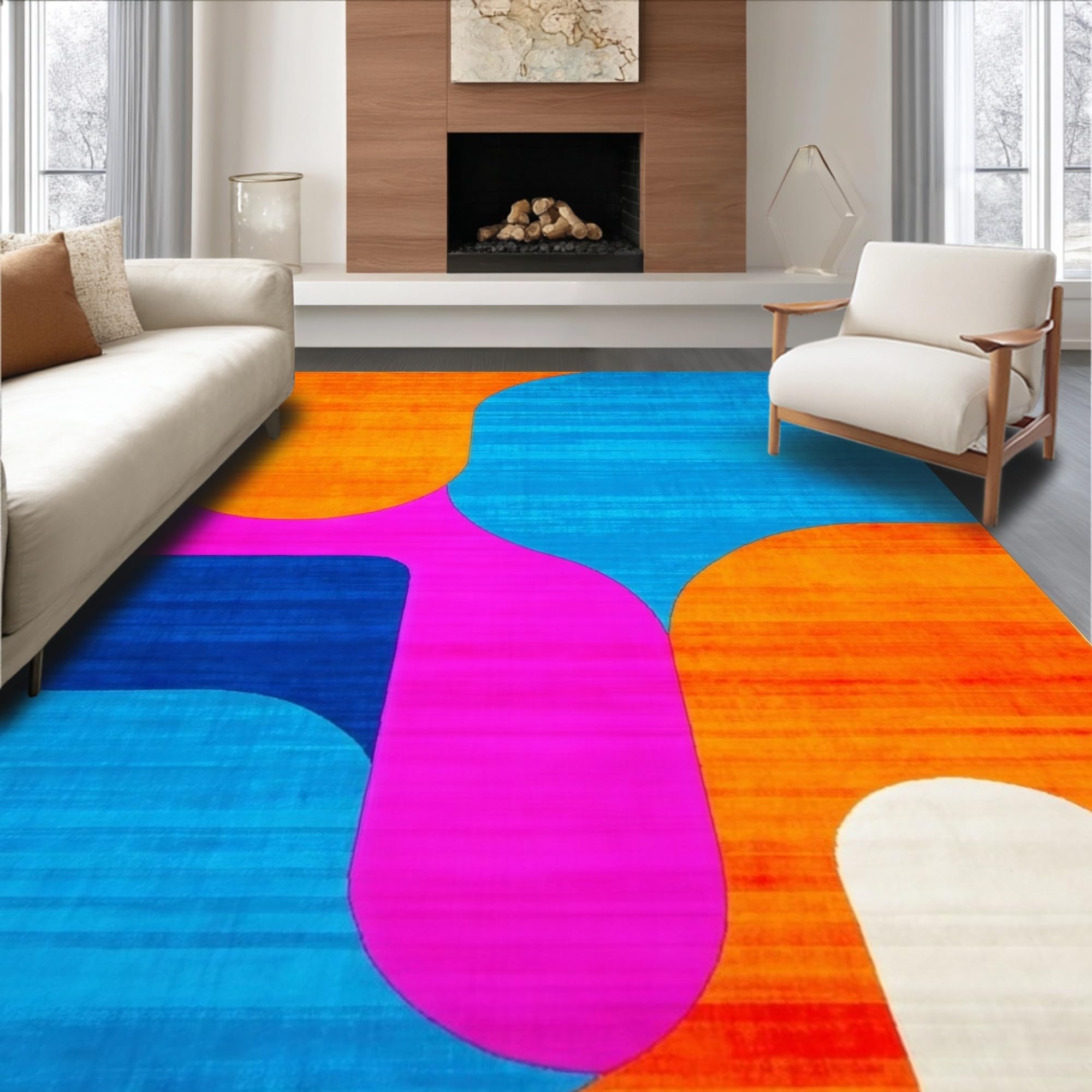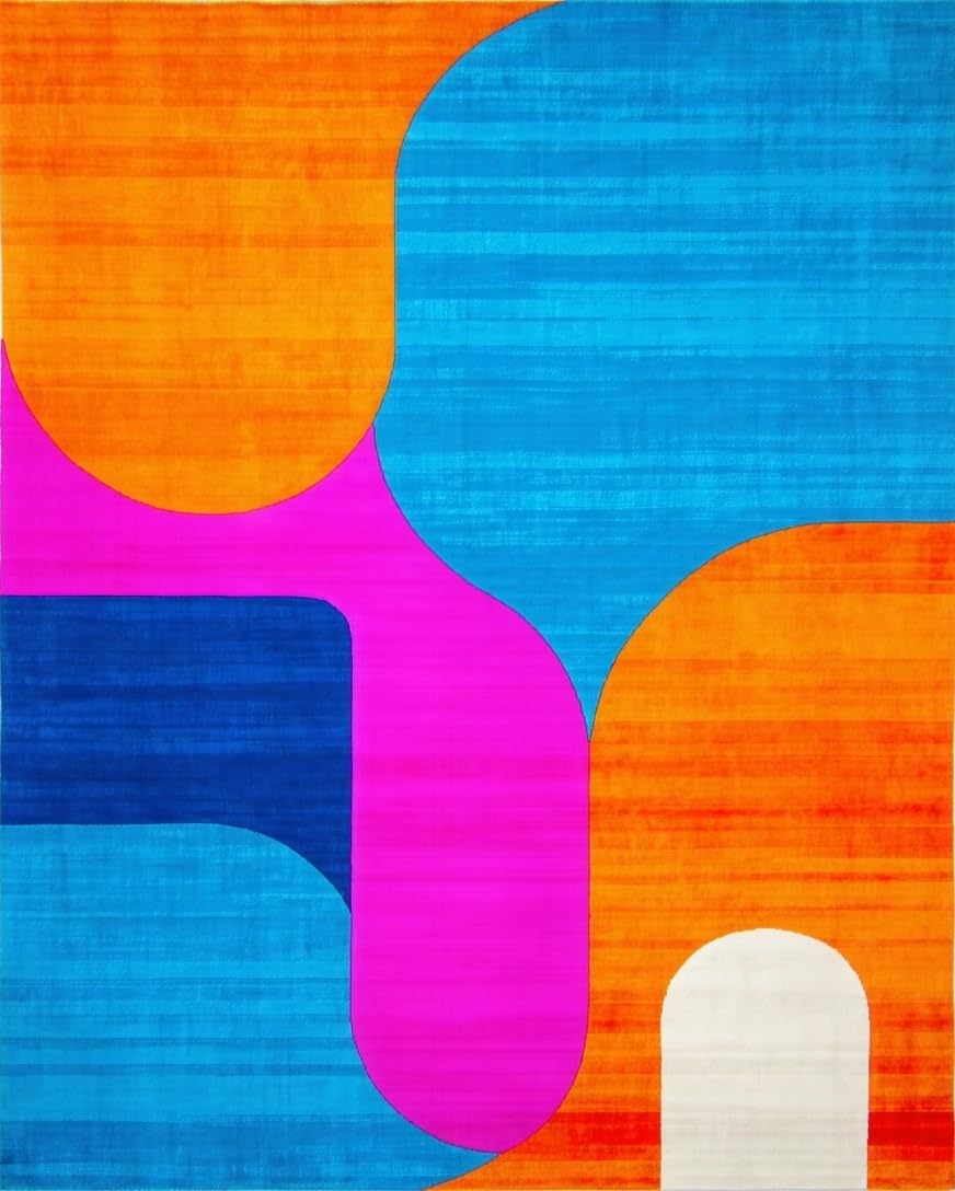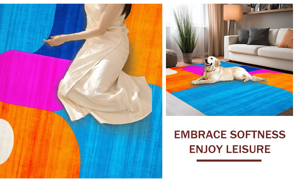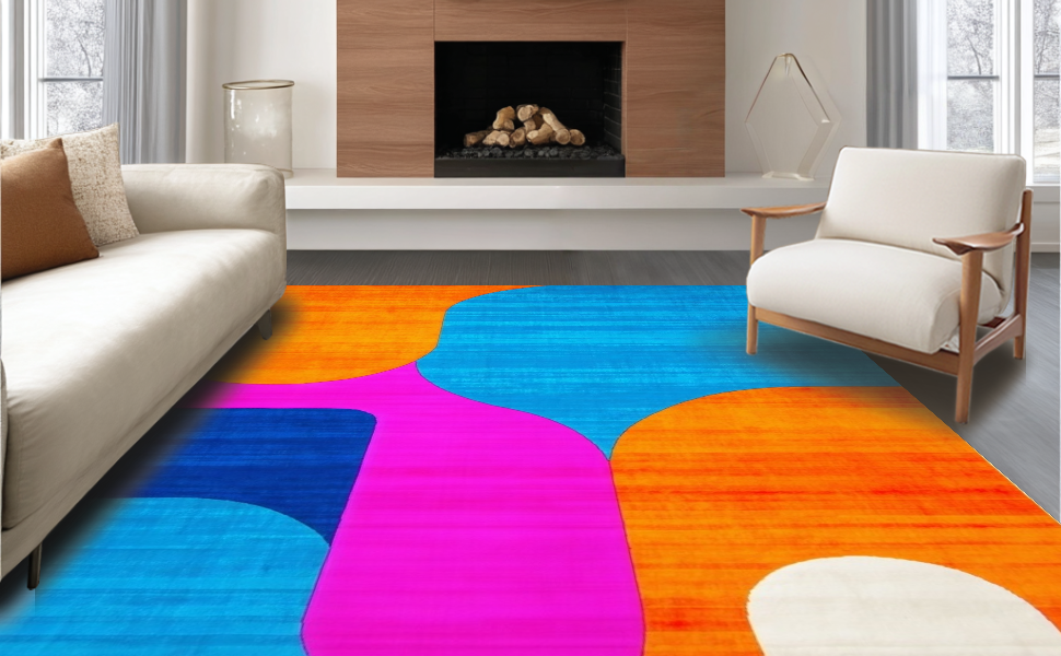 Ultra Soft Area Rug, Non Slip, Stain Resistant, Washable Area Rugs for Living Room, Bedroom, Dynamic Multi-Hued Geometric Layout(Blue) Overview:
