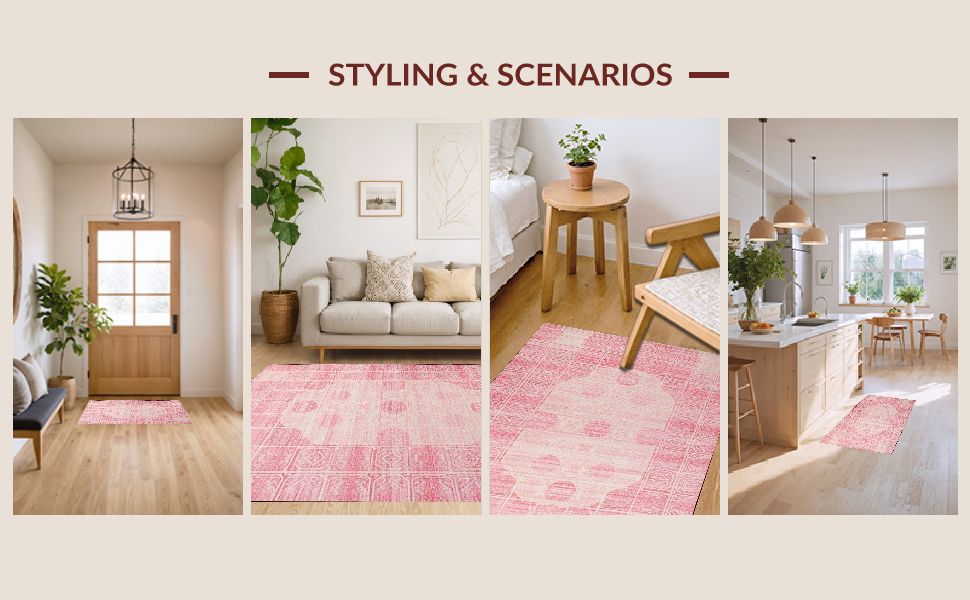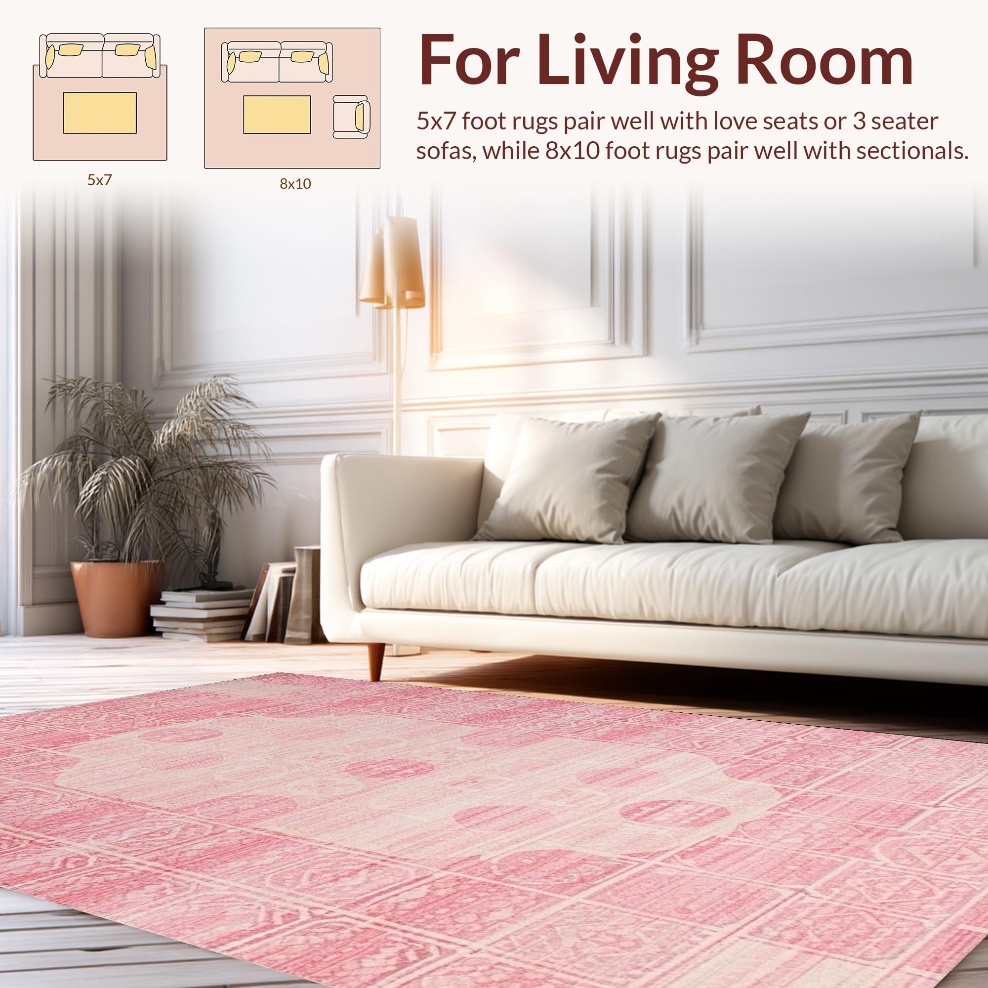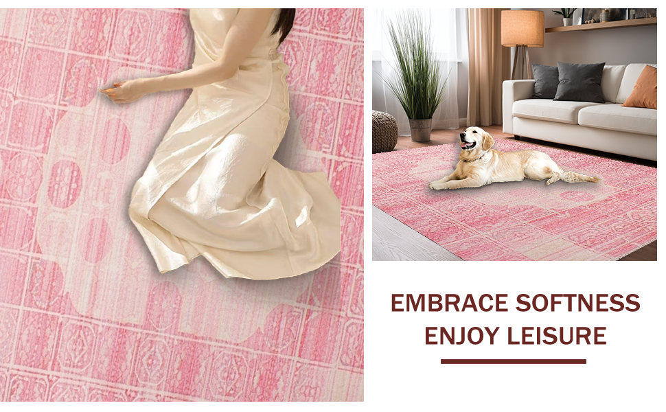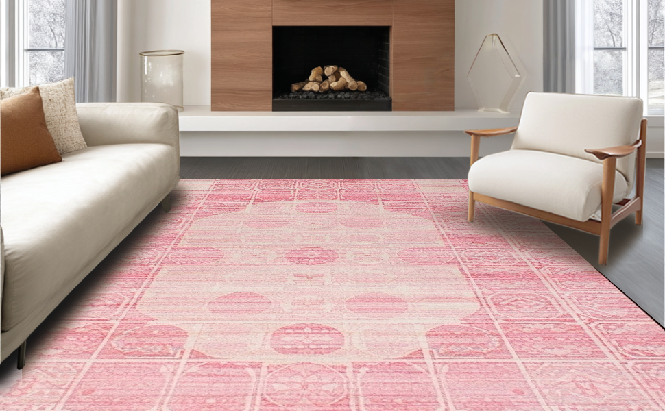 Ultra Soft Area Rug, Non Slip, Stain Resistant, Washable Area Rugs for Living Room, Bedroom, Dynamic Multi-Tone Textured Arrangement(Pink) Overview: