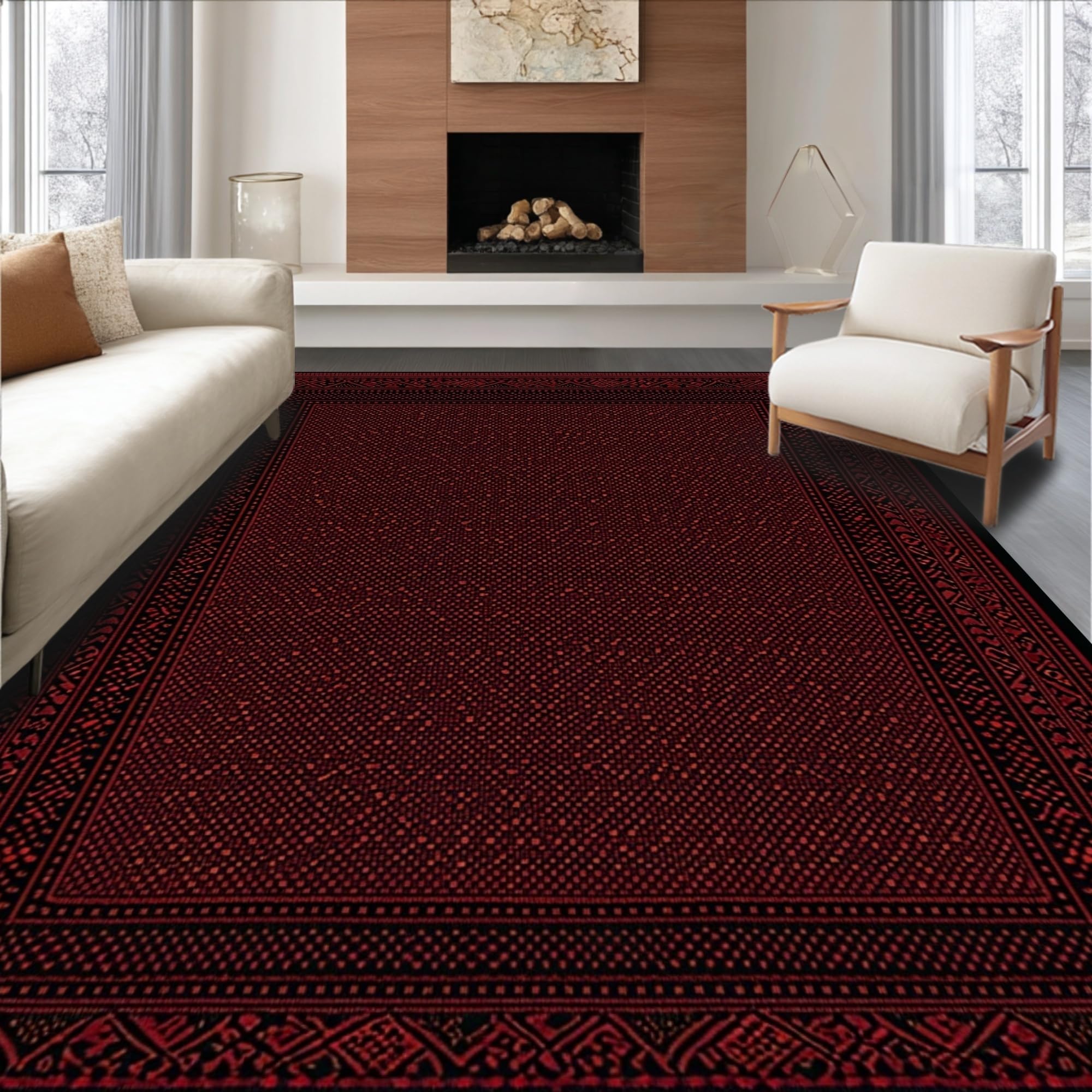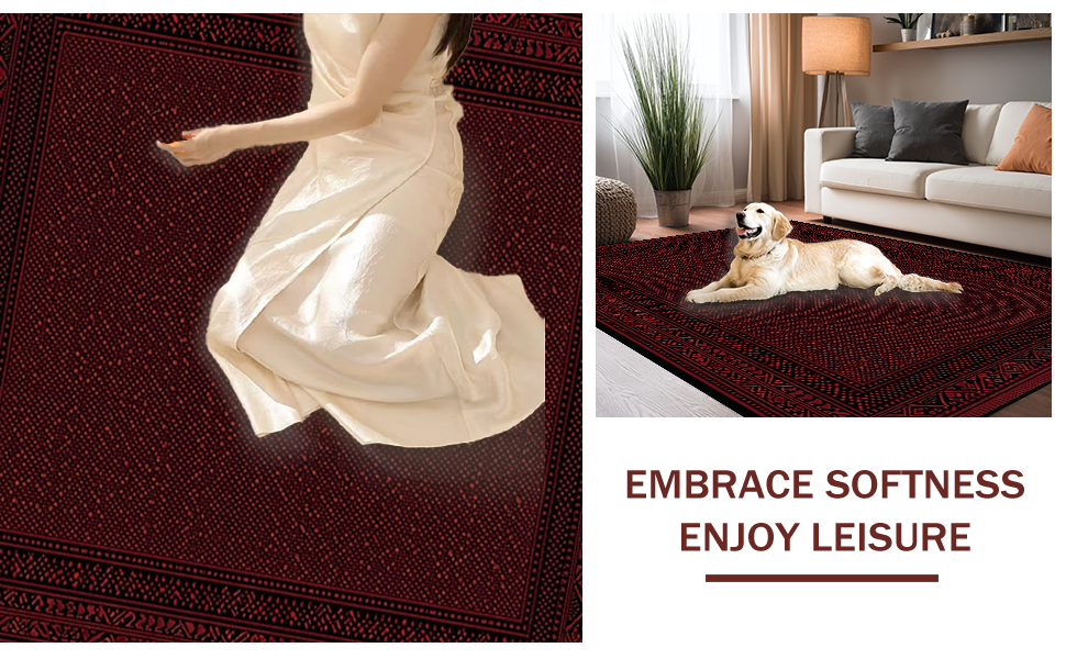 Ultra Soft Area Rug, Non Slip, Stain Resistant, Washable Area Rugs for Living Room, Bedroom, Dynamic Multicolor Textured Symmetry(Red) Overview: