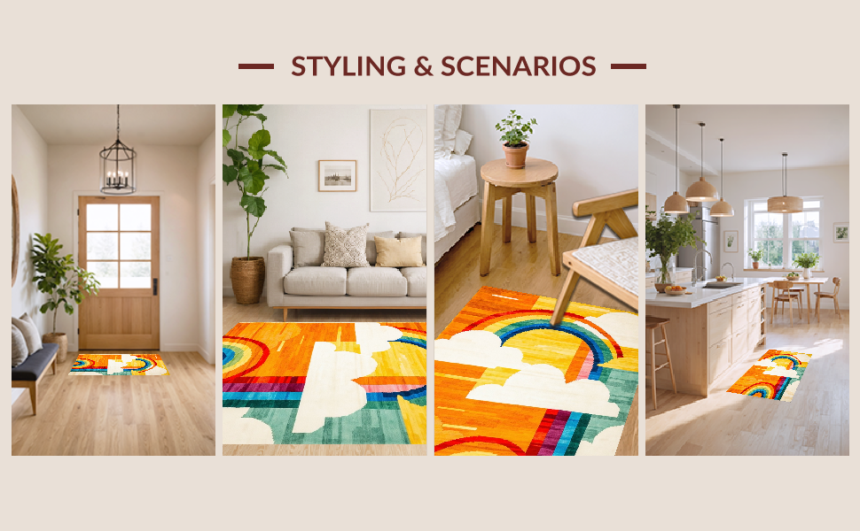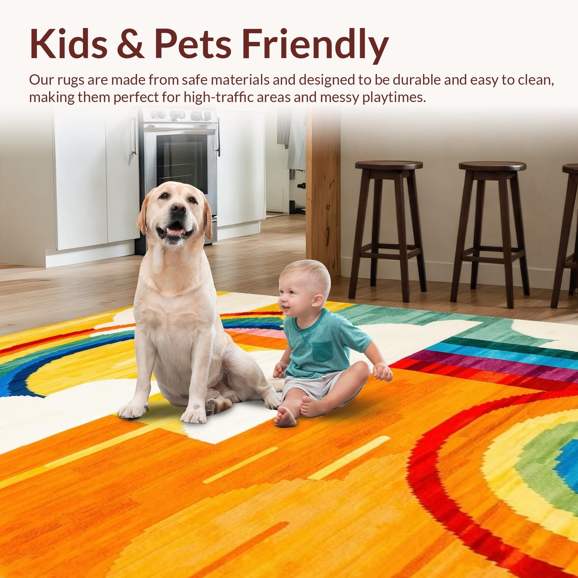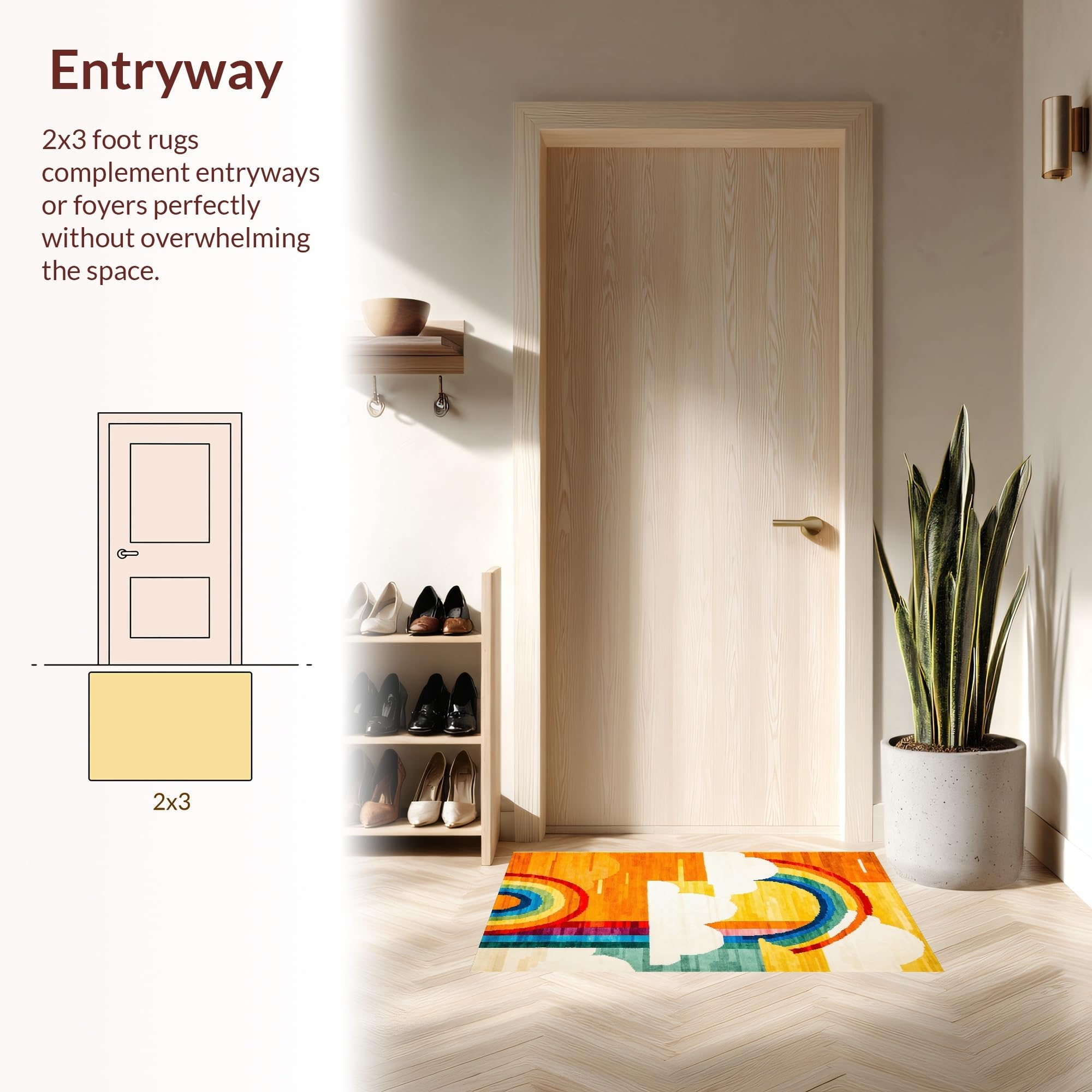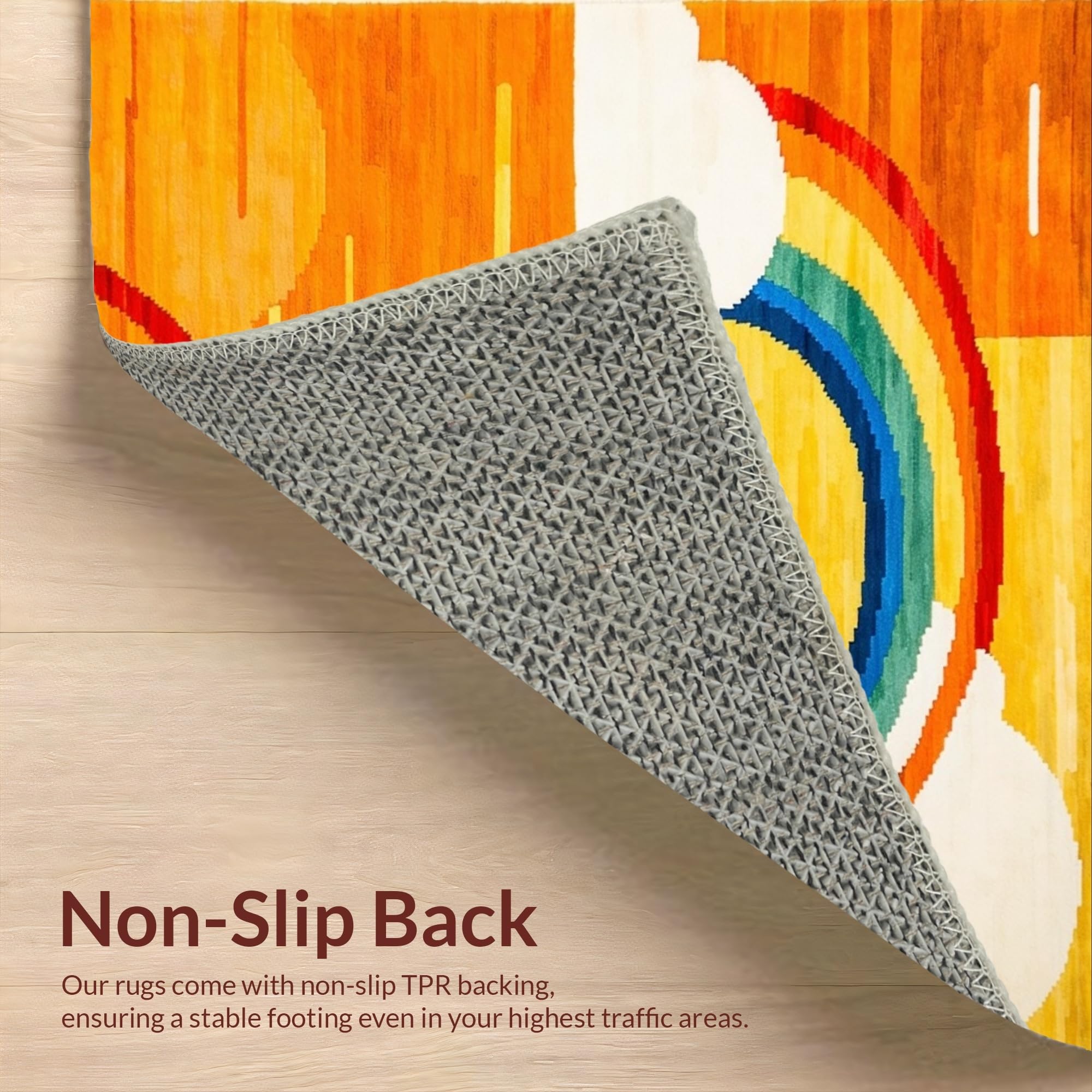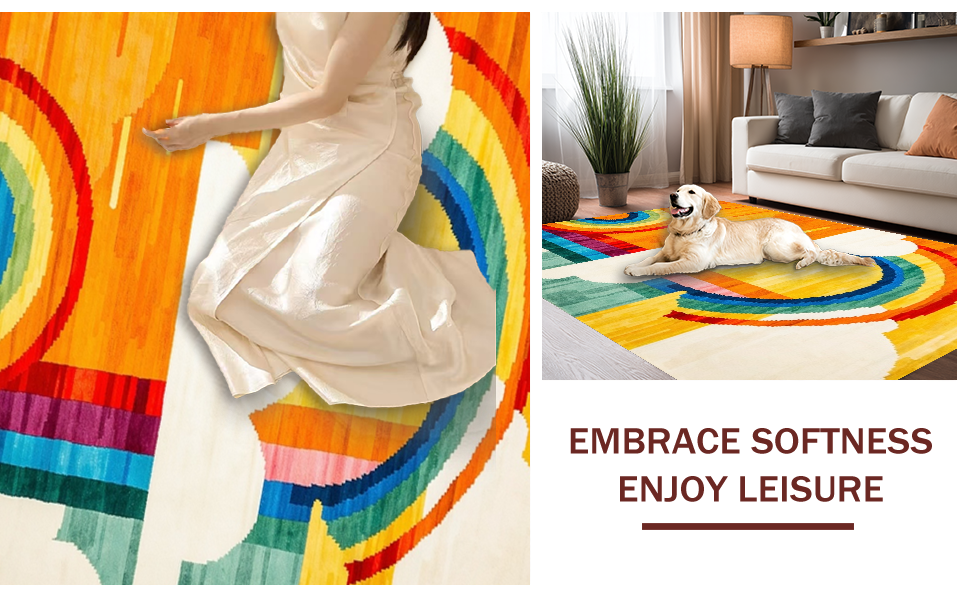 Ultra Soft Area Rug, Non Slip, Stain Resistant, Washable Area Rugs for Living Room, Bedroom, Dynamic Multicolored Arc Composition(Yellow) Overview: