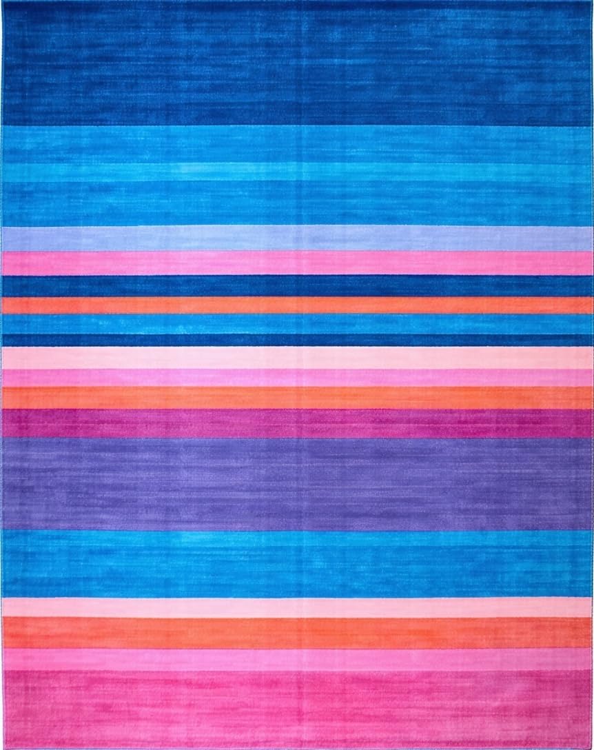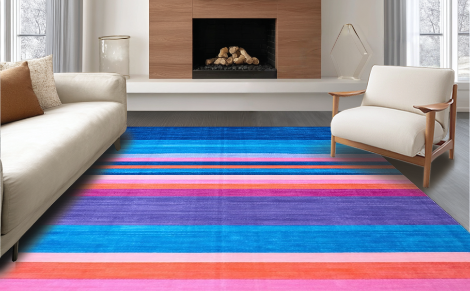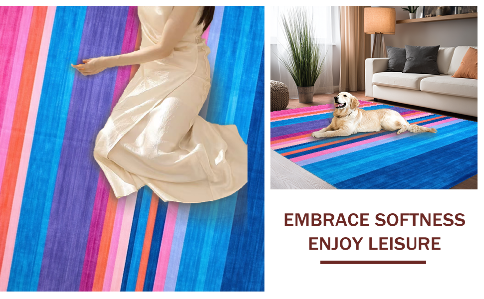 Ultra Soft Area Rug, Non Slip, Stain Resistant, Washable Area Rugs for Living Room, Bedroom, Dynamic Multicolored Graphic Motif(Blue) Overview: