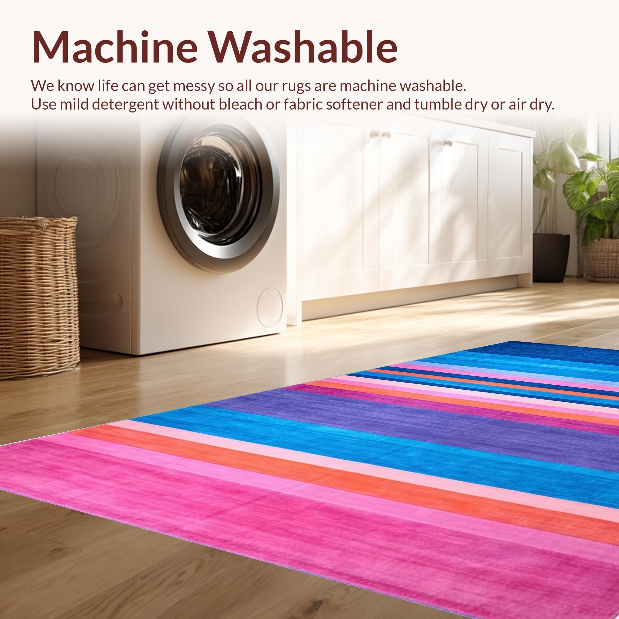 - Machine Washable: Our rugs can be easily thrown in the wash machine.