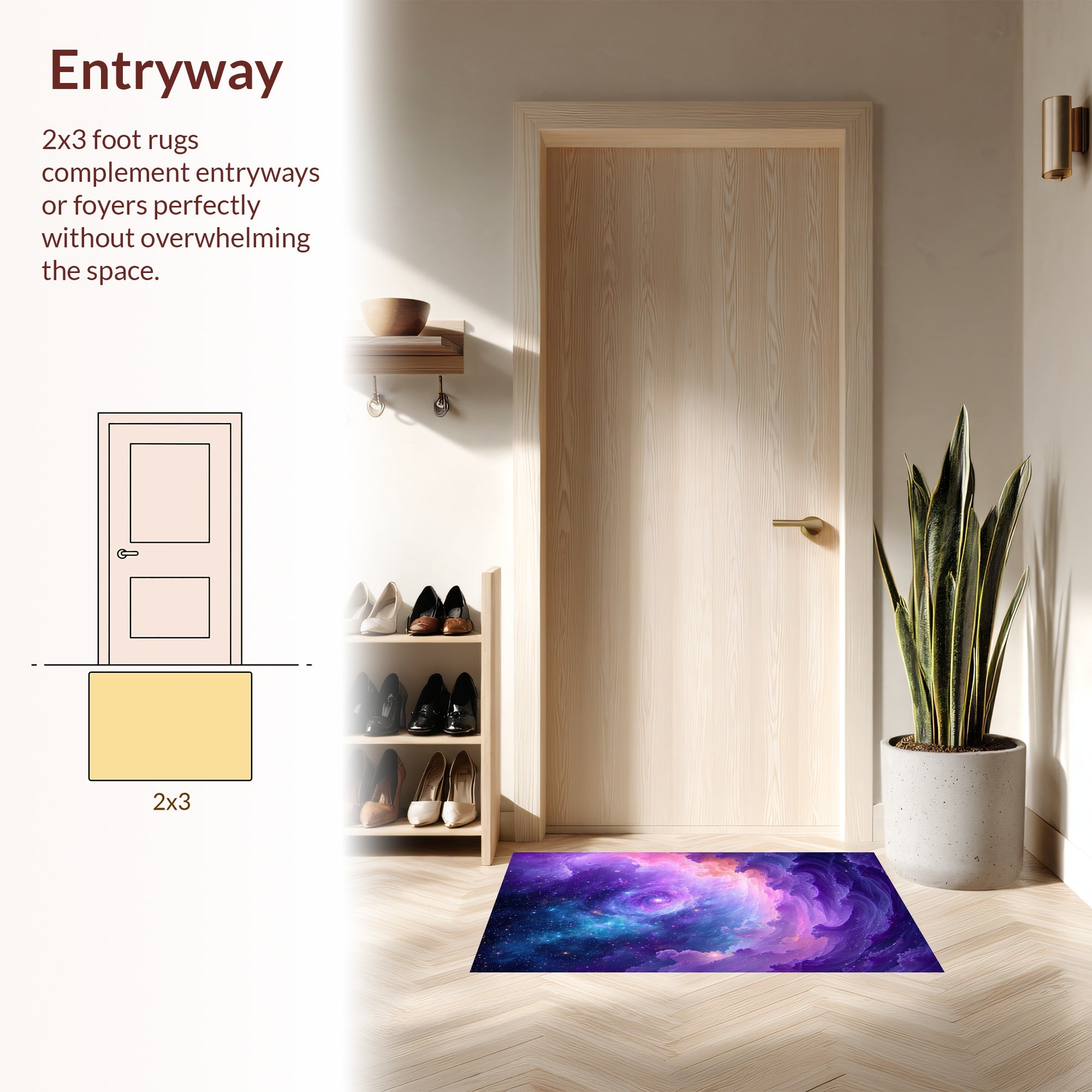 Flatwoven High Traffic Area Rug, Dynamic Multicolored Universe Theme, Non Slip, Stain Resistant, Washable Area Rugs for Living Room, Bedroom (Purple) Overview: