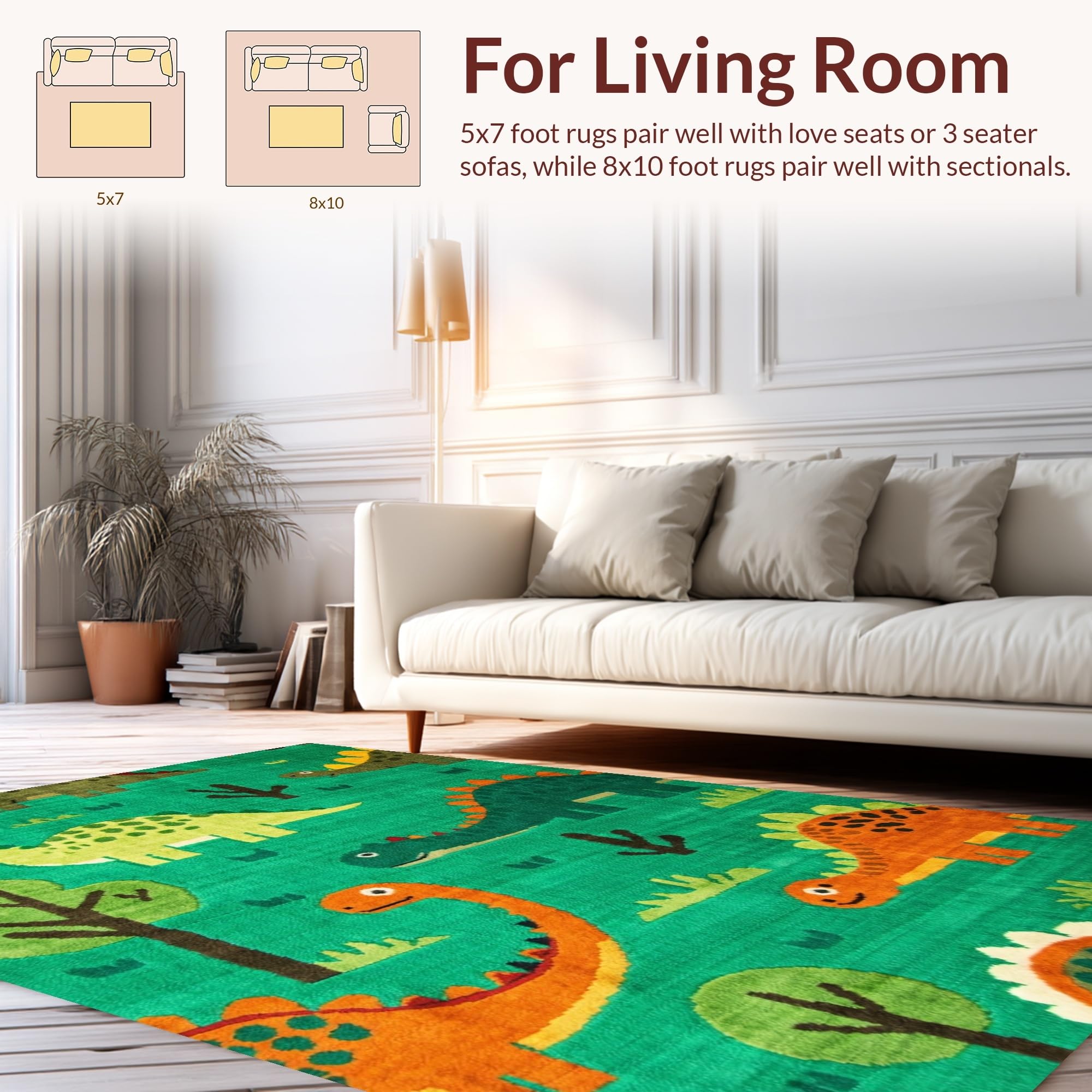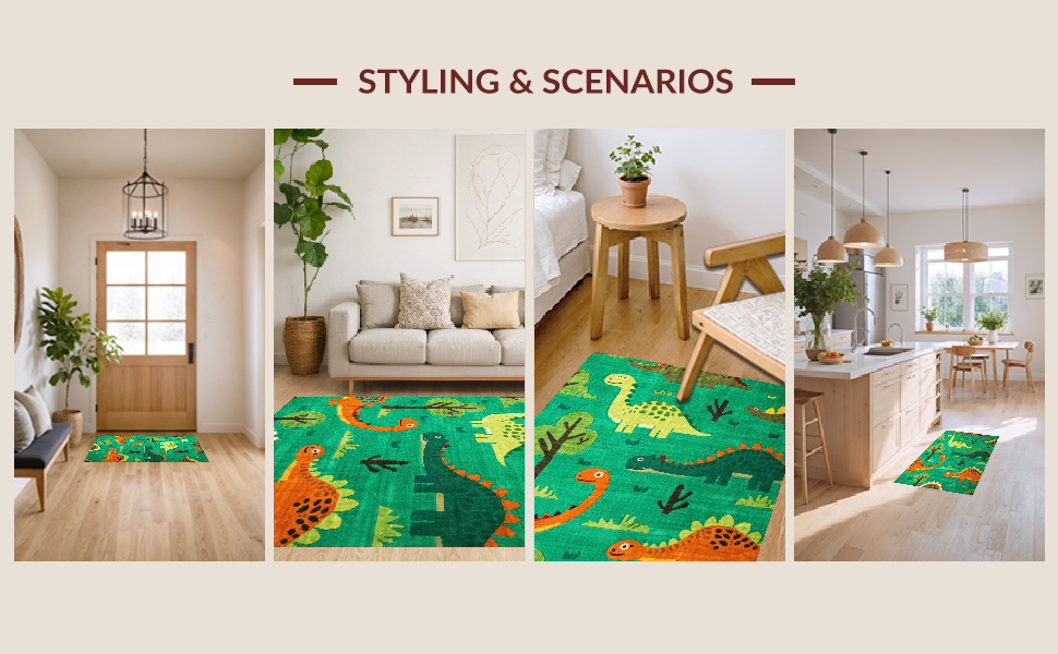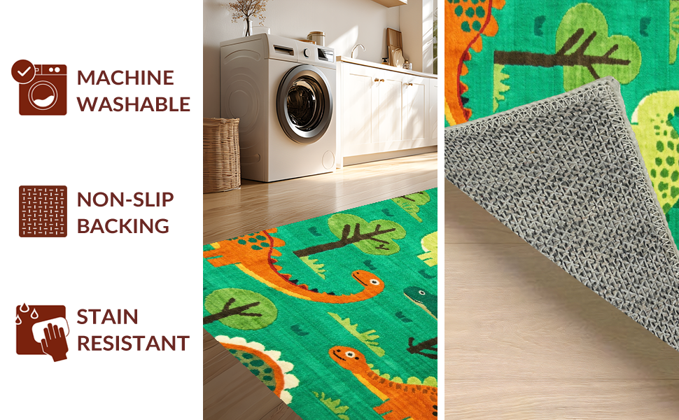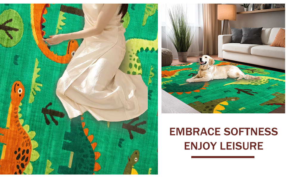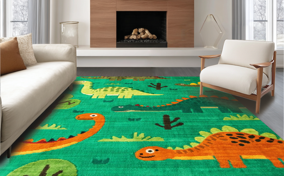 Ultra Soft Area Rug, Non Slip, Stain Resistant, Washable Area Rugs for Living Room, Bedroom, Dynamic Nature-Inspired Dino Motif(Green) Overview: