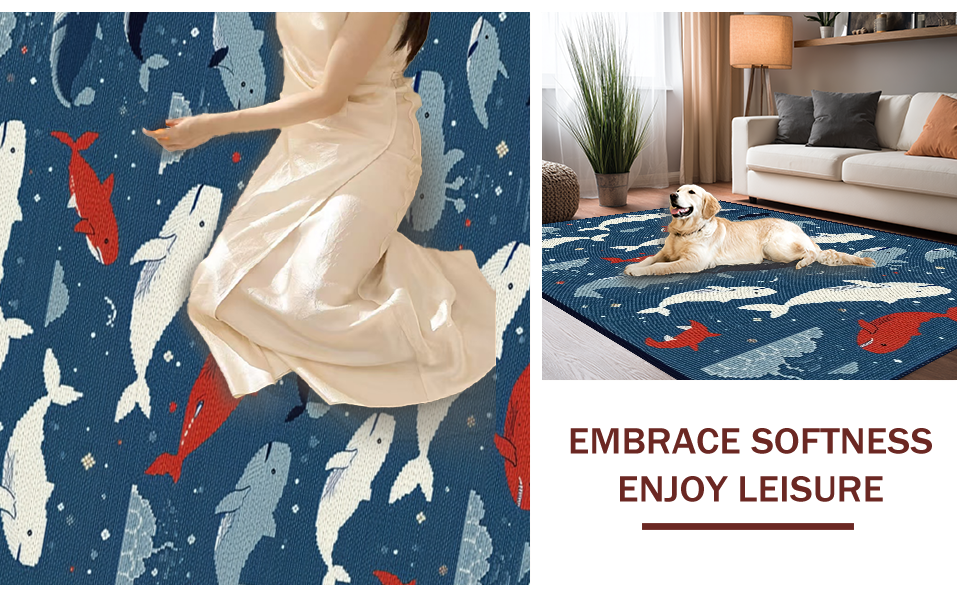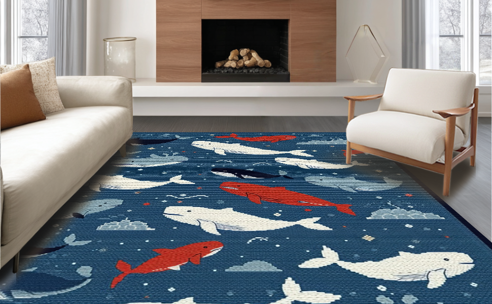 Ultra Soft Area Rug, Non Slip, Stain Resistant, Washable Area Rugs for Living Room, Bedroom, Dynamic Nautical Scene Artwork(Blue) Overview: