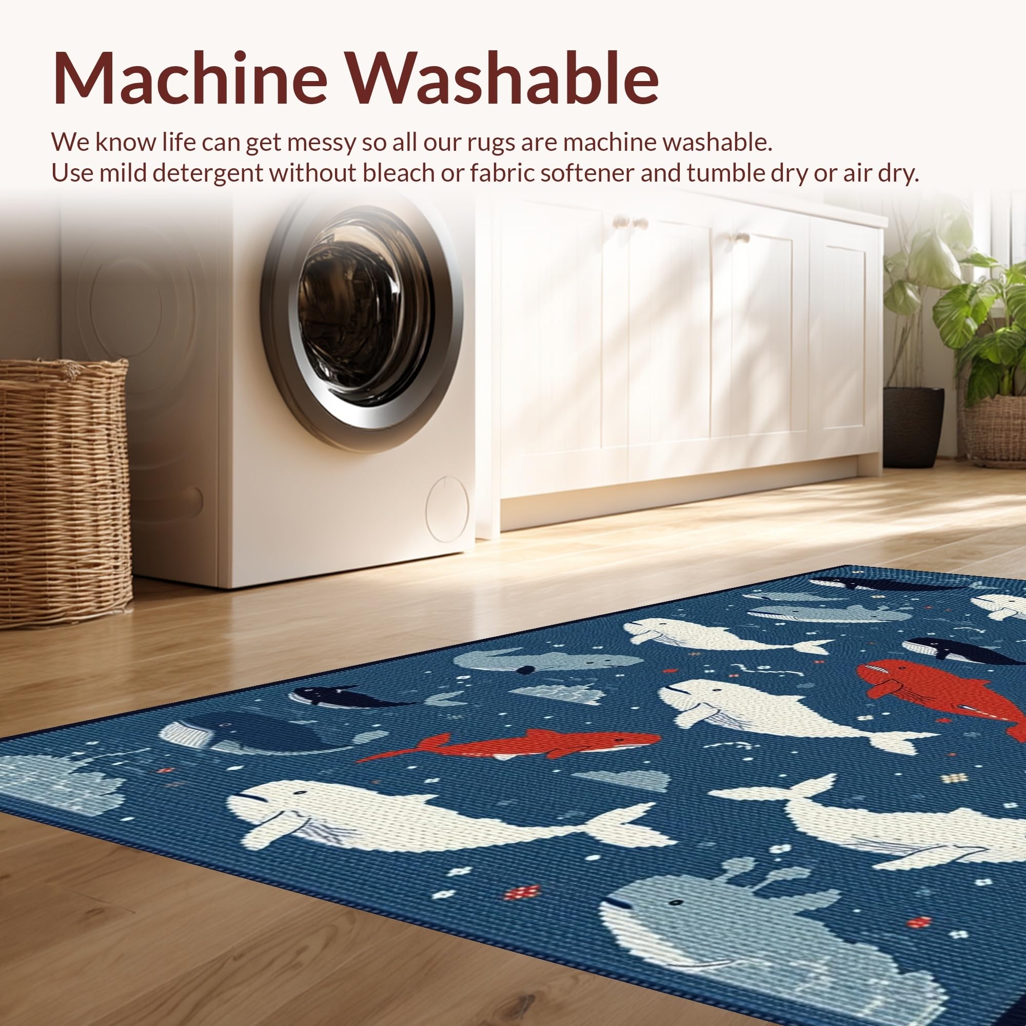 - Machine Washable: Our rugs can be easily thrown in the wash machine.