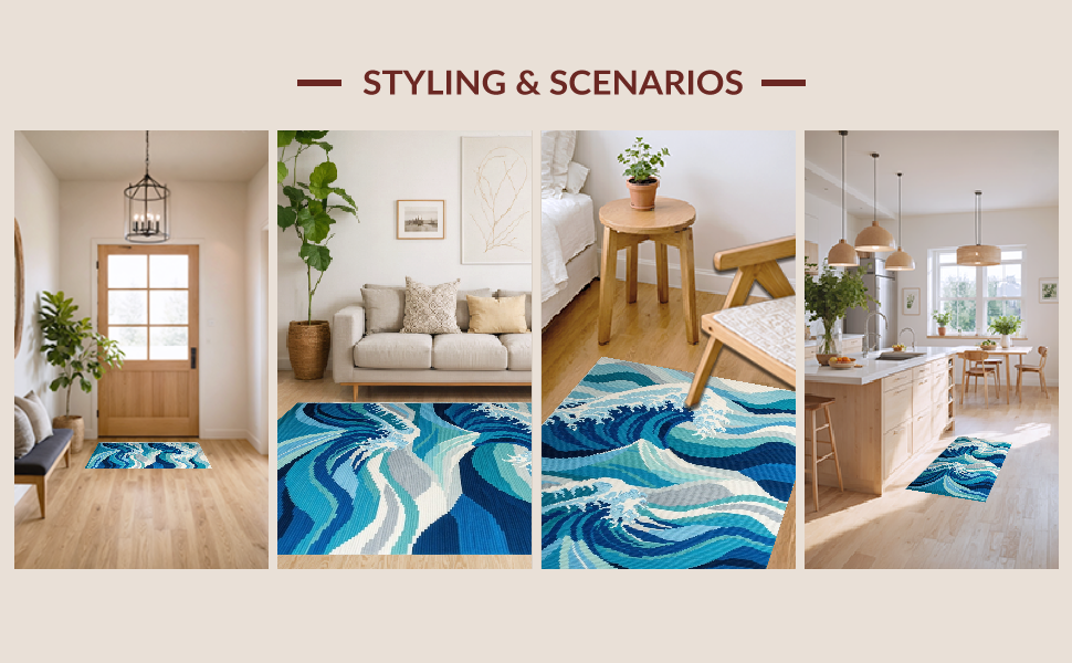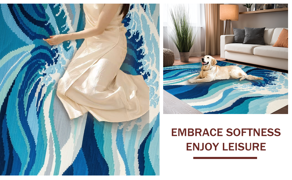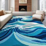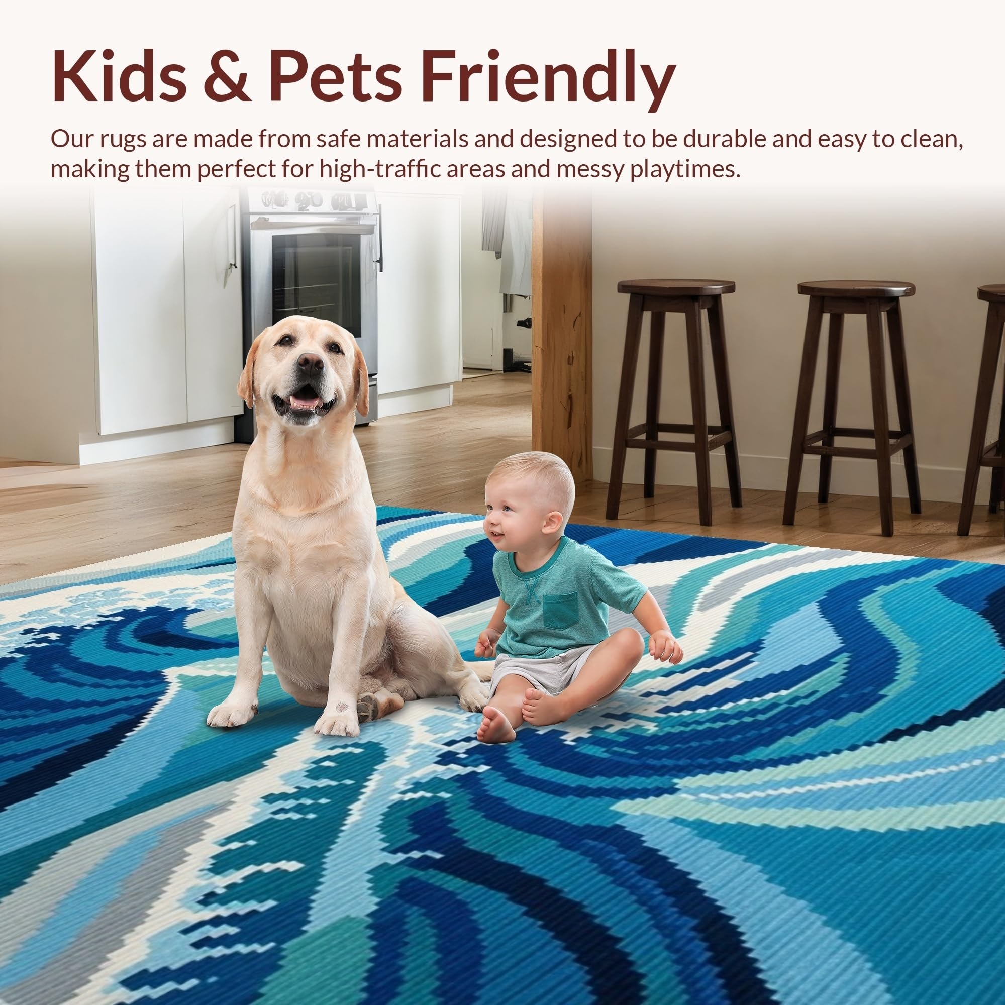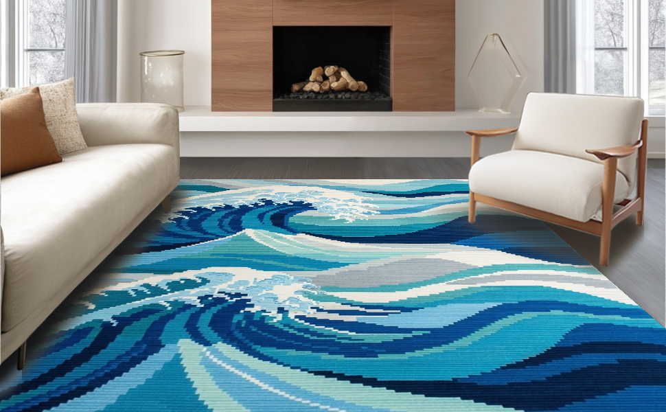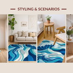 Ultra Soft Area Rug, Non Slip, Stain Resistant, Washable Area Rugs for Living Room, Bedroom, Dynamic Oceanic Ripple Motif(Blue) Overview: