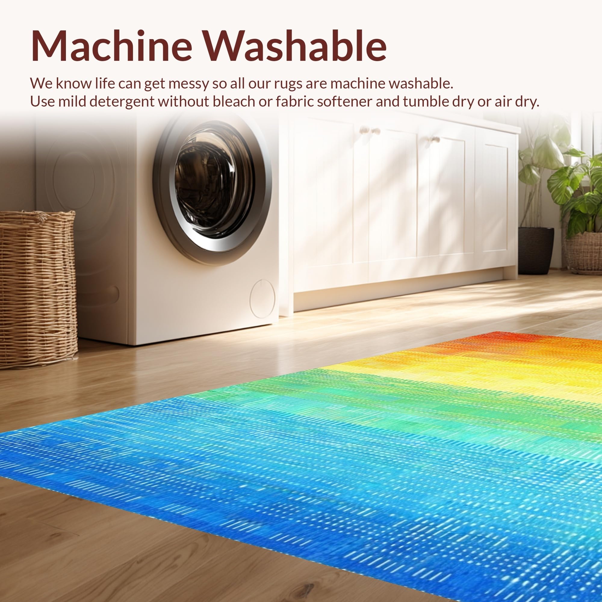 - Machine Washable: Our rugs can be easily thrown in the wash machine.