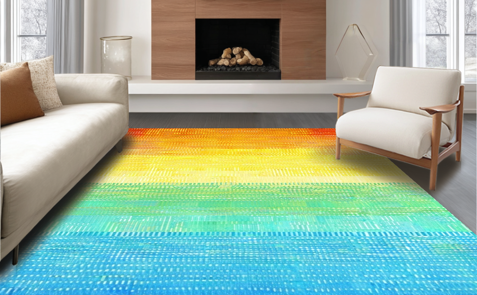 Ultra Soft Area Rug, Non Slip, Stain Resistant, Washable Area Rugs for Living Room, Bedroom, Dynamic Ombre Color Splash(Yellow) Overview: