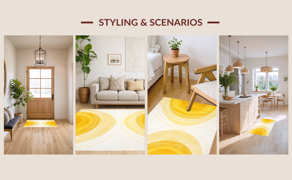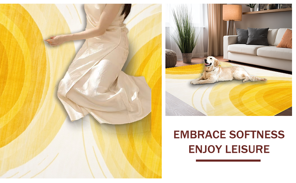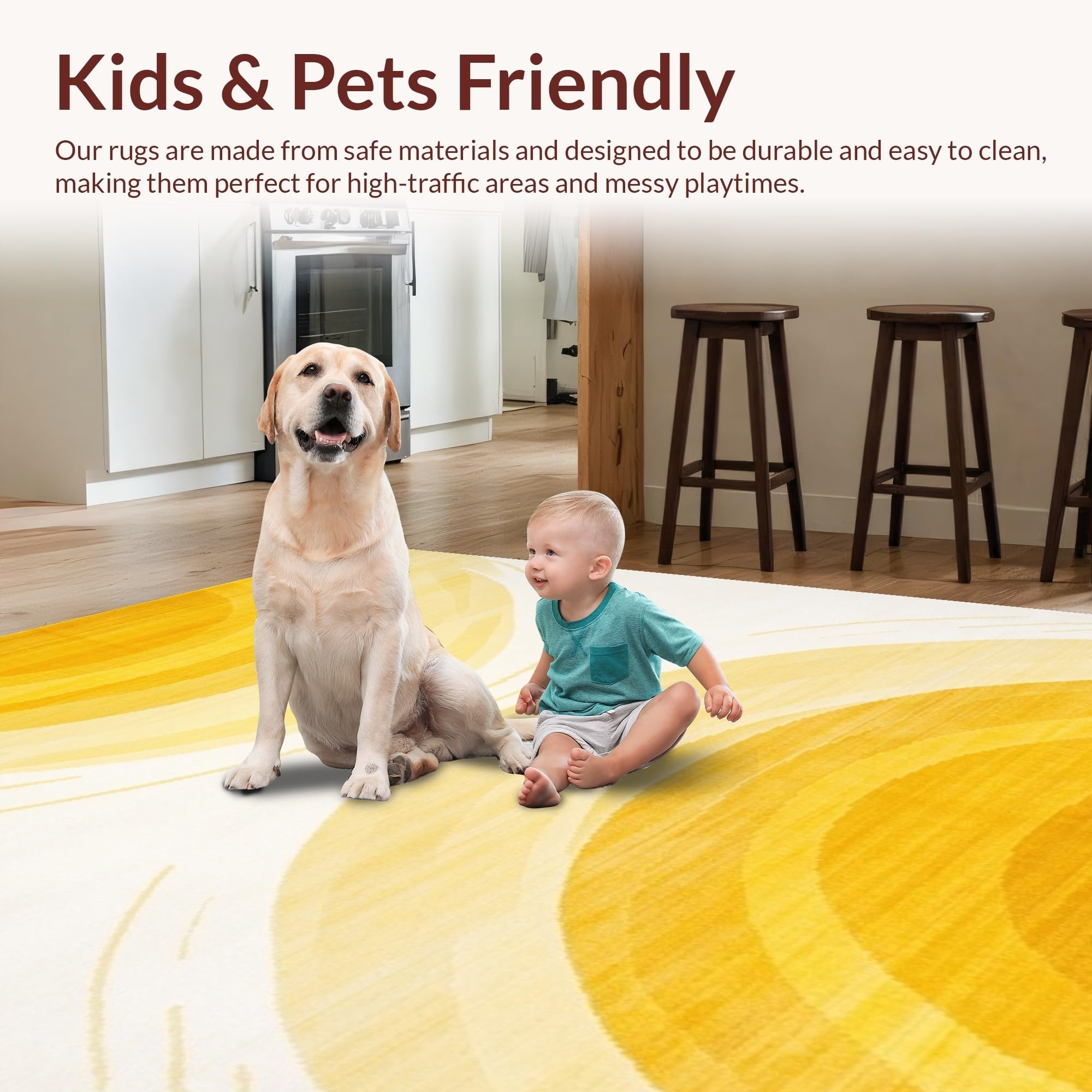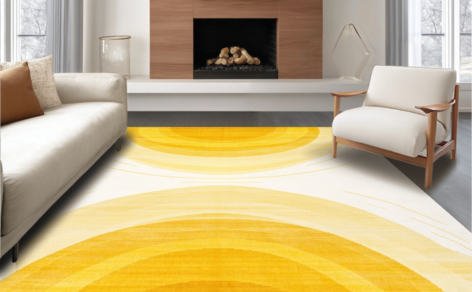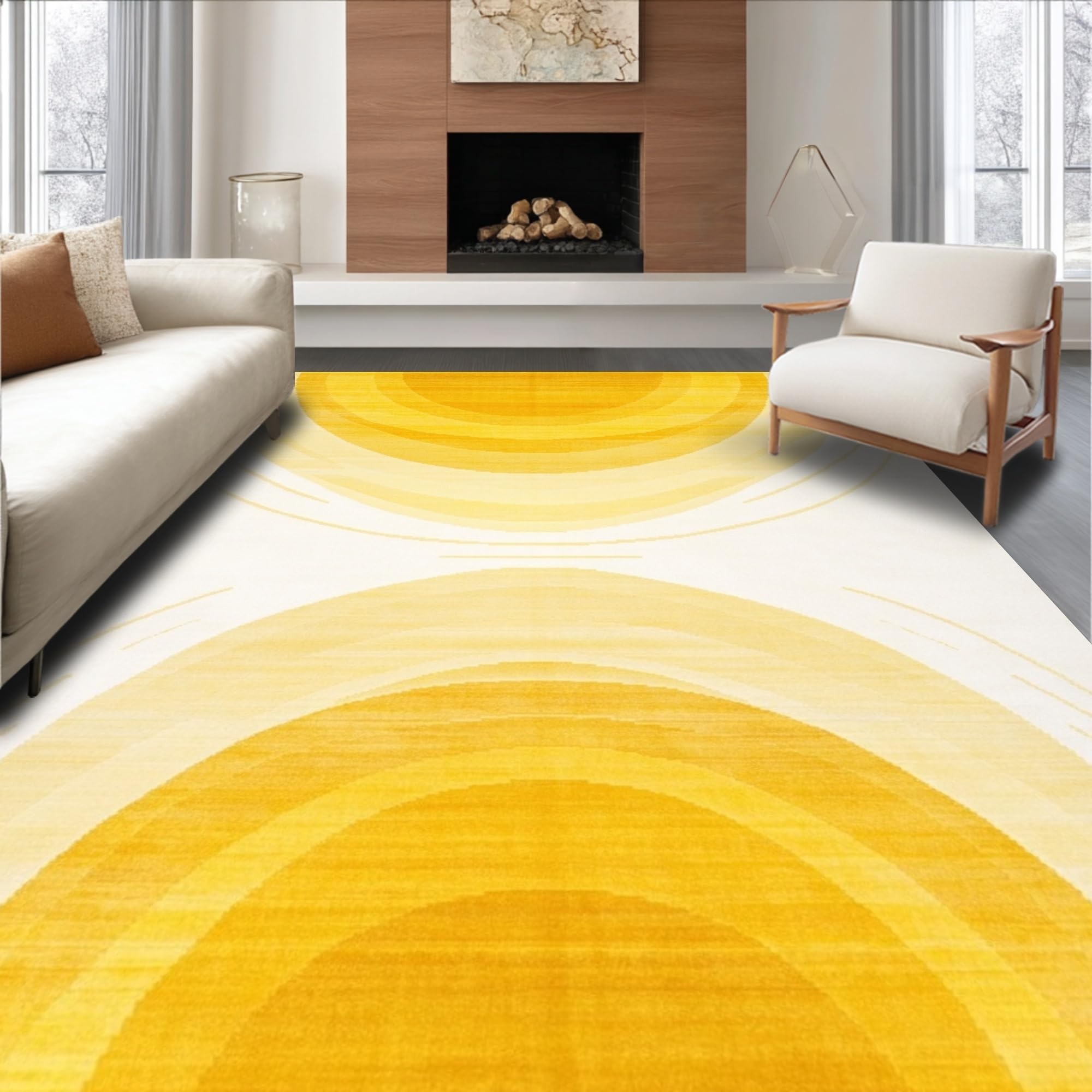 Ultra Soft Area Rug, Non Slip, Stain Resistant, Washable Area Rugs for Living Room, Bedroom, Dynamic Ombre Sunshine Theme(Yellow) Overview: