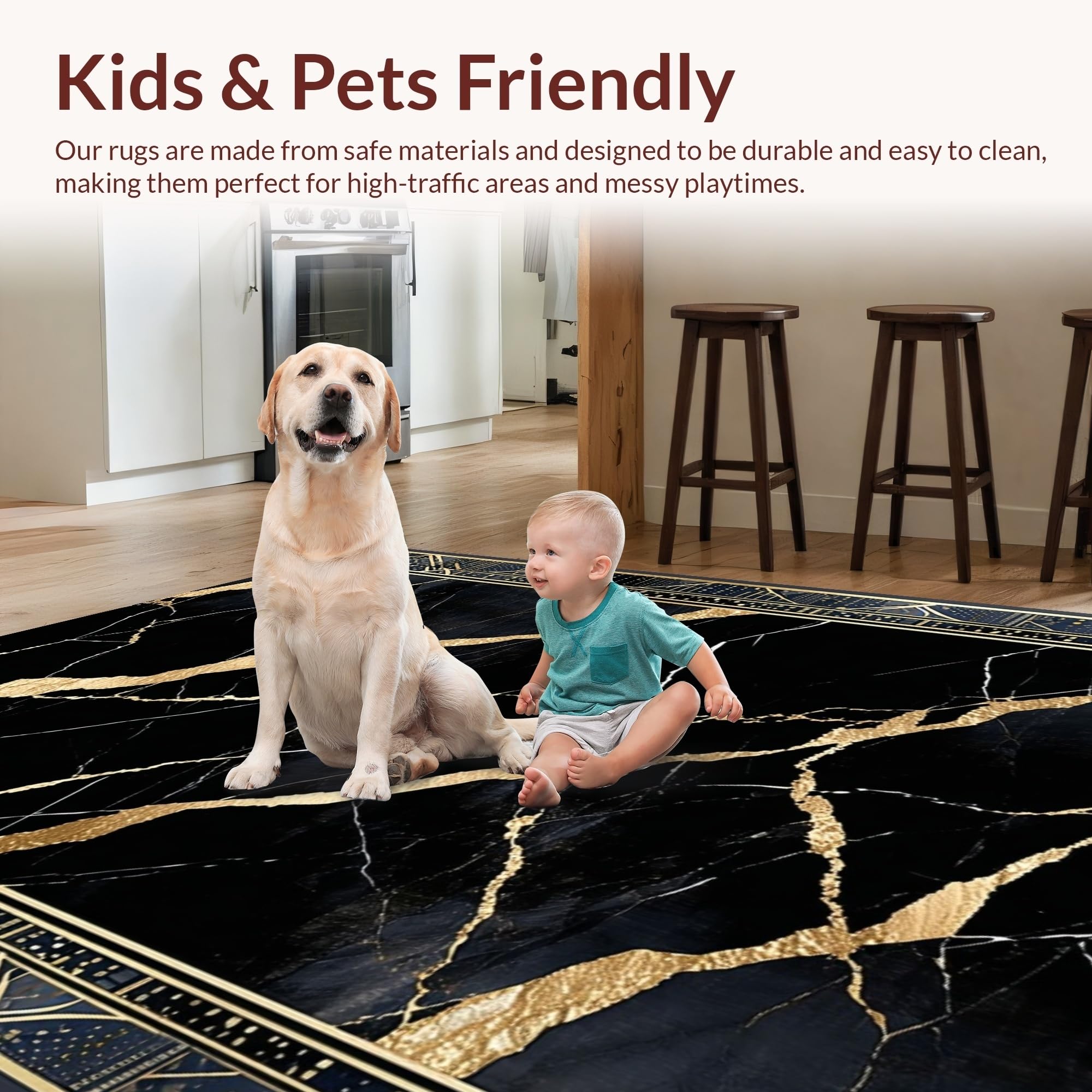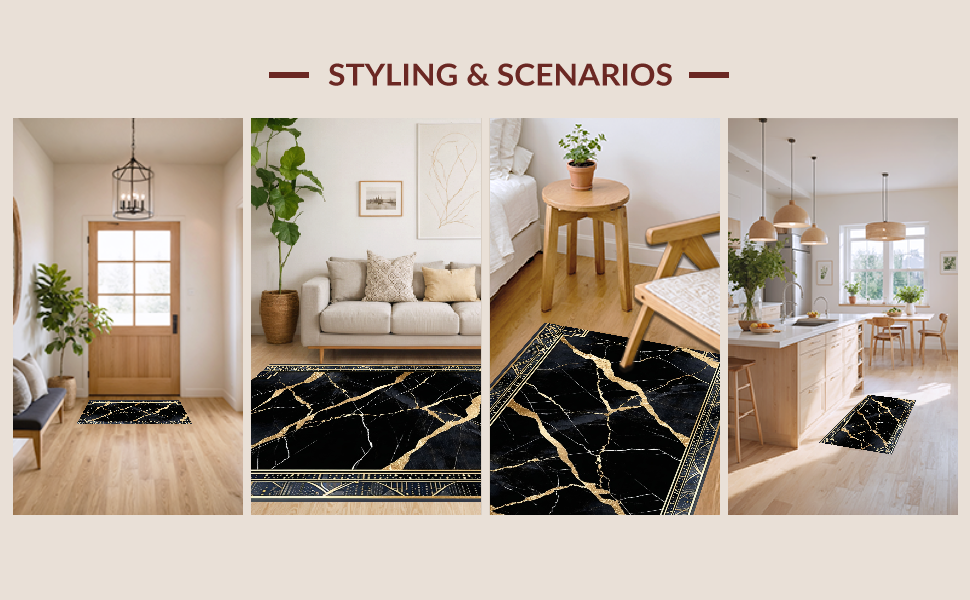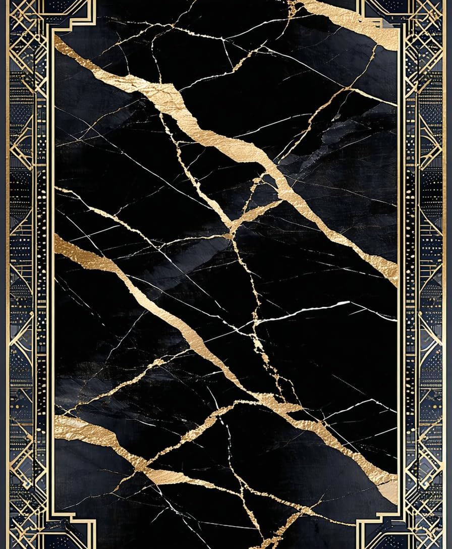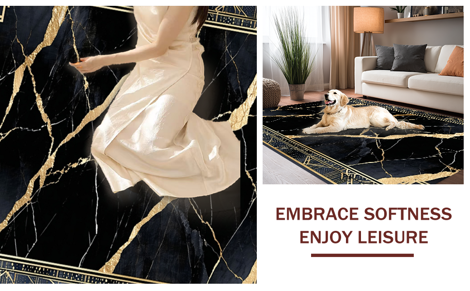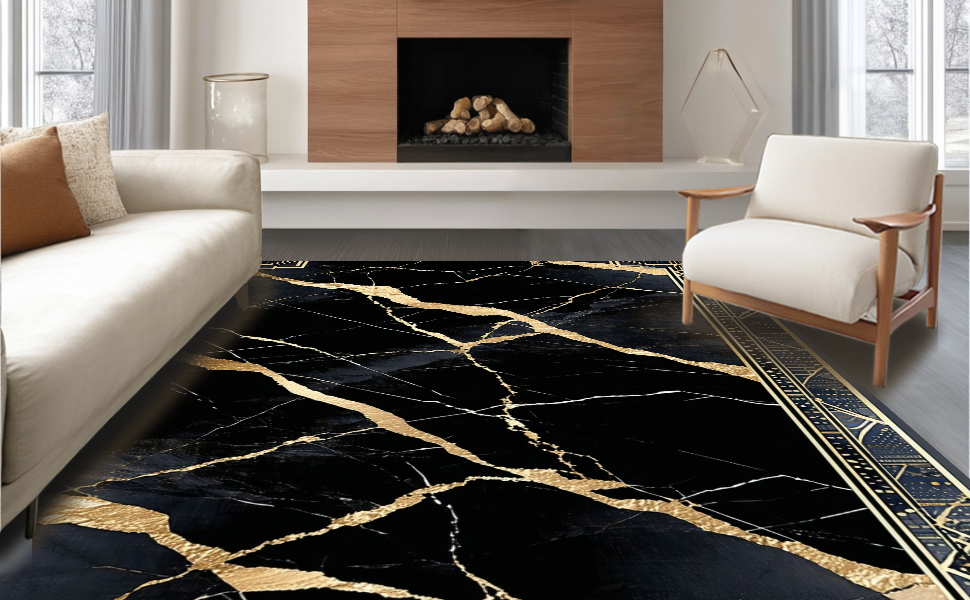 Ultra Soft Area Rug, Non Slip, Stain Resistant, Washable Area Rugs for Living Room, Bedroom, Dynamic Patterned Luxury Accent(Black) Overview: