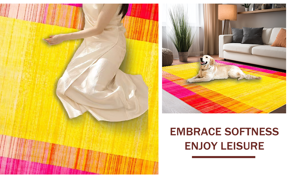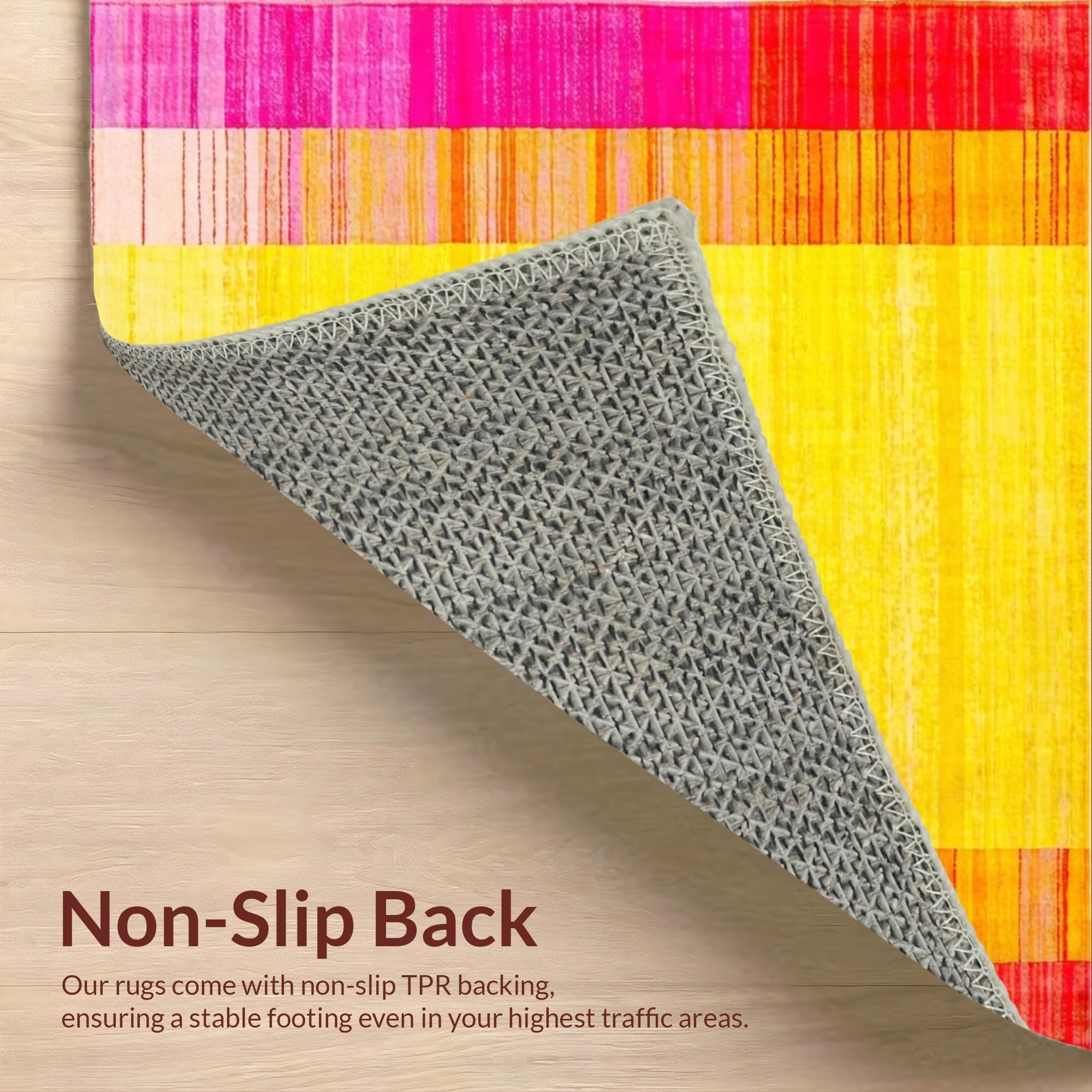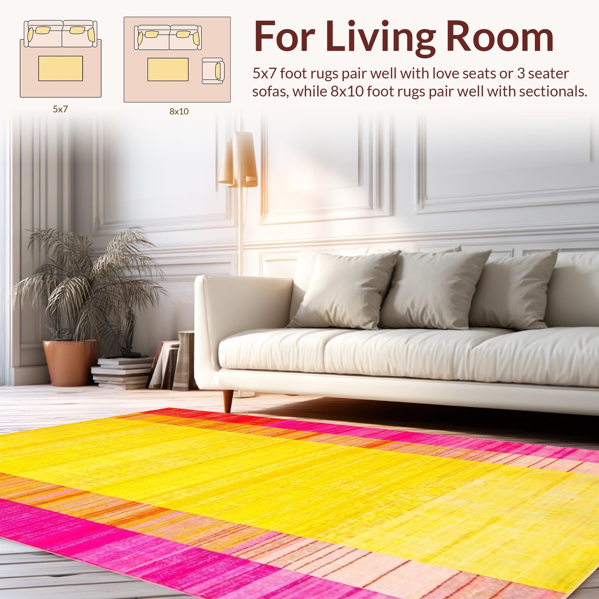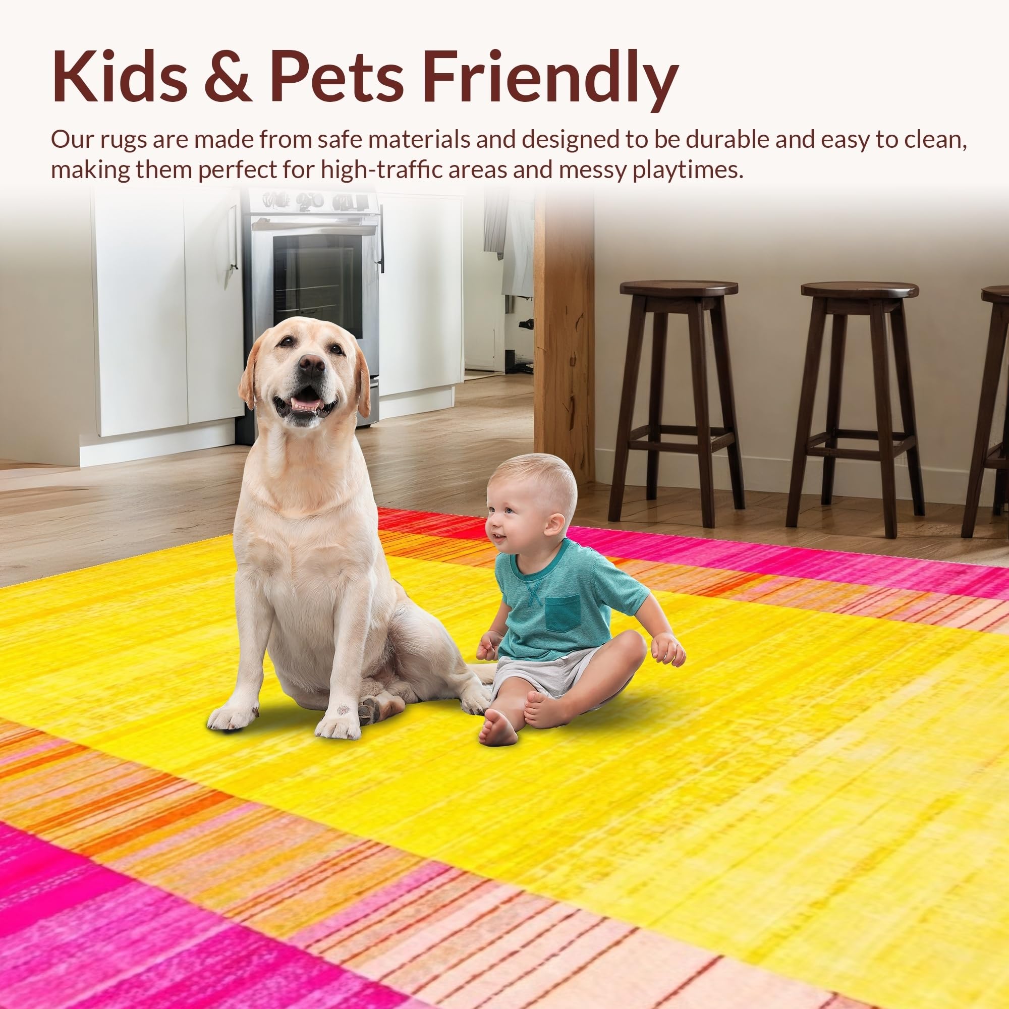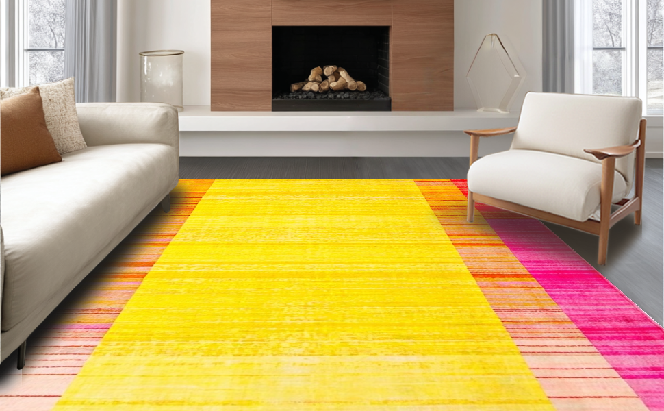 Ultra Soft Area Rug, Non Slip, Stain Resistant, Washable Area Rugs for Living Room, Bedroom, Dynamic Rainbow Swirl Pattern(Yellow) Overview: