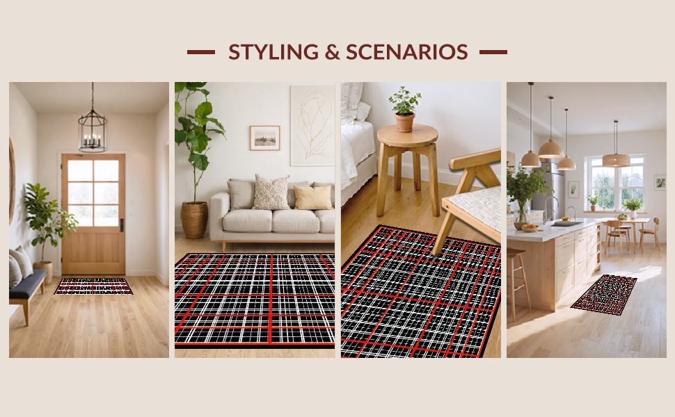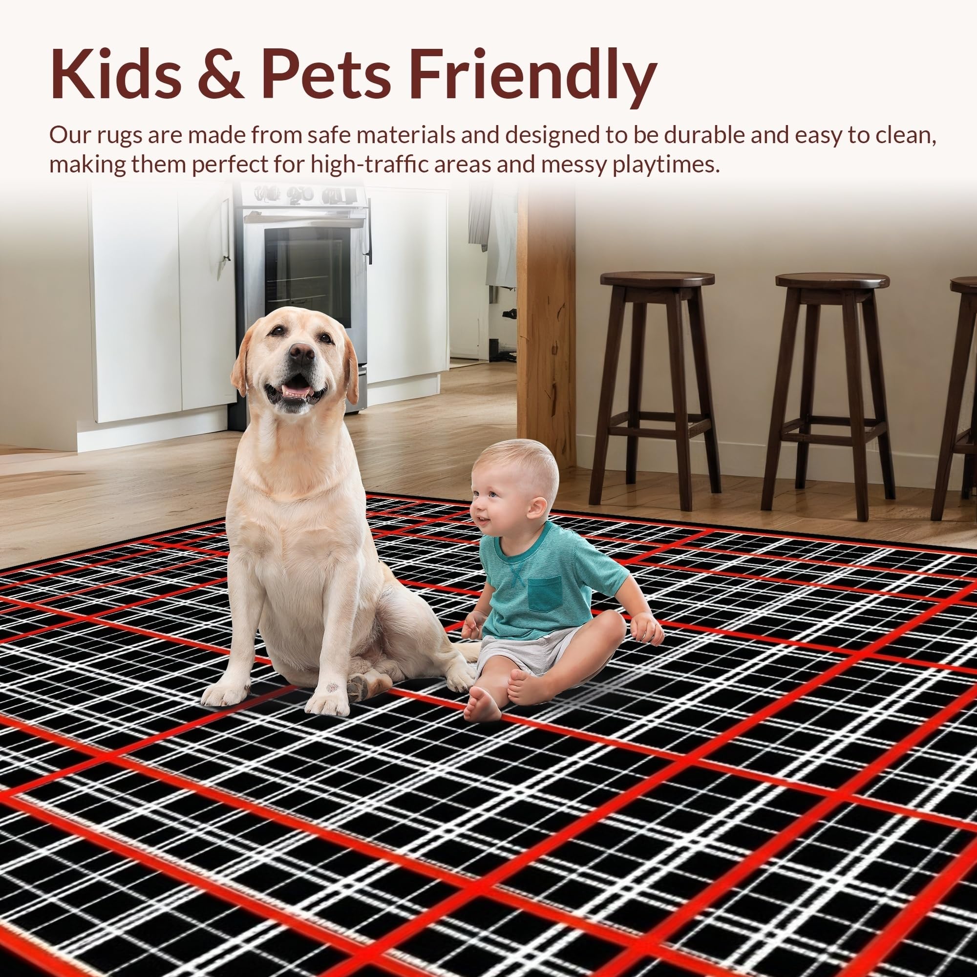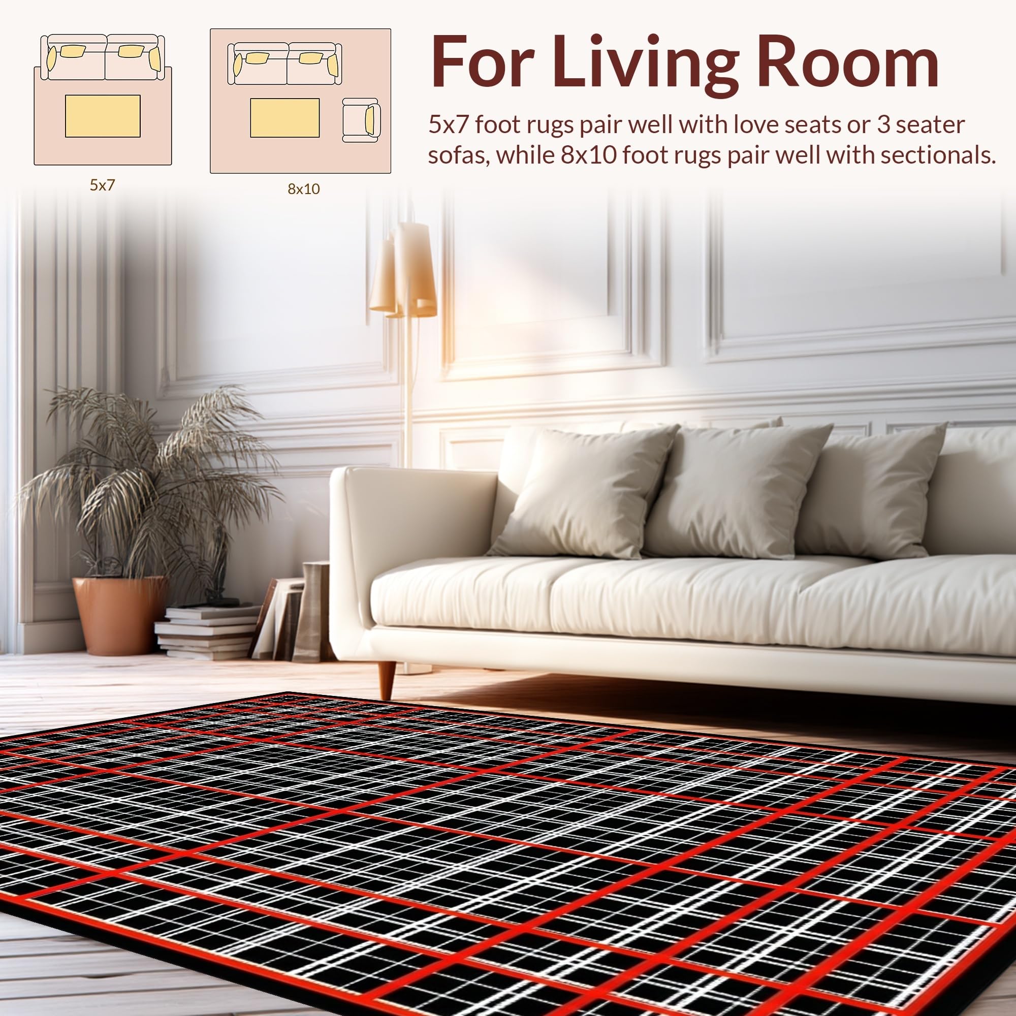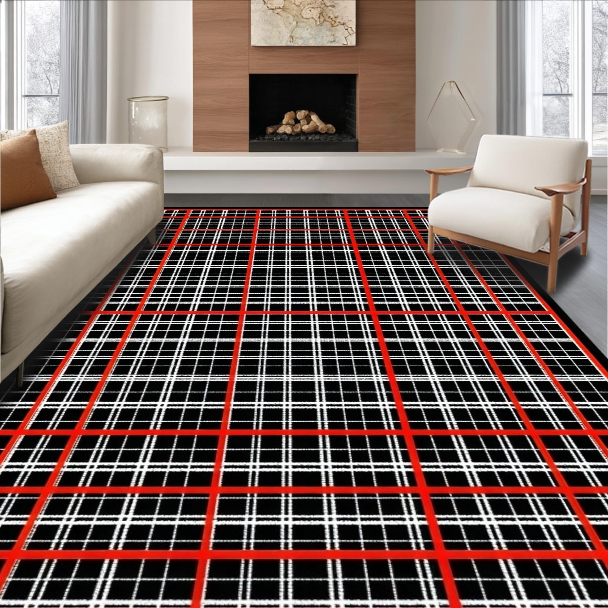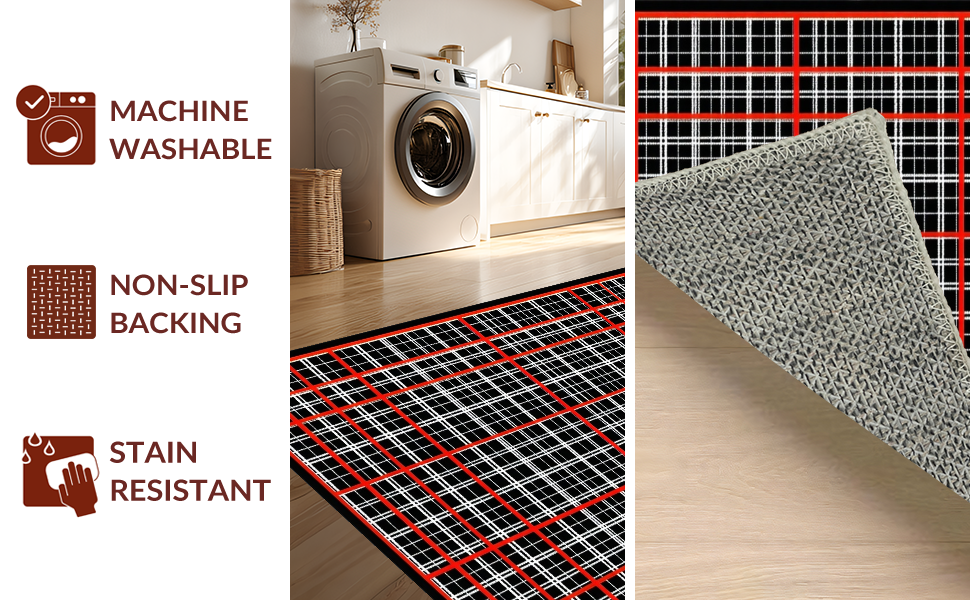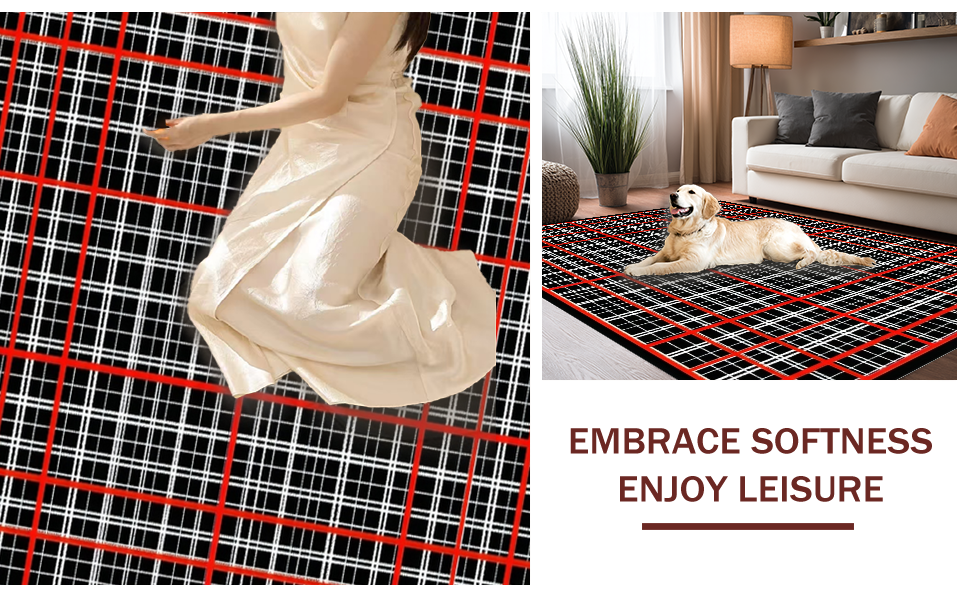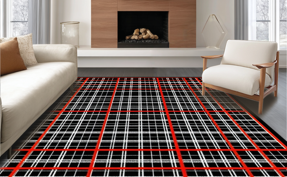 Ultra Soft Area Rug, Non Slip, Stain Resistant, Washable Area Rugs for Living Room, Bedroom, Dynamic Red and Black Contrast(Black) Overview: