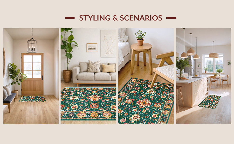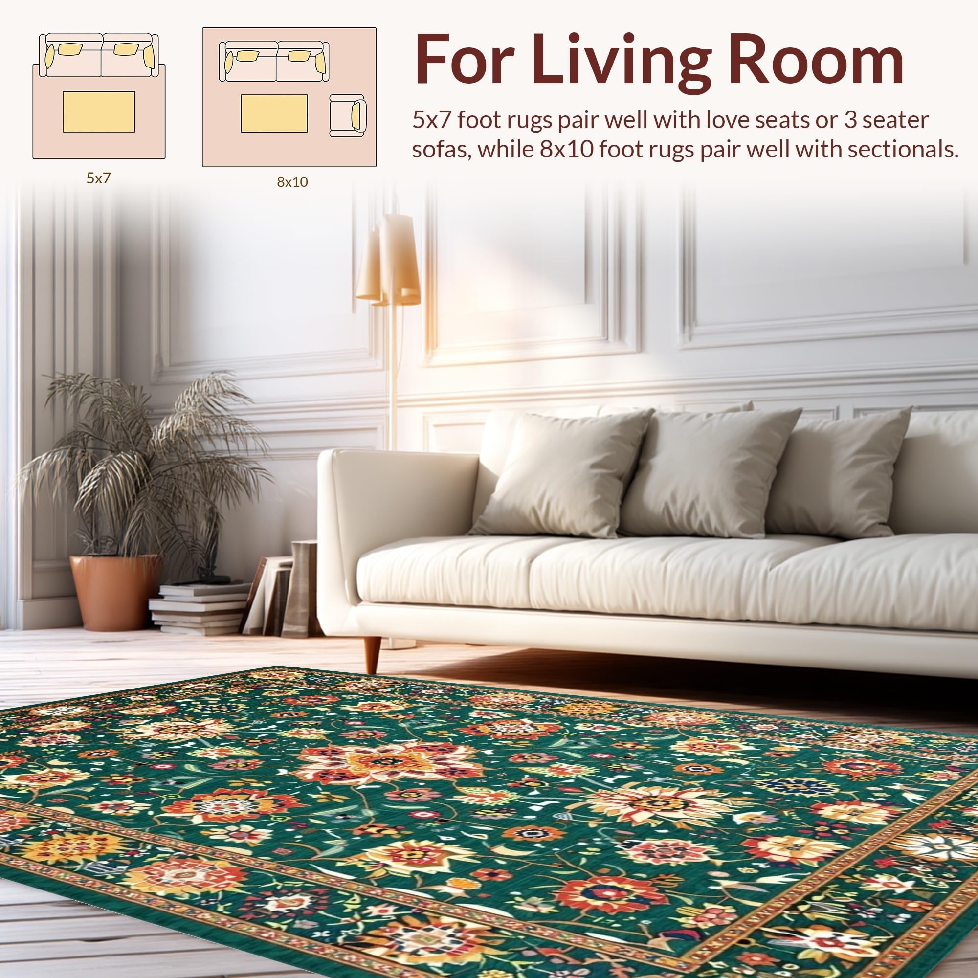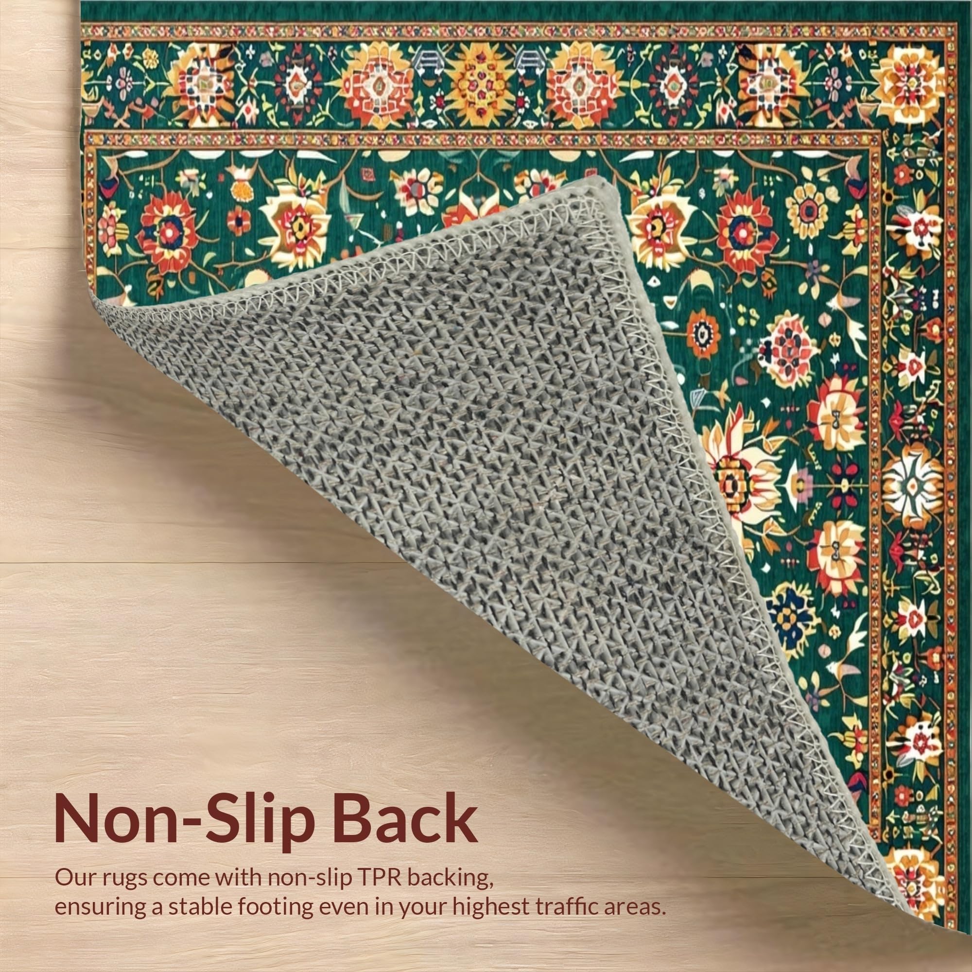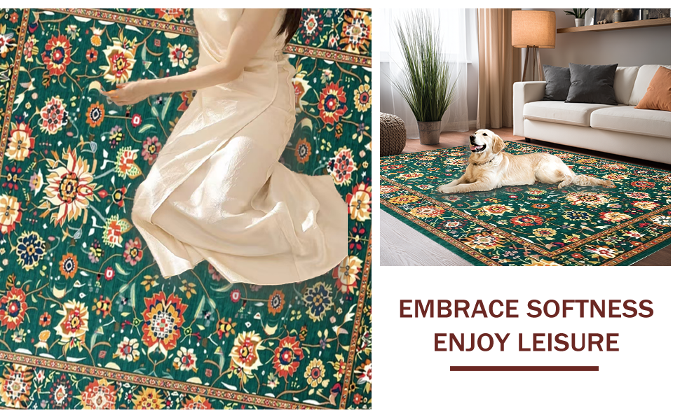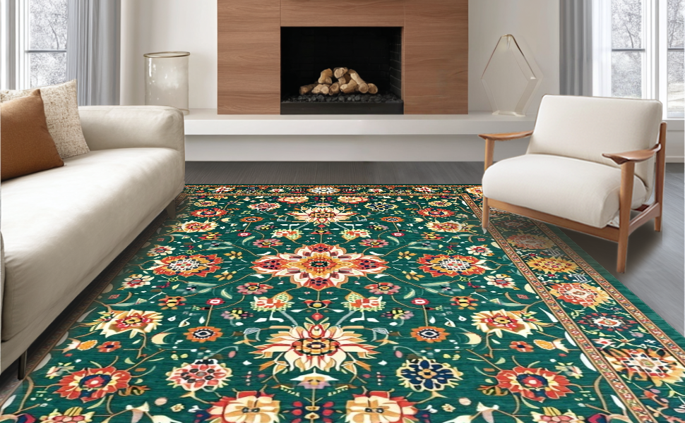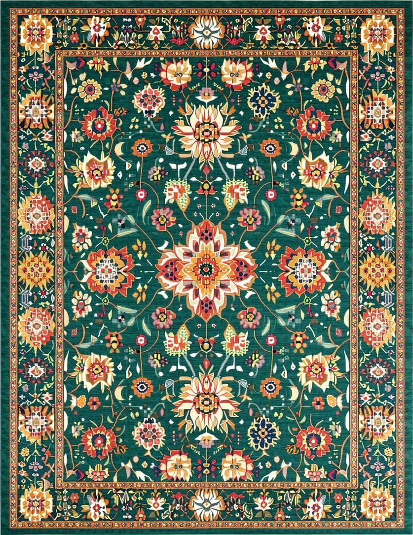 Ultra Soft Area Rug, Non Slip, Stain Resistant, Washable Area Rugs for Living Room, Bedroom, Dynamic Retro Medallion Print(Green) Overview: