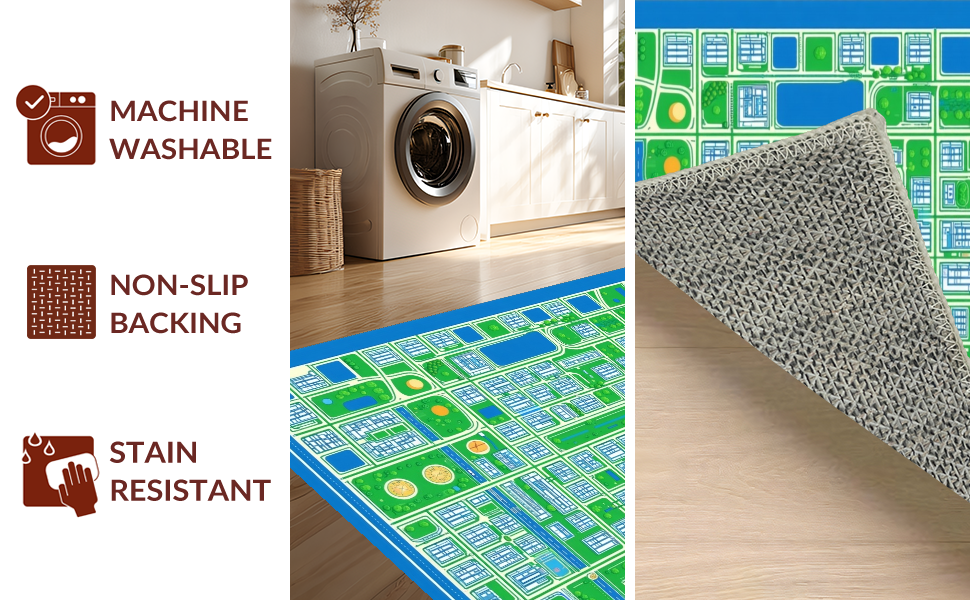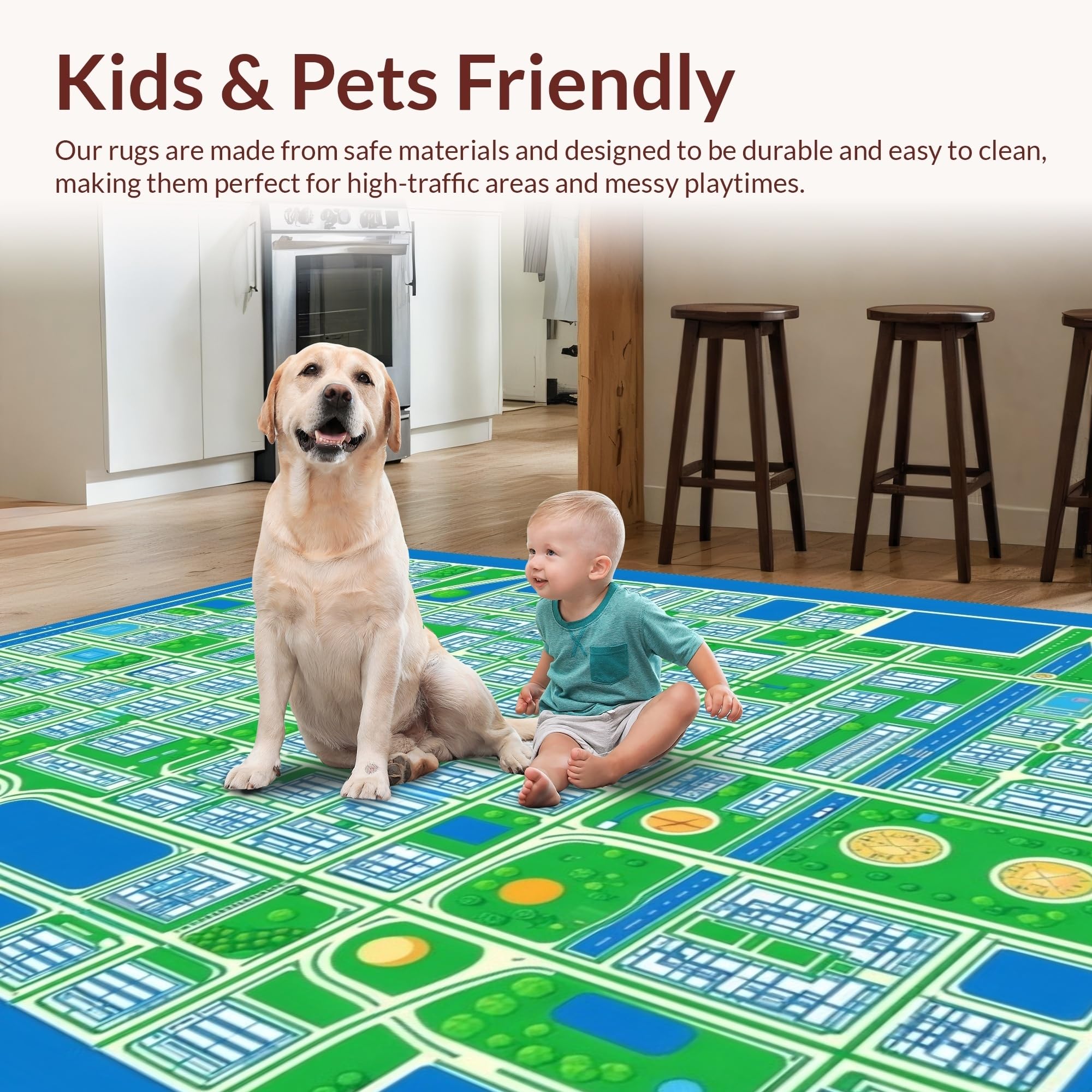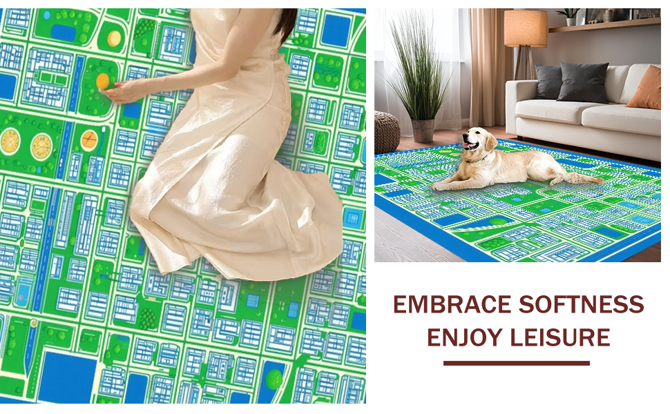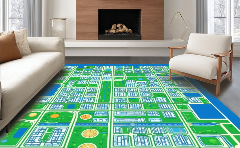 Ultra Soft Area Rug, Non Slip, Stain Resistant, Washable Area Rugs for Living Room, Bedroom, Dynamic Roadway Exploration Carpet(Green) Overview: