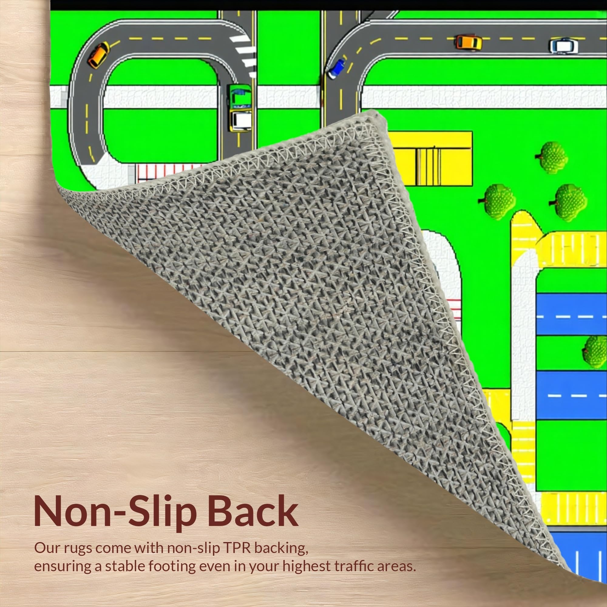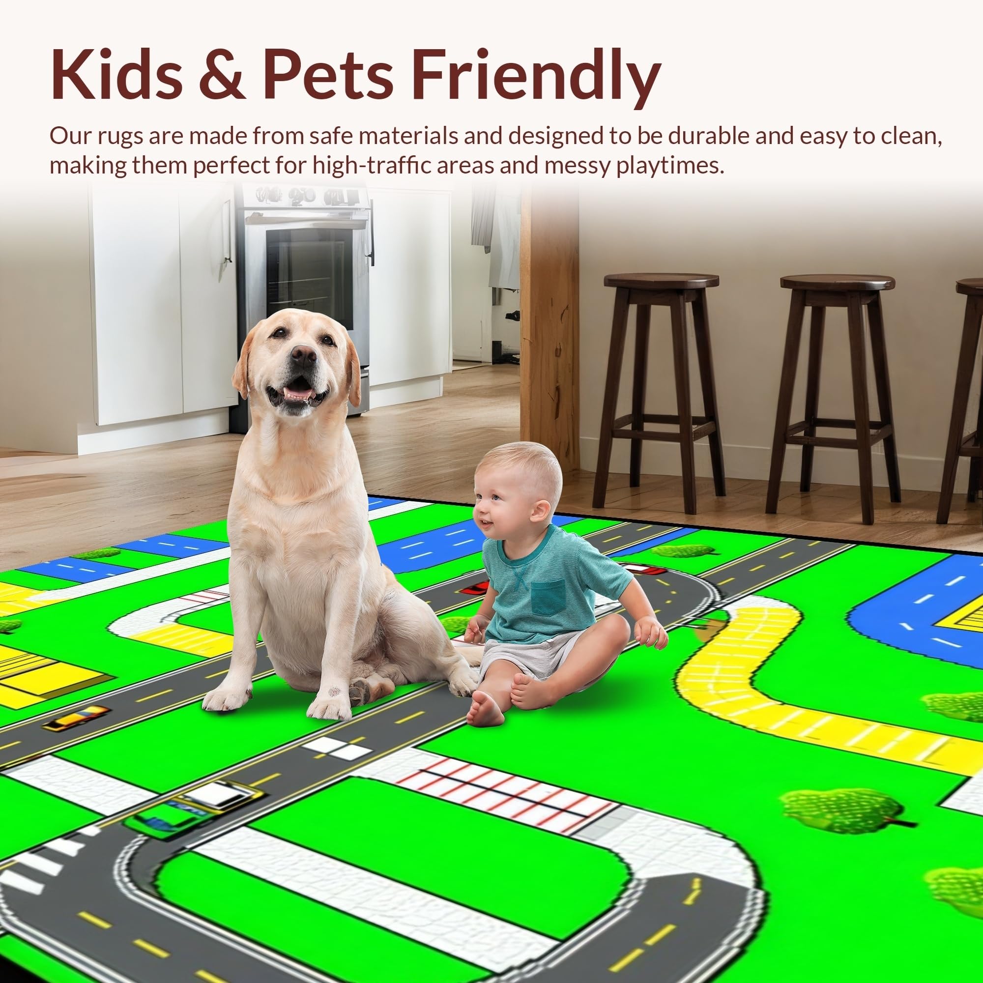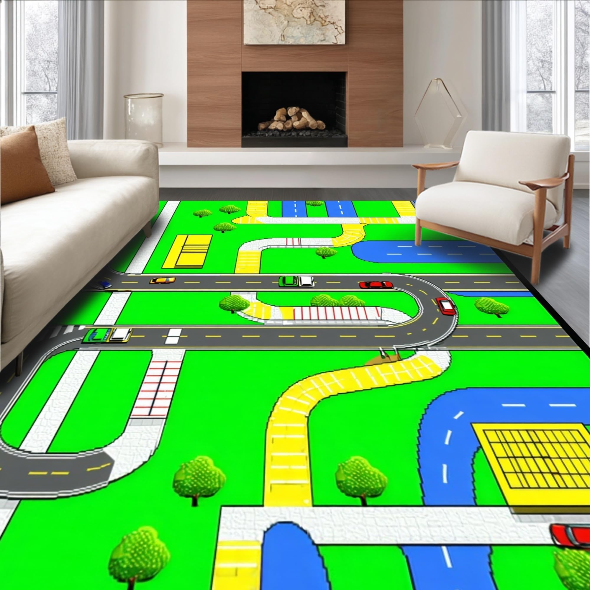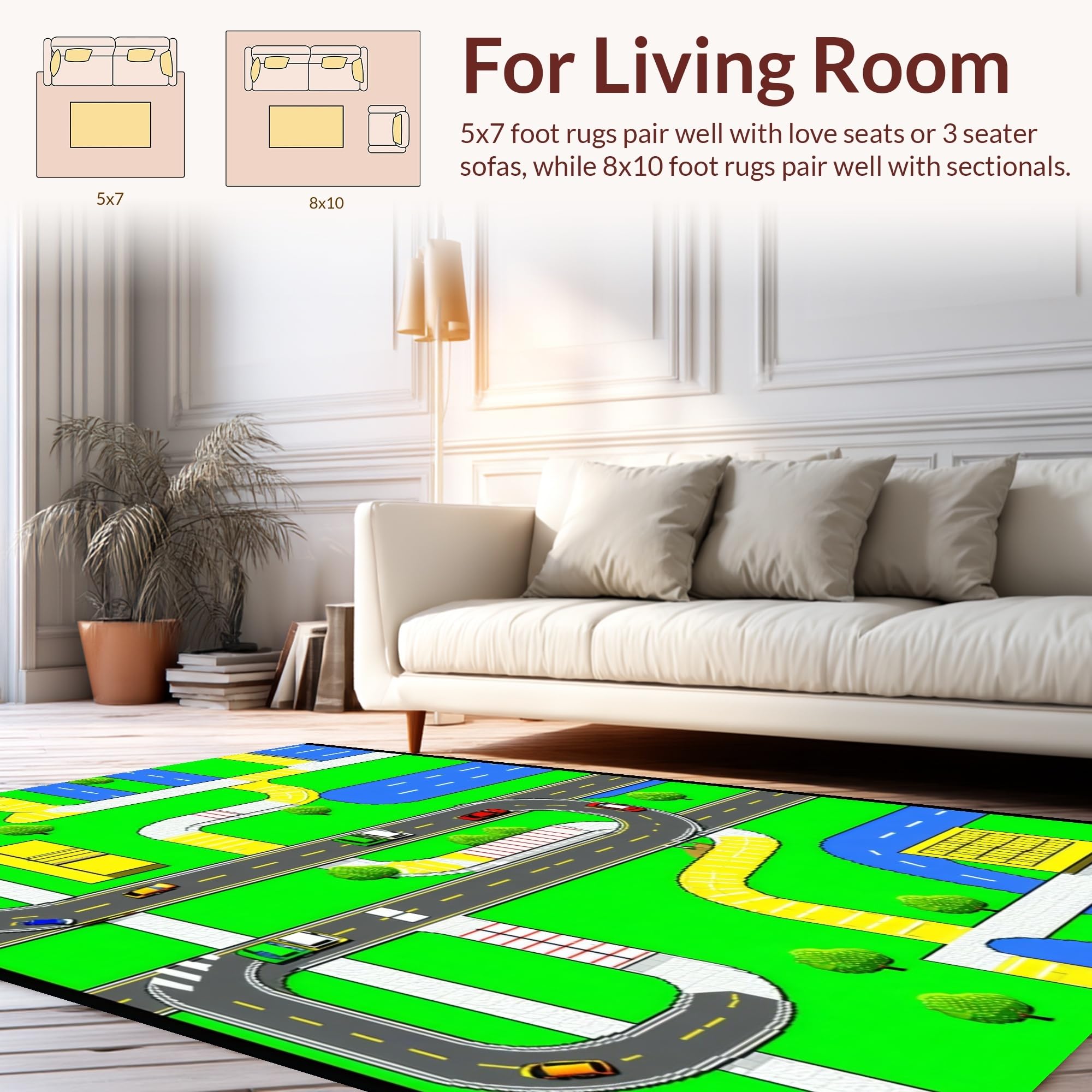 Ultra Soft Area Rug, Non Slip, Stain Resistant, Washable Area Rugs for Living Room, Bedroom, Dynamic Roadway Exploration Design(Green) Overview: