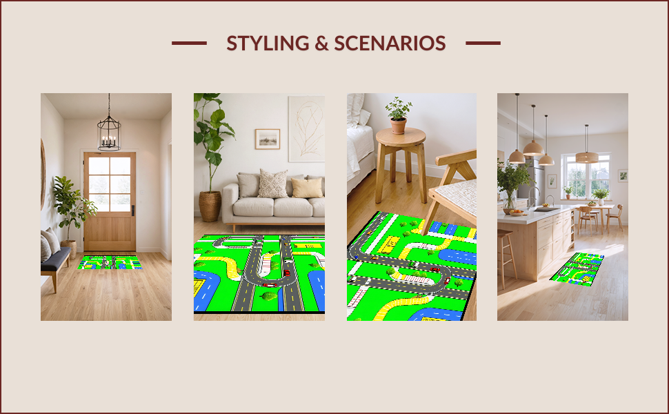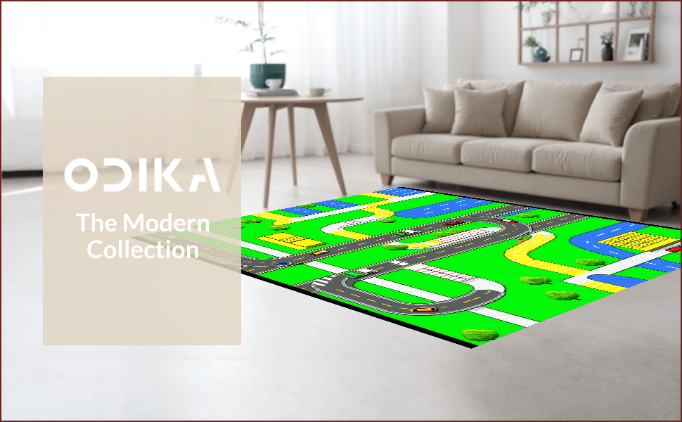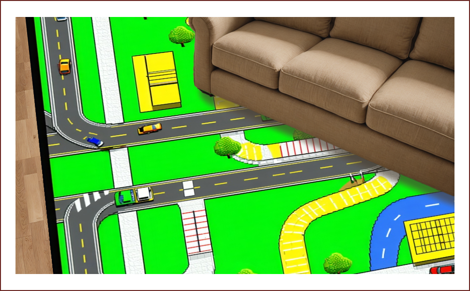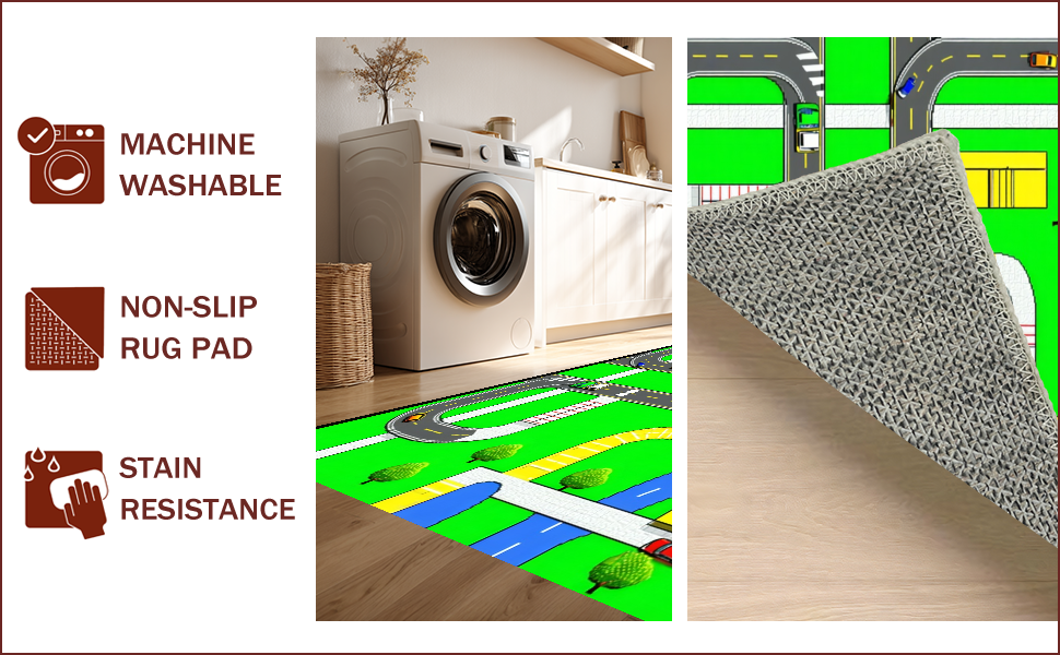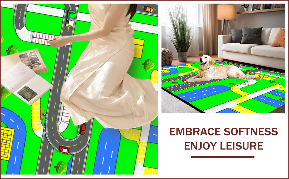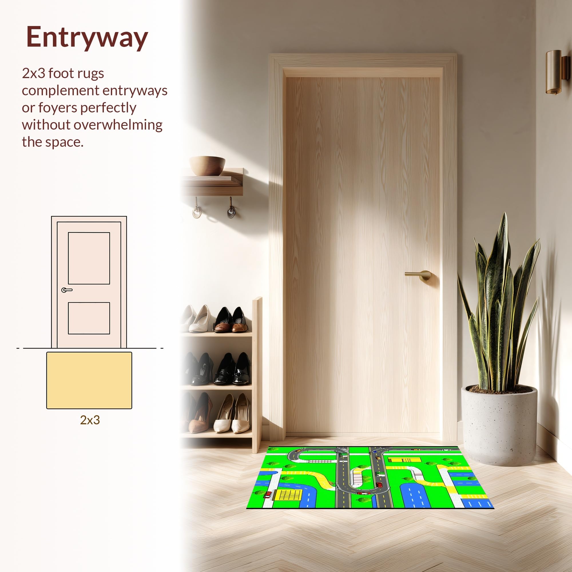 Ultra Soft Area Rug, Non Slip, Stain Resistant, Washable Area Rugs for Living Room, Bedroom, Dynamic Roadway Exploration Design(Green) Overview: