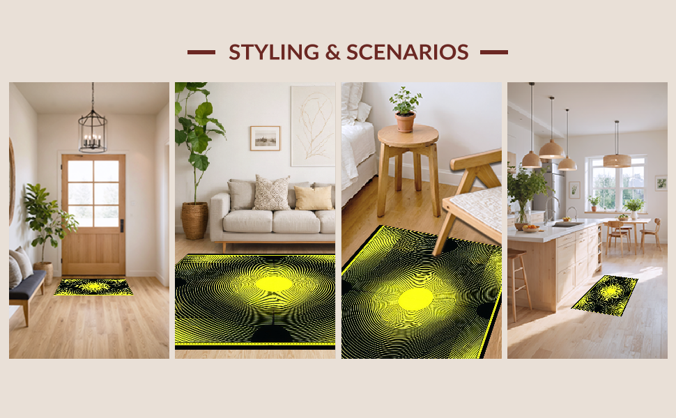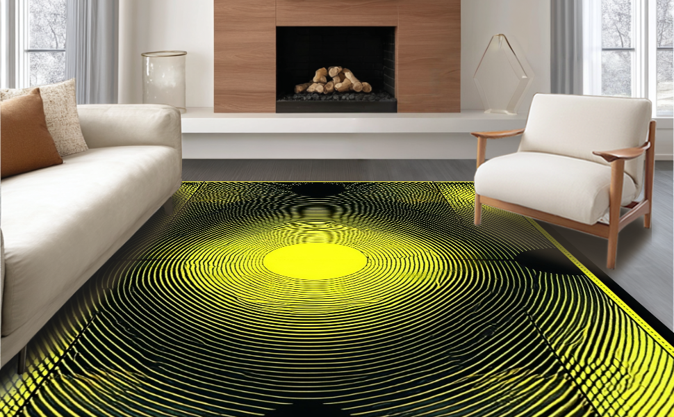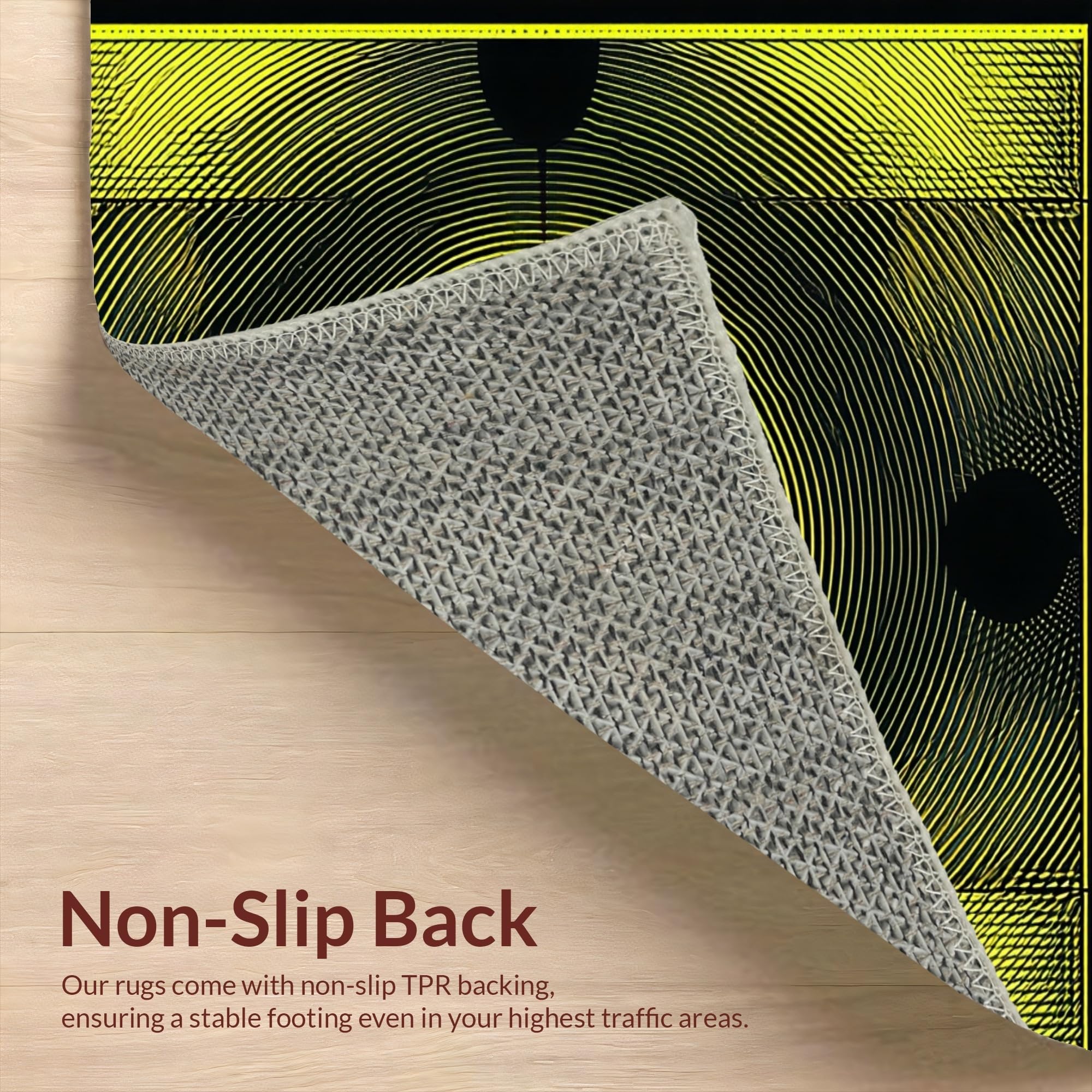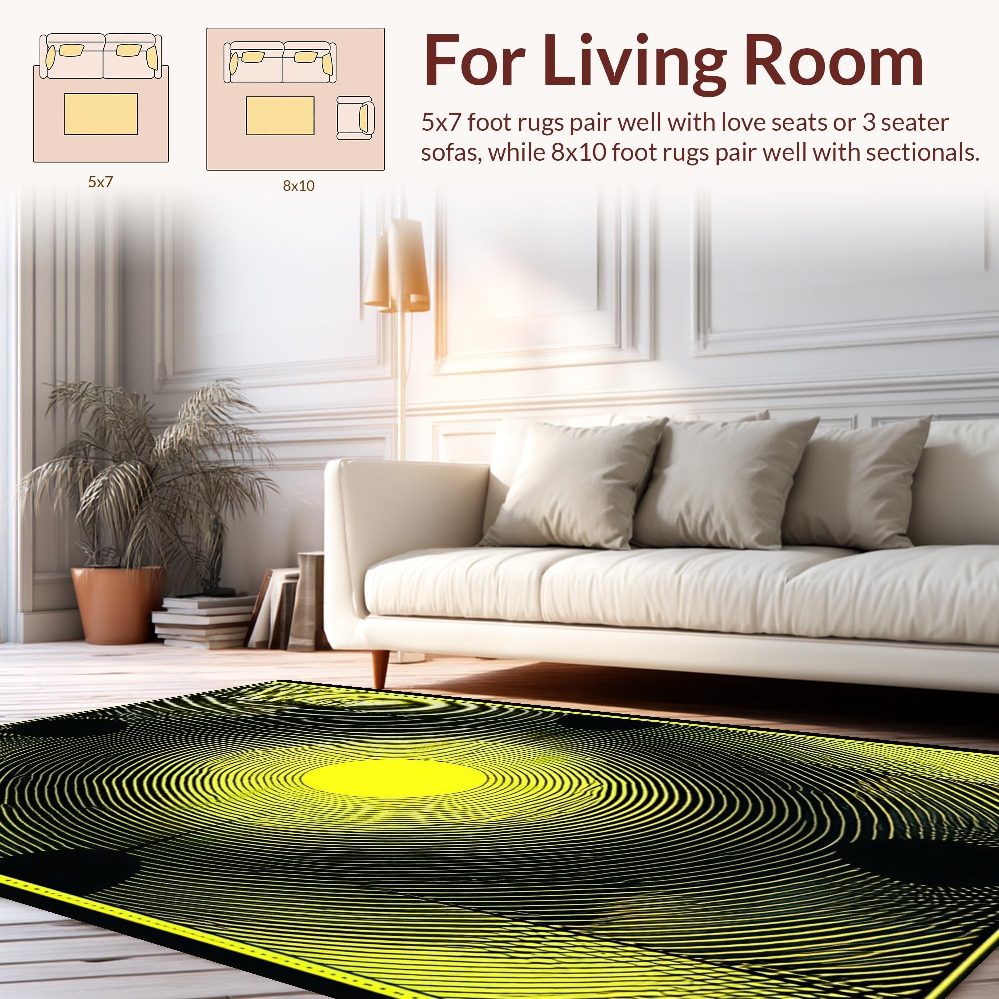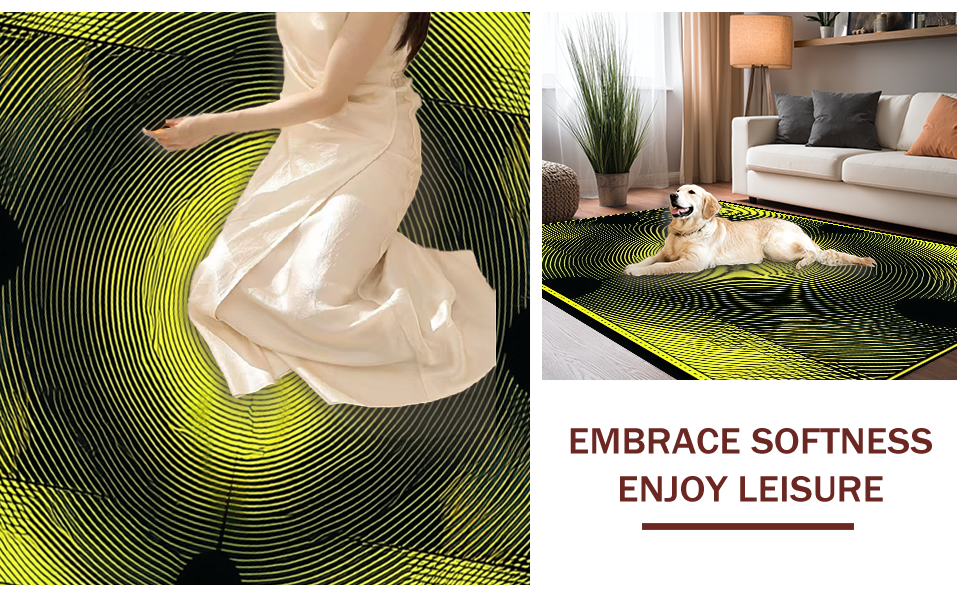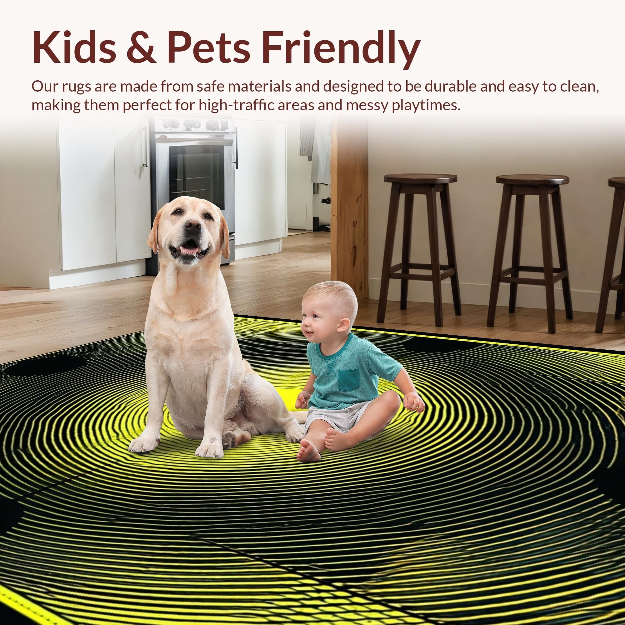 Ultra Soft Area Rug, Non Slip, Stain Resistant, Washable Area Rugs for Living Room, Bedroom, Dynamic Round Abstract Pattern(Black) Overview: