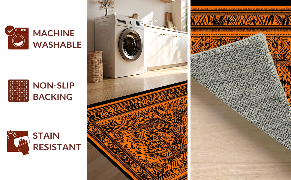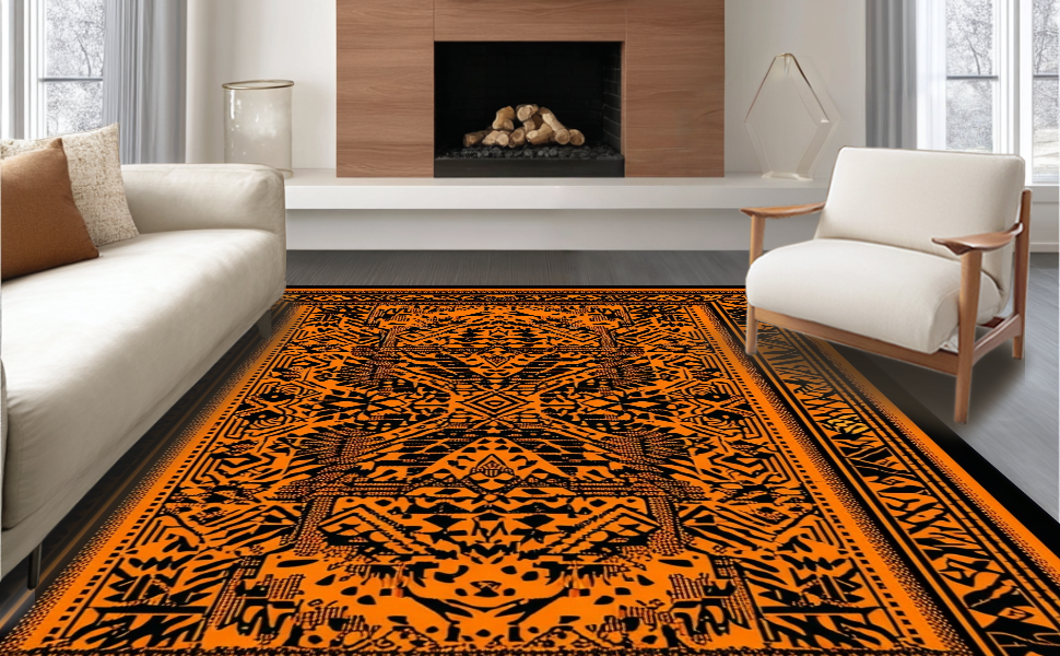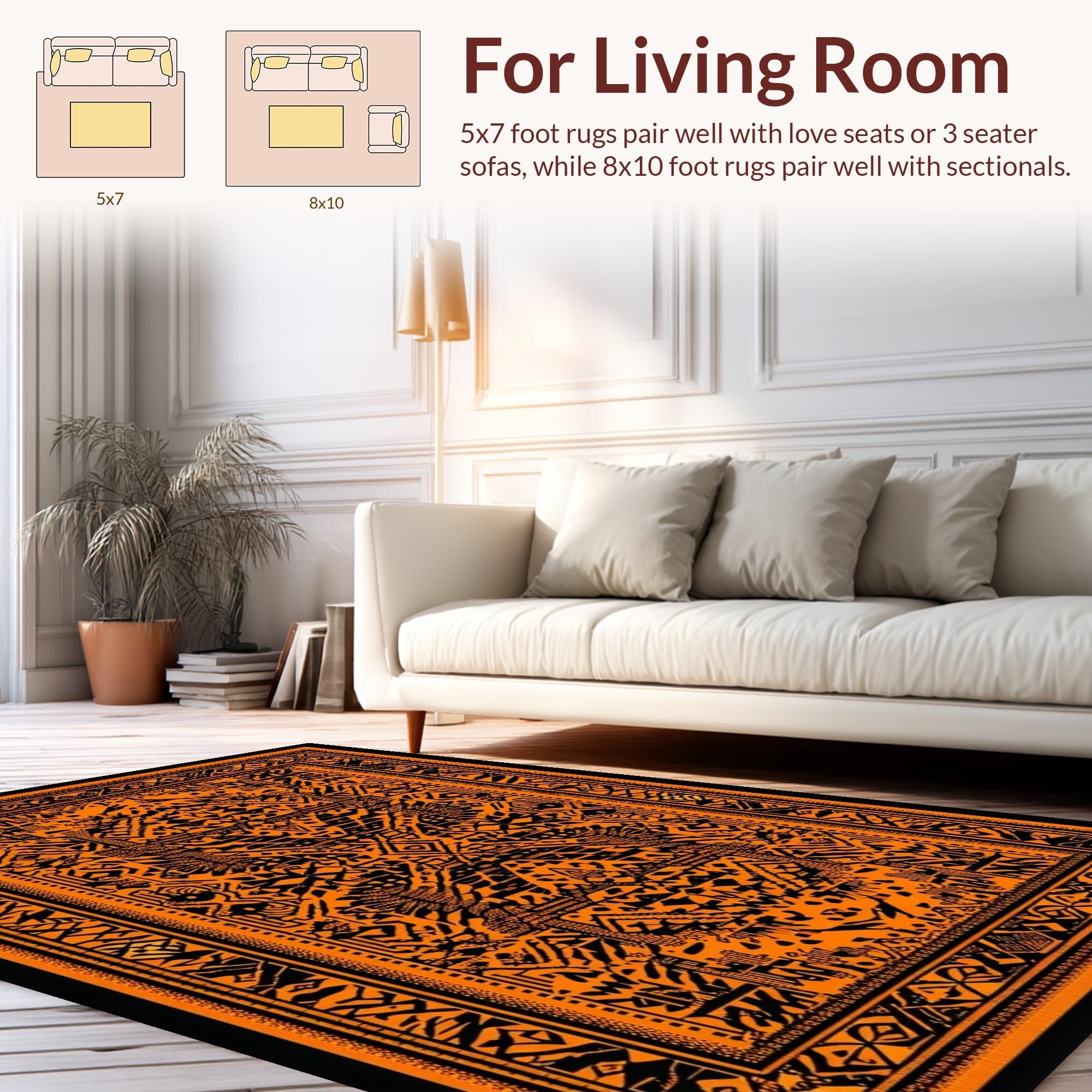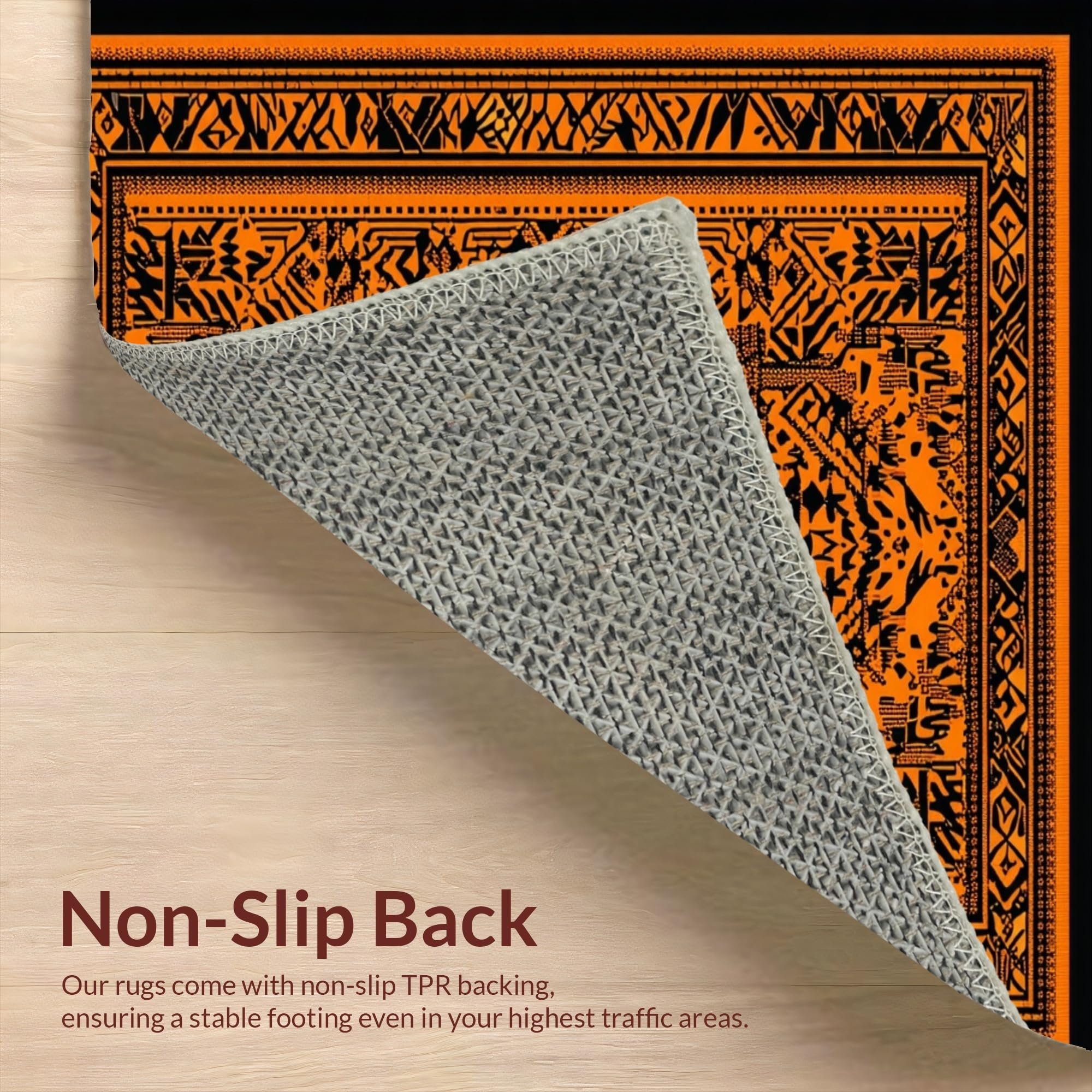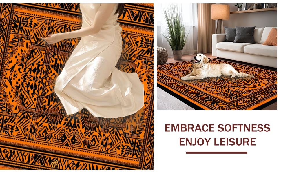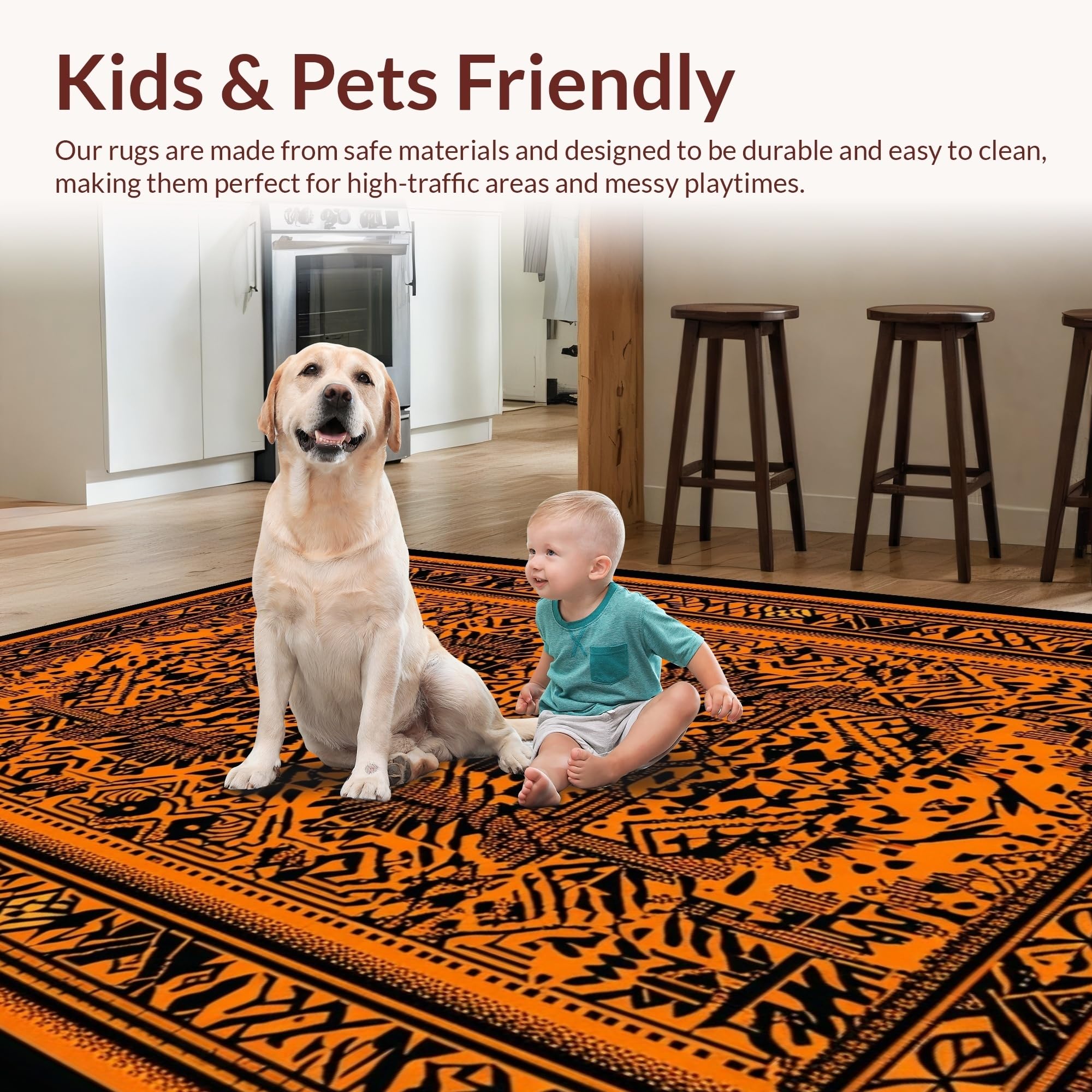 Ultra Soft Area Rug, Non Slip, Stain Resistant, Washable Area Rugs for Living Room, Bedroom, Dynamic Rustic Wildlife Theme(Orange) Overview: