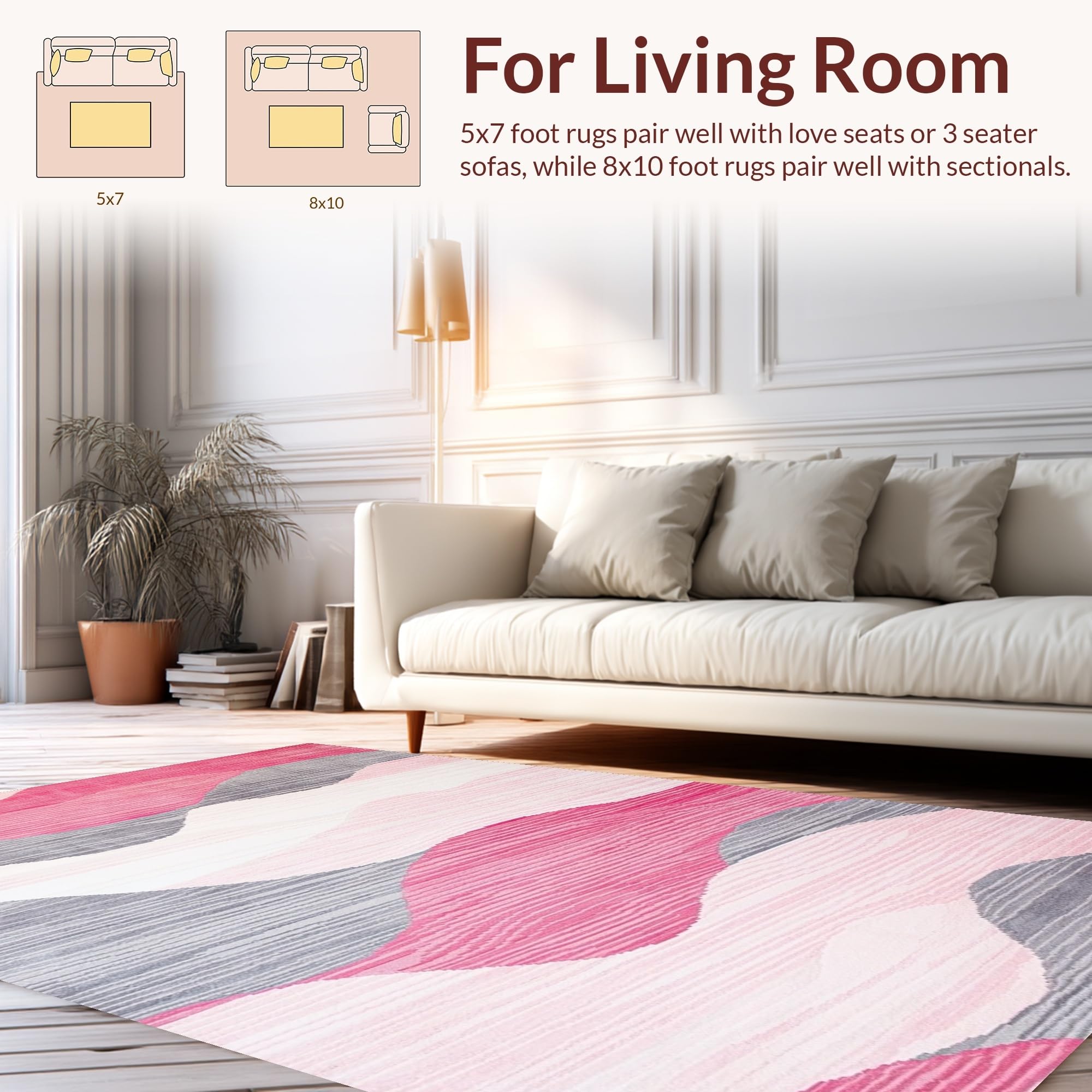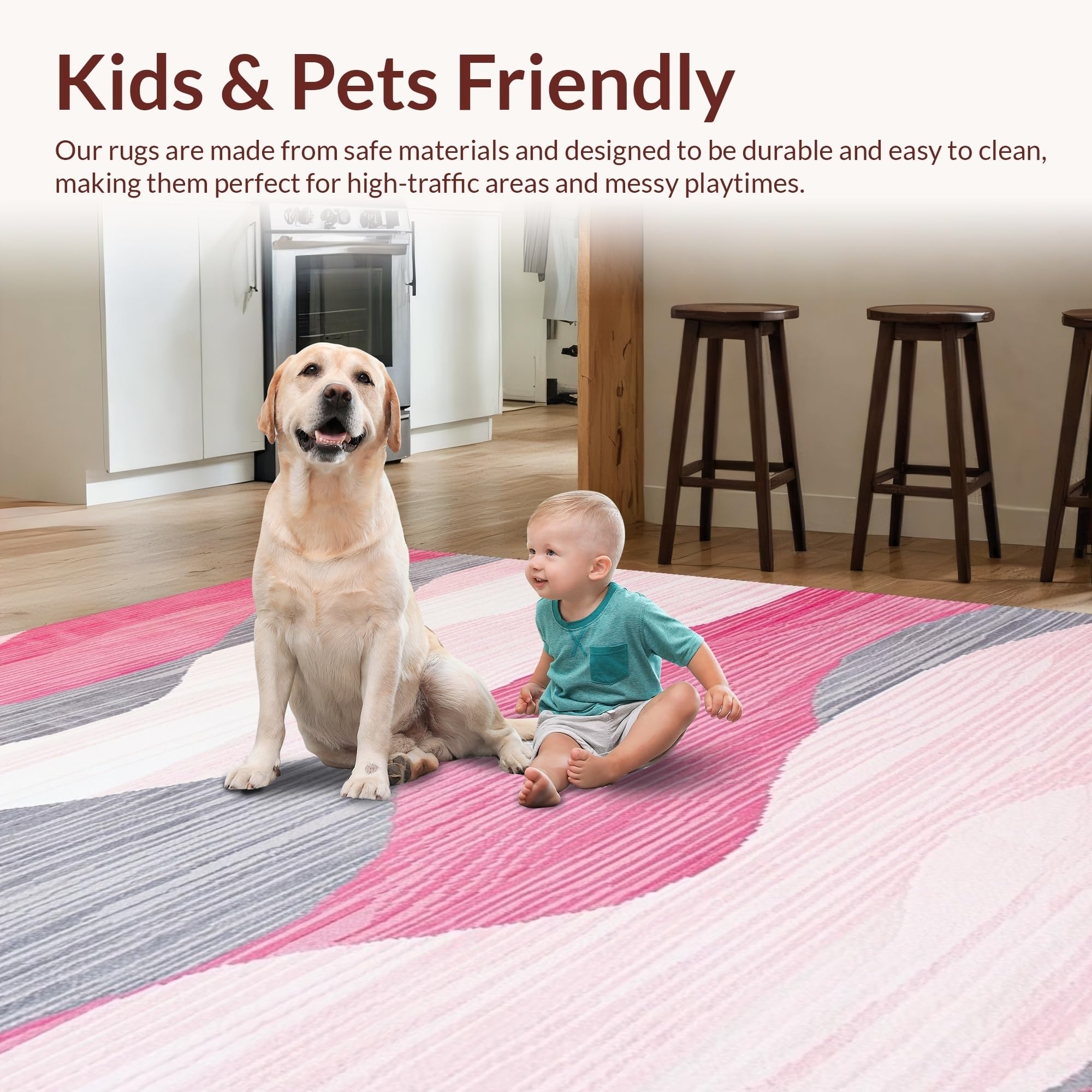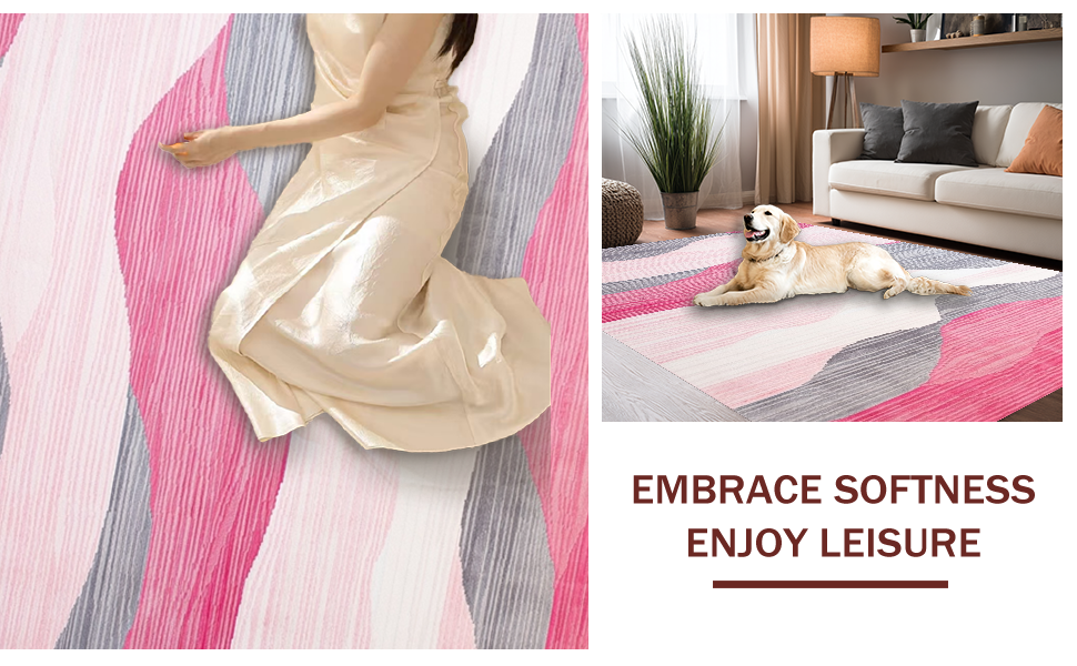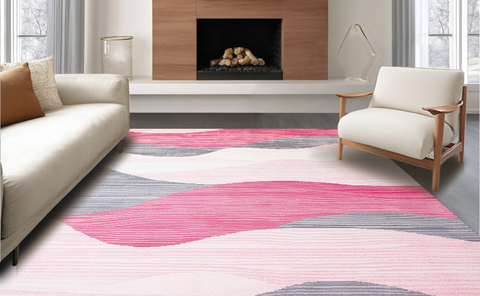 Ultra Soft Area Rug, Non Slip, Stain Resistant, Washable Area Rugs for Living Room, Bedroom, Dynamic Soft-Toned Decorative Elements(Pink) Overview: