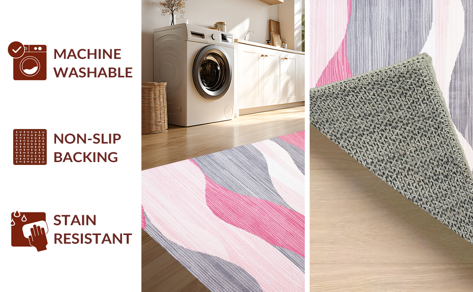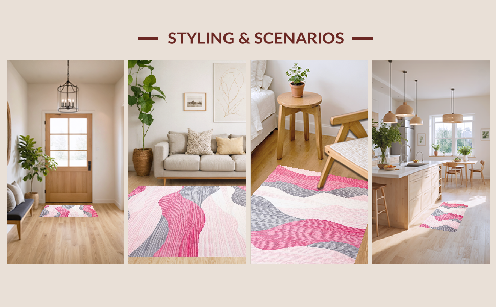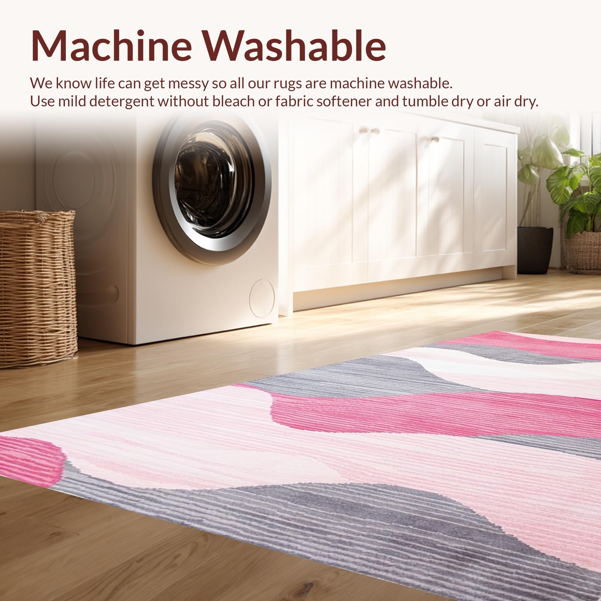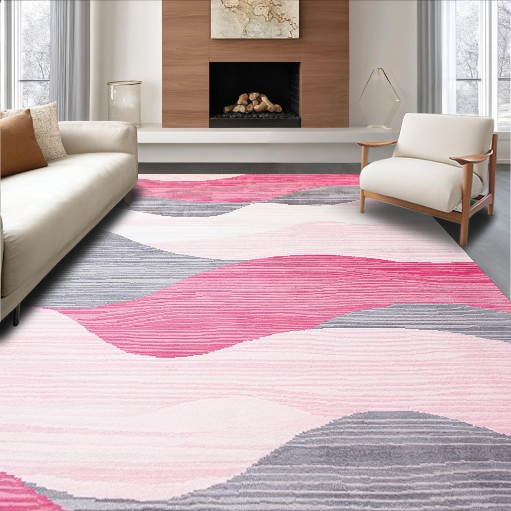 Ultra Soft Area Rug, Non Slip, Stain Resistant, Washable Area Rugs for Living Room, Bedroom, Dynamic Soft-Toned Decorative Elements(Pink) Overview: