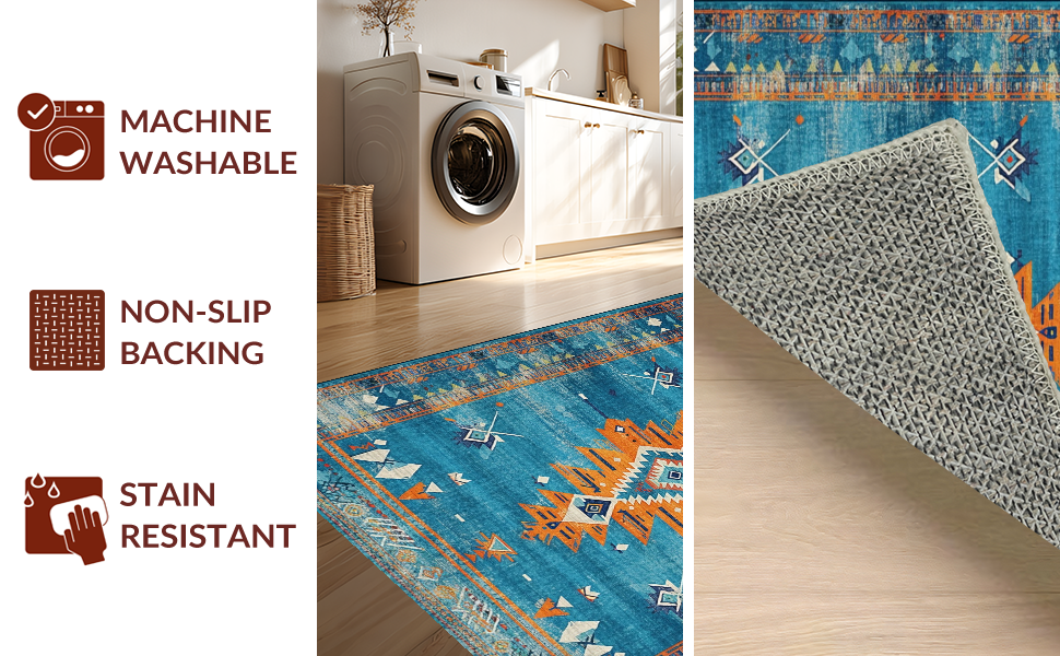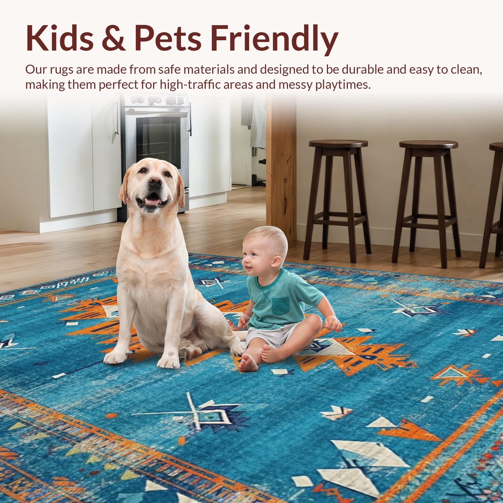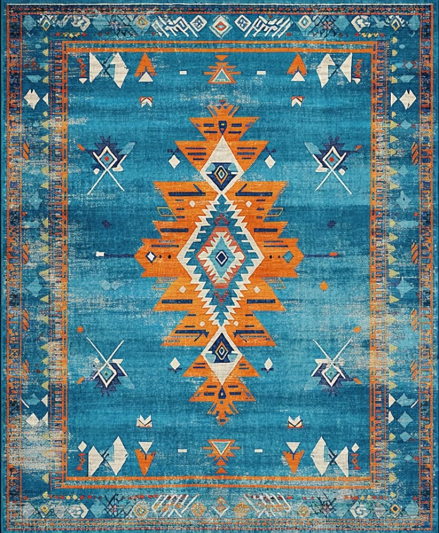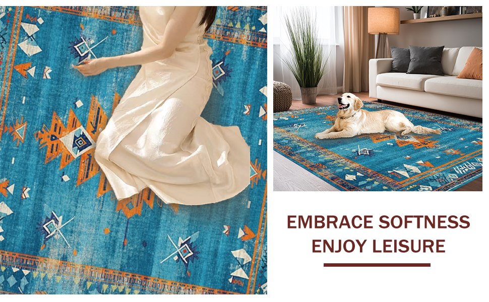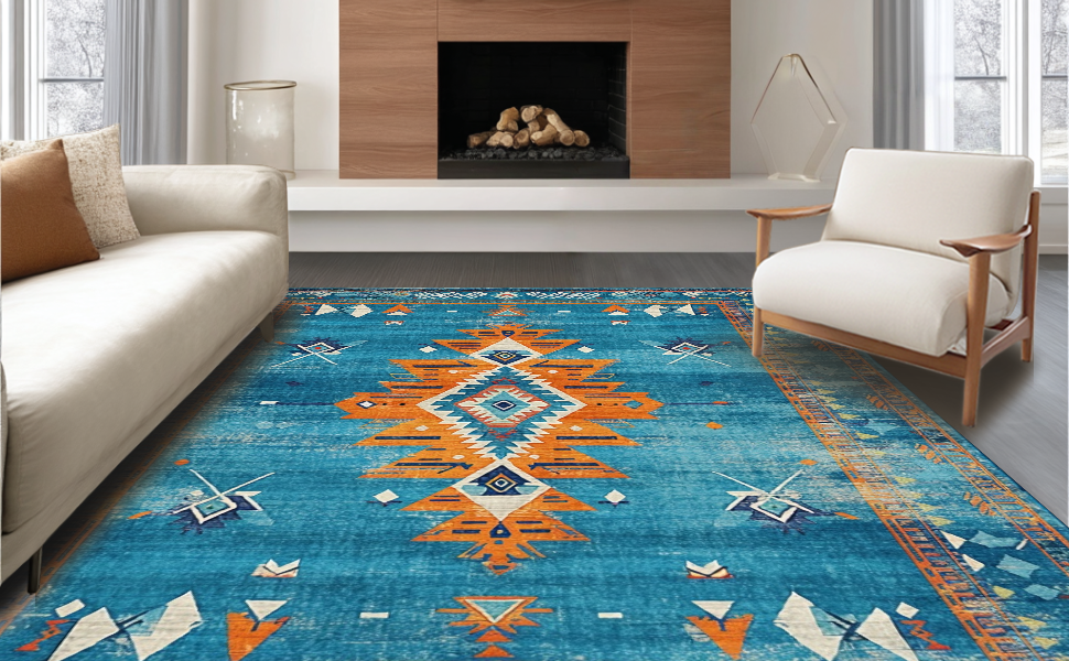 Ultra Soft Area Rug, Non Slip, Stain Resistant, Washable Area Rugs for Living Room, Bedroom, Dynamic Southwestern Color Fusion(Blue) Overview: