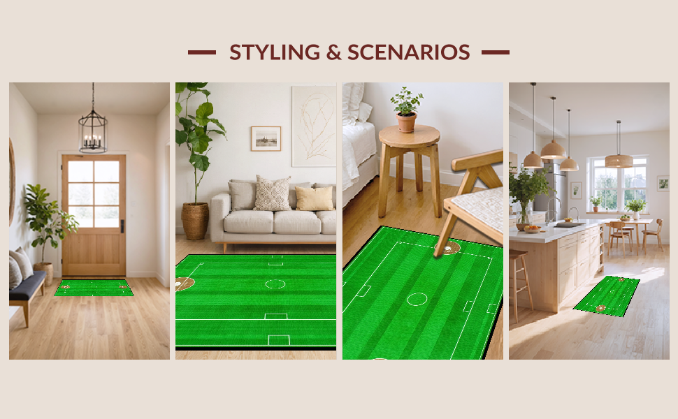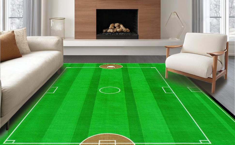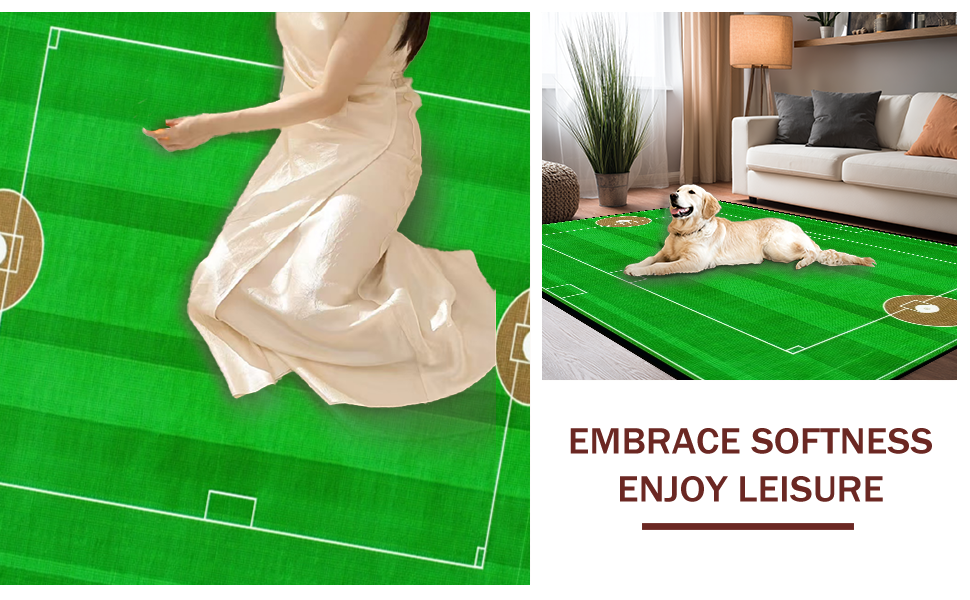 Ultra Soft Area Rug, Non Slip, Stain Resistant, Washable Area Rugs for Living Room, Bedroom, Dynamic Sports Field Aesthetic(Green) Overview: