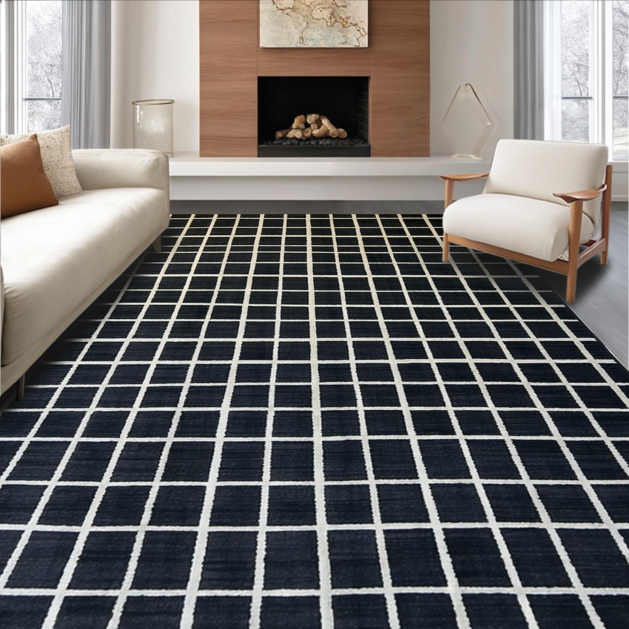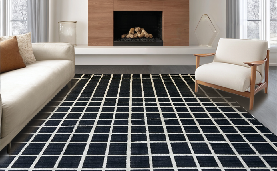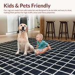 Ultra Soft Area Rug, Non Slip, Stain Resistant, Washable Area Rugs for Living Room, Bedroom, Dynamic Striped Artful Arrangement(Black) Overview:
