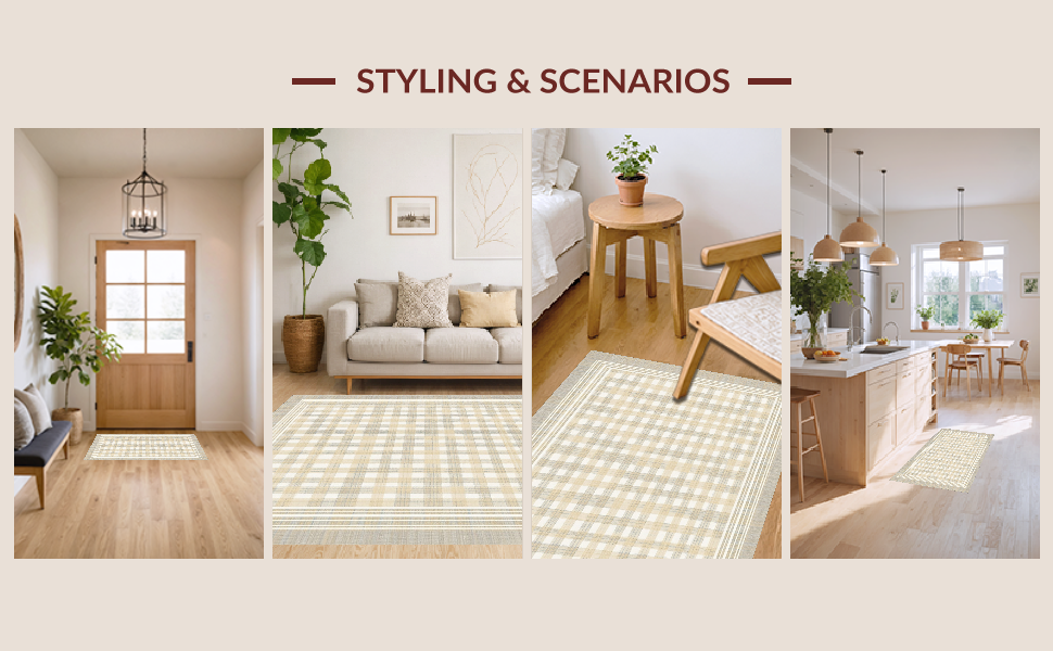 Ultra Soft Area Rug, Non Slip, Stain Resistant, Washable Area Rugs for Living Room, Bedroom, Dynamic Striped Geometric Elegance(Beige) Overview: