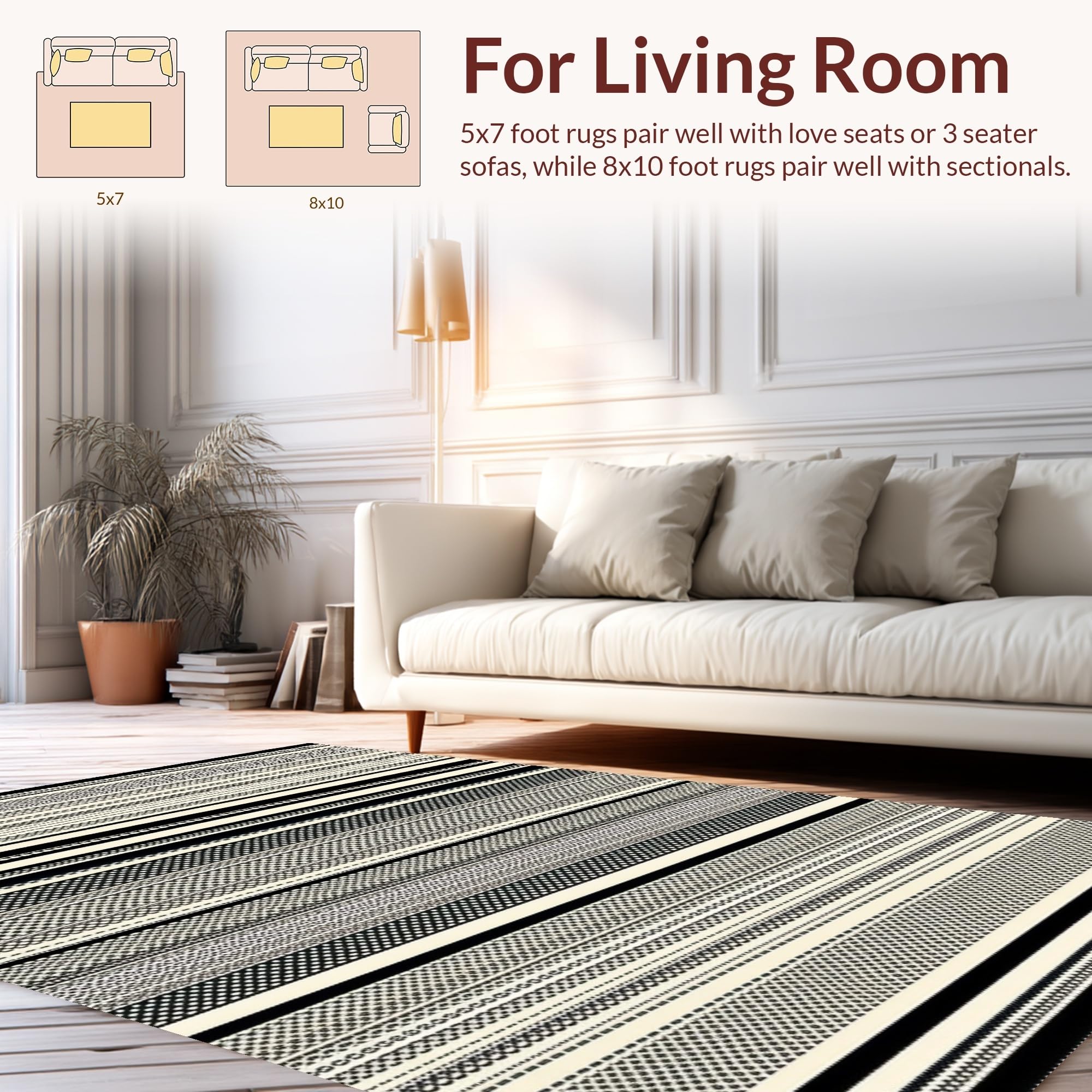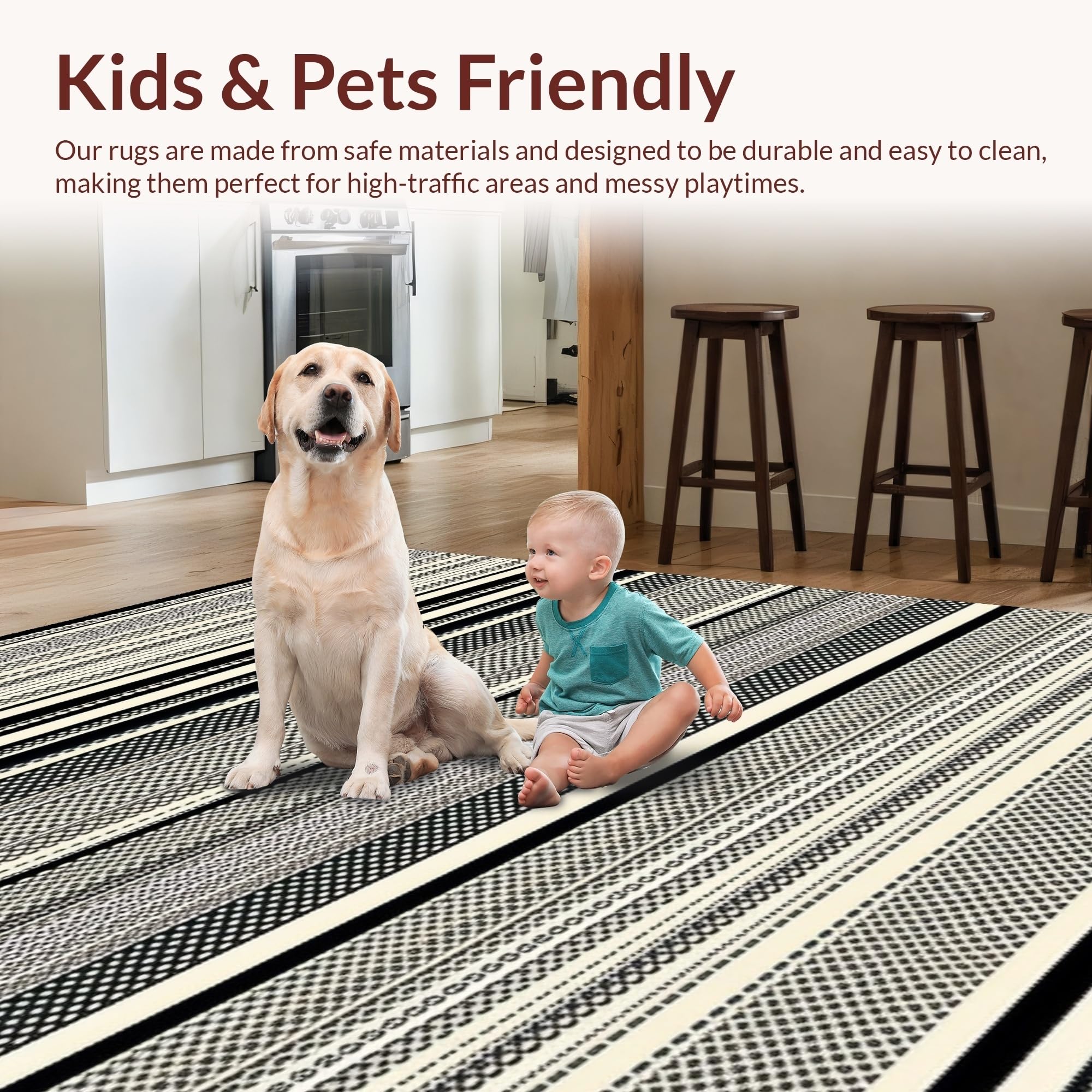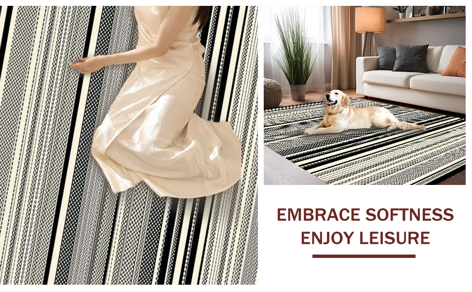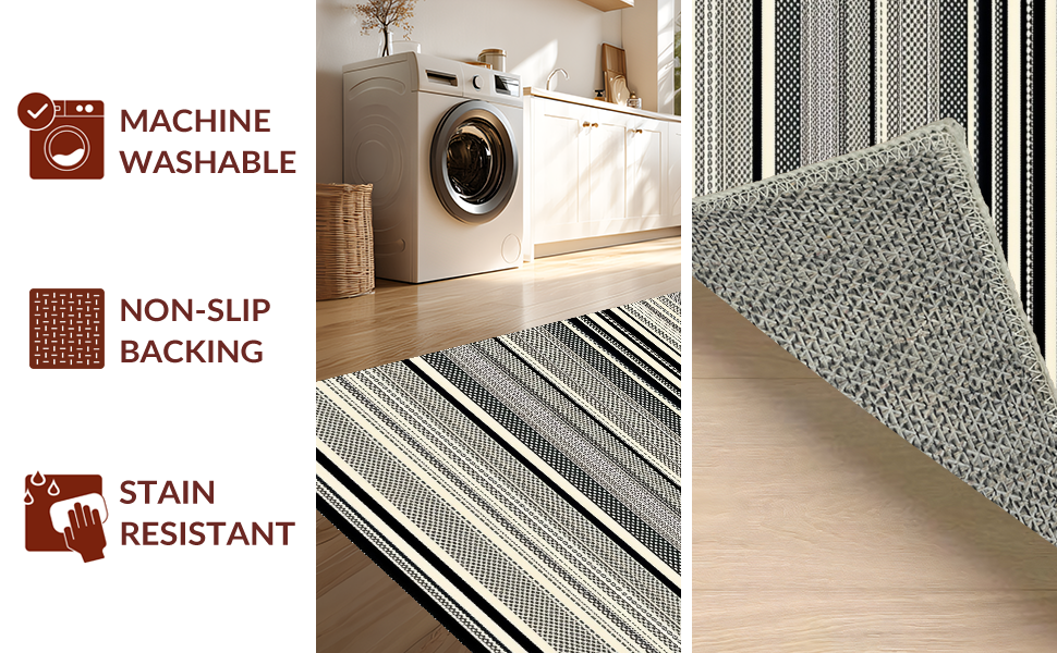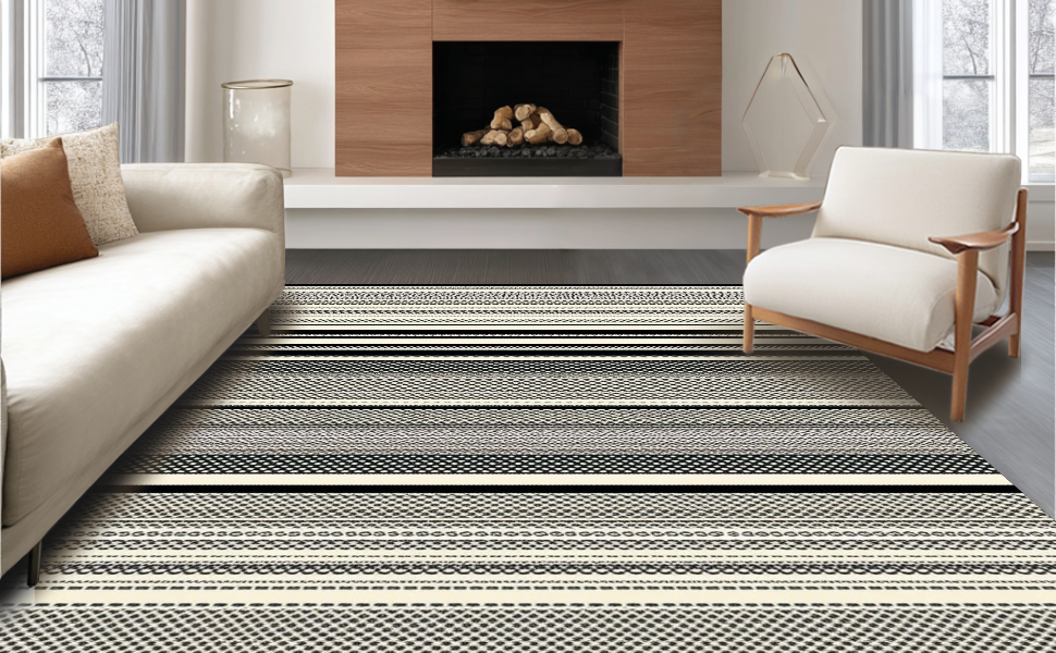 Ultra Soft Area Rug, Non Slip, Stain Resistant, Washable Area Rugs for Living Room, Bedroom, Dynamic Striped Modernist Approach(Black) Overview: