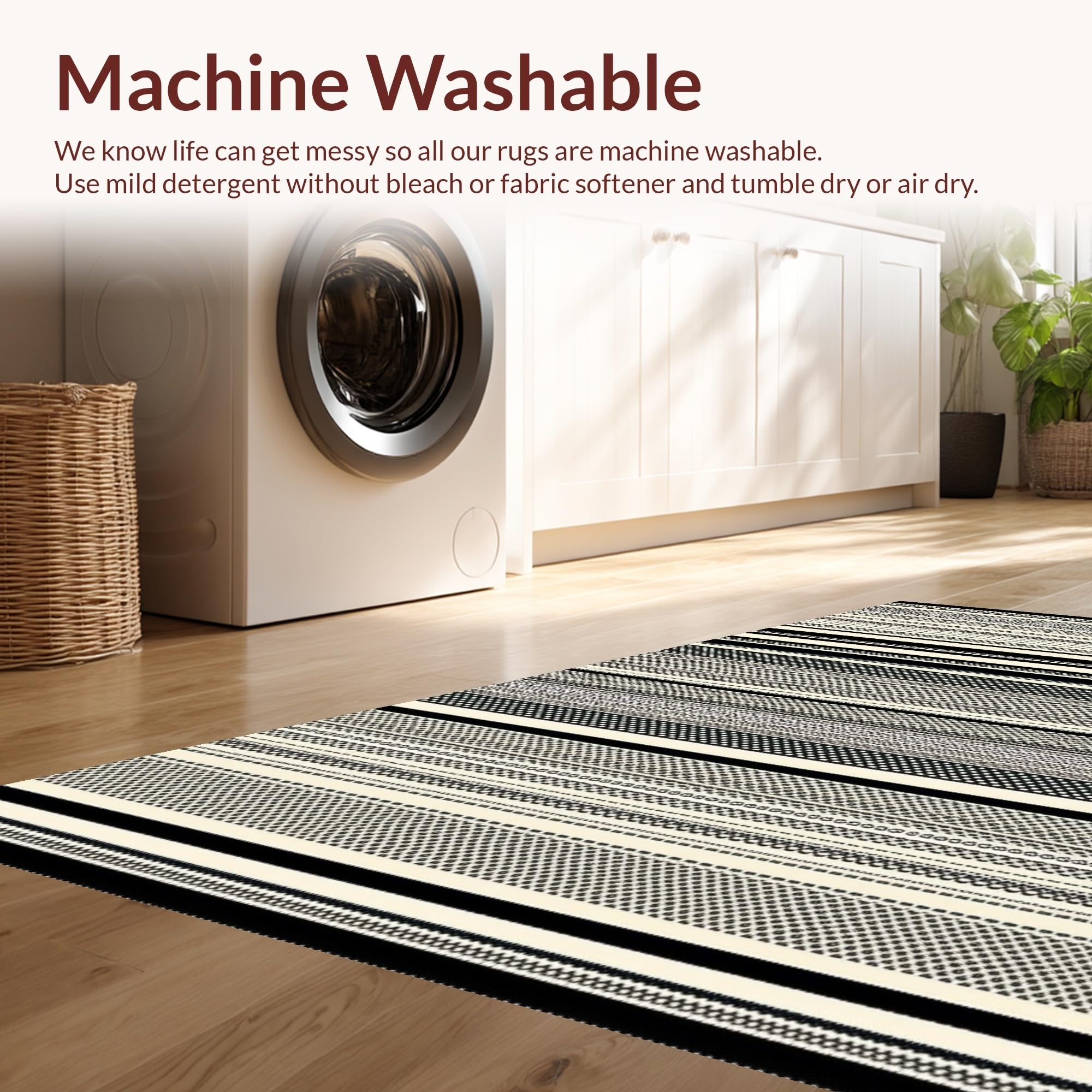 - Machine Washable: Our rugs can be easily thrown in the wash machine.