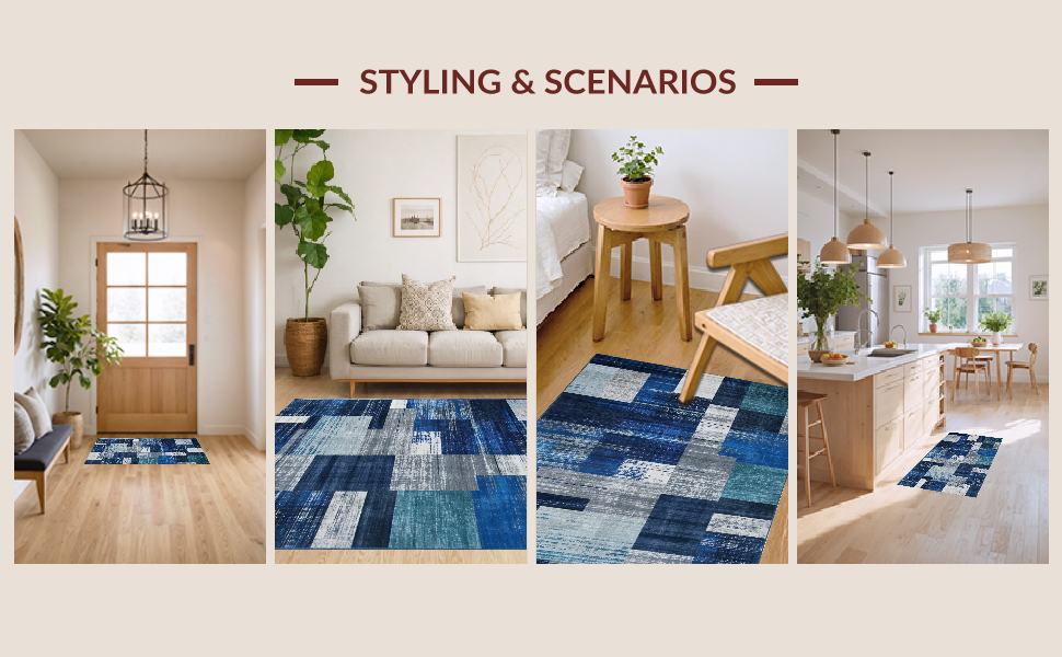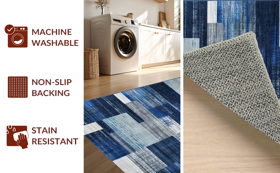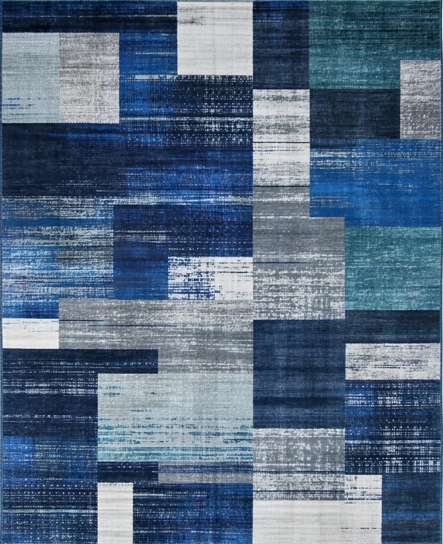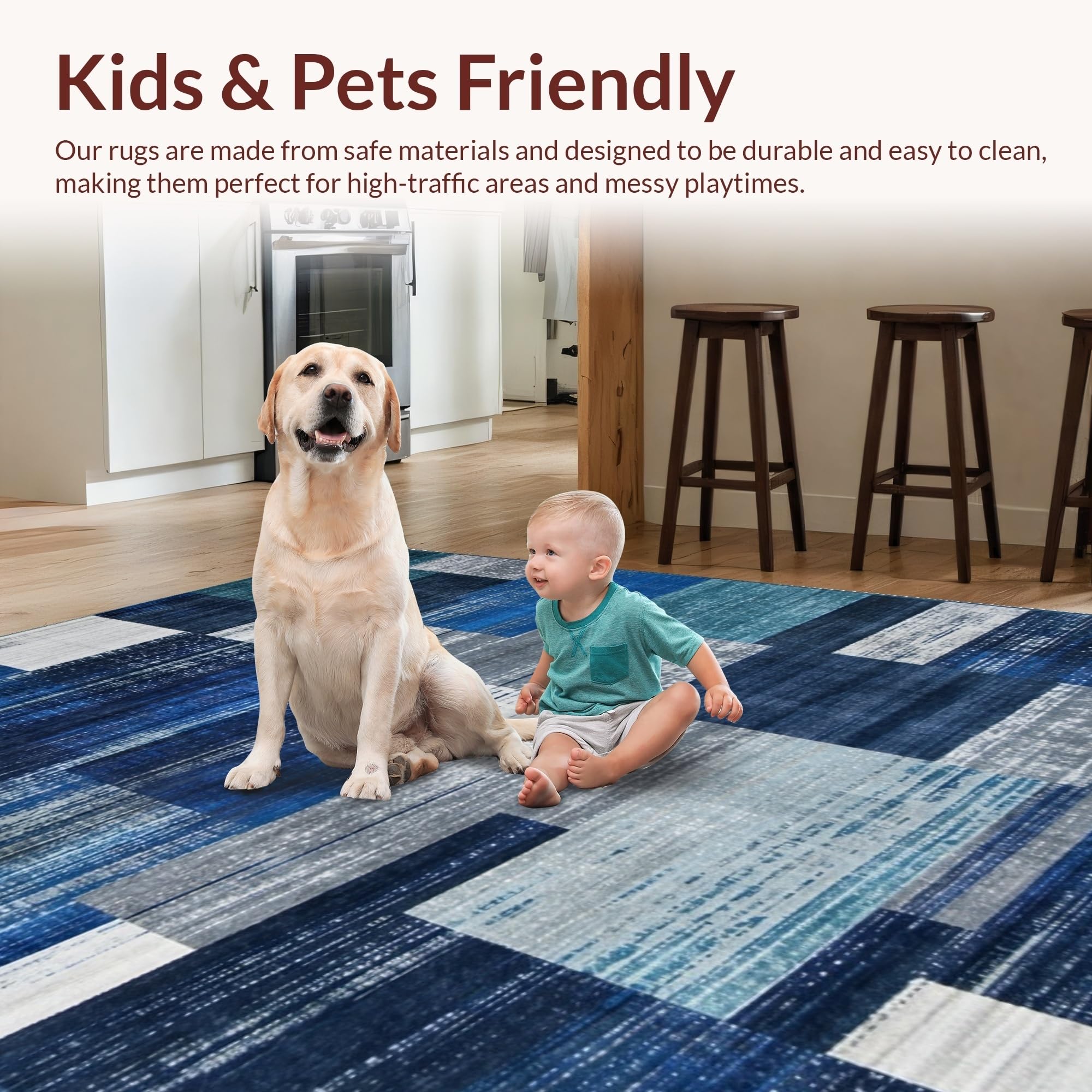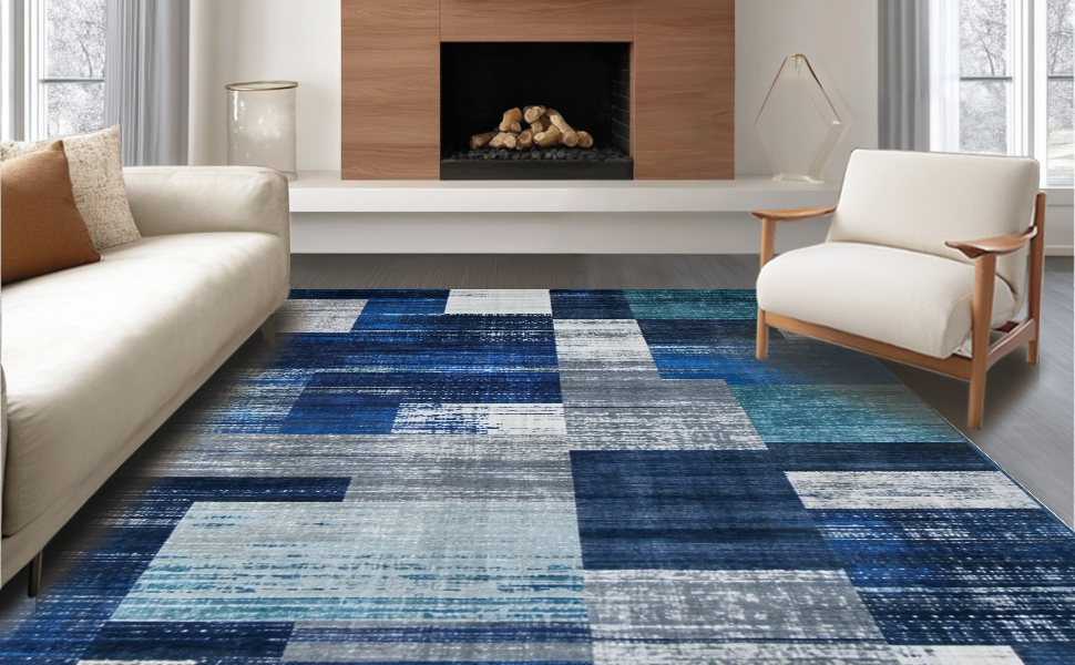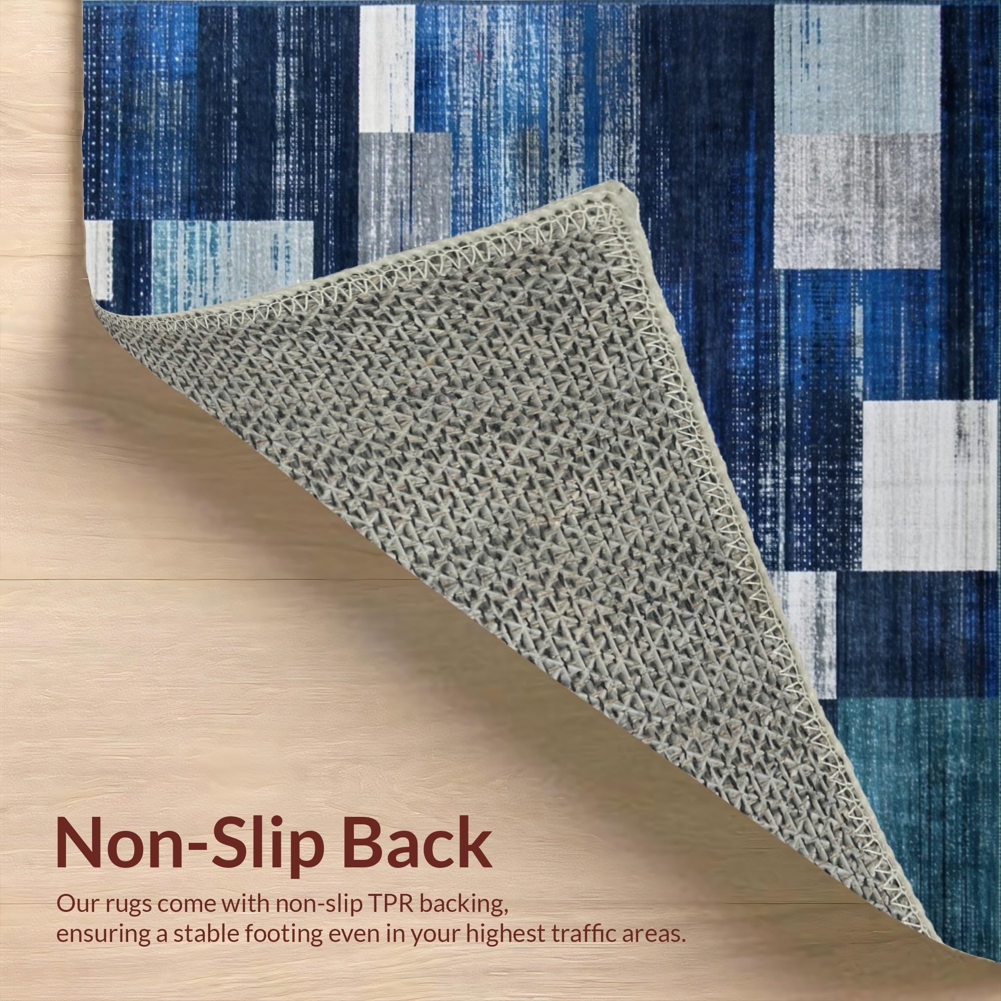 Ultra Soft Area Rug, Non Slip, Stain Resistant, Washable Area Rugs for Living Room, Bedroom, Dynamic Textured Geometric Collage(Blue) Overview: