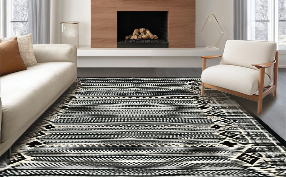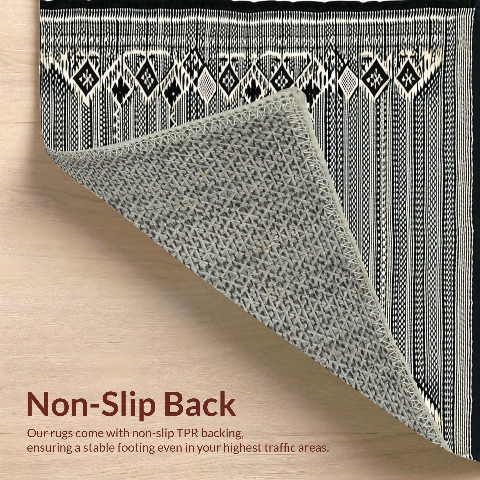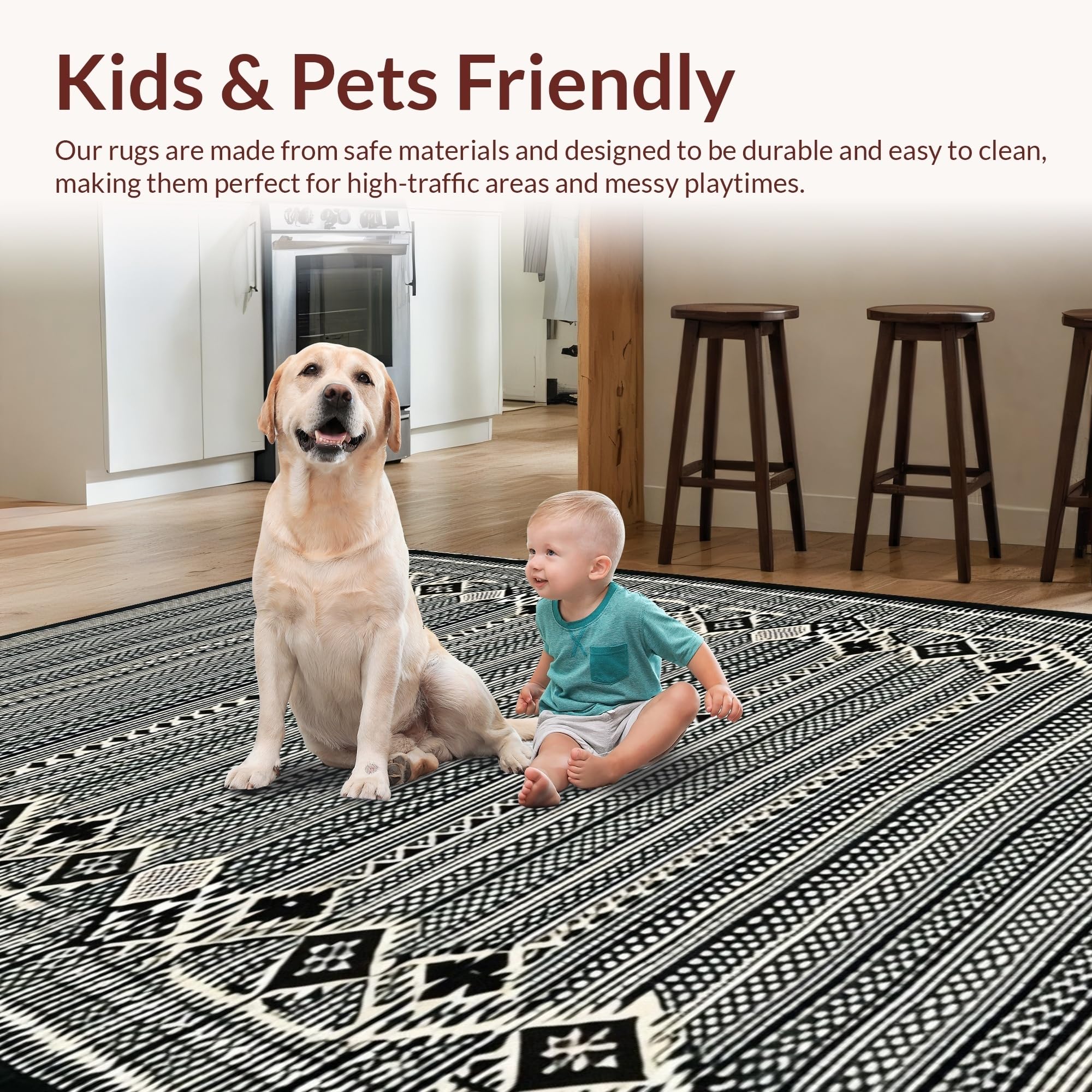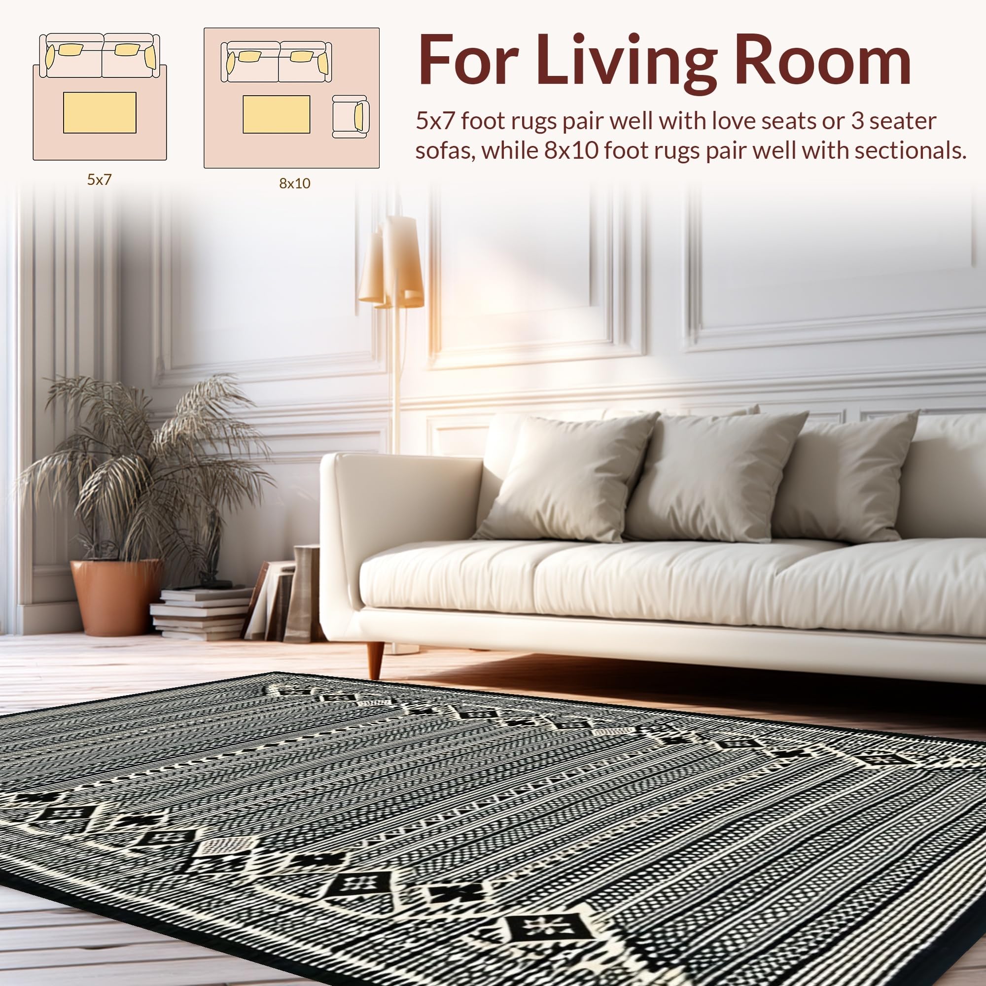 Ultra Soft Area Rug, Non Slip, Stain Resistant, Washable Area Rugs for Living Room, Bedroom, Dynamic Textured Linear Elements(Black) Overview: