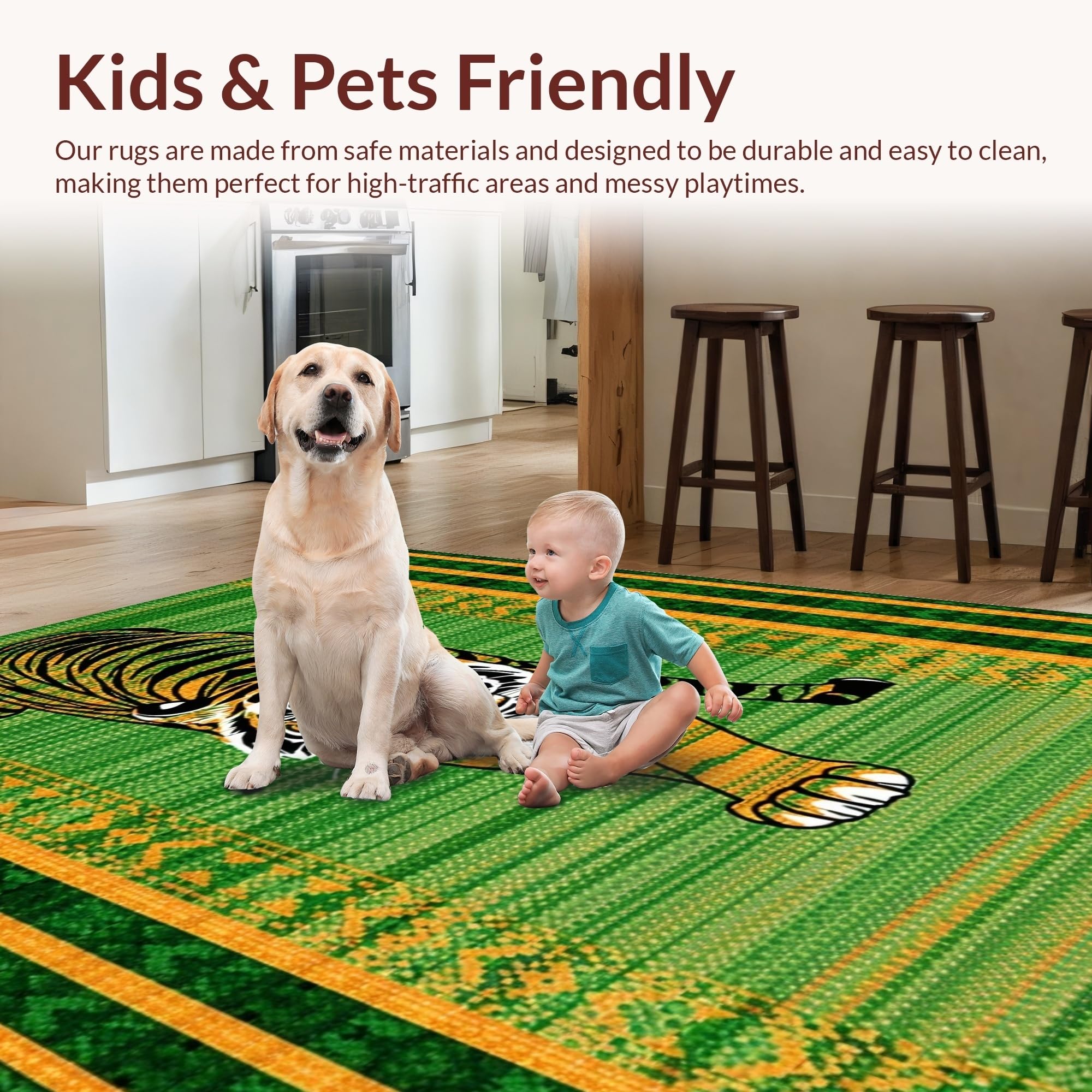 Ultra Soft Area Rug, Non Slip, Stain Resistant, Washable Area Rugs for Living Room, Bedroom, Dynamic Textured Nature Aesthetic(Green) Overview: