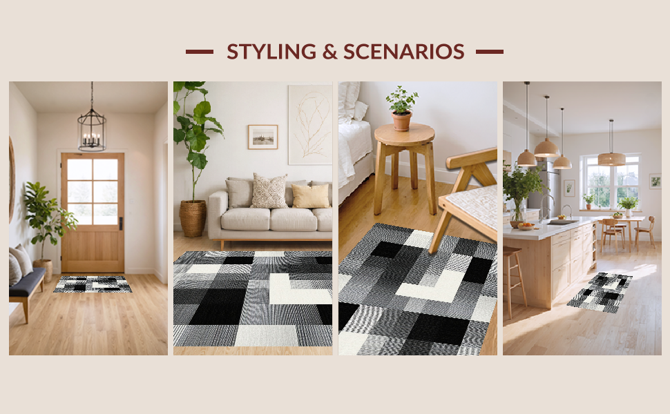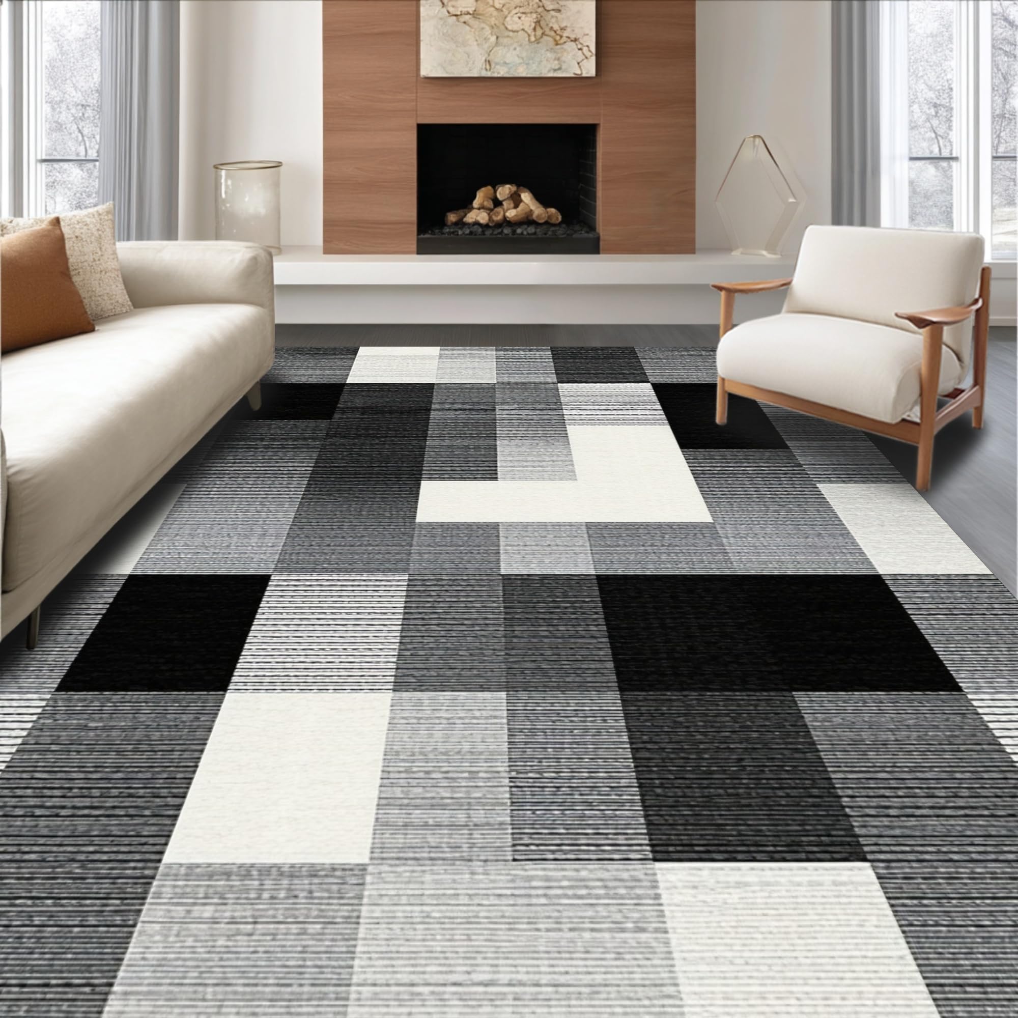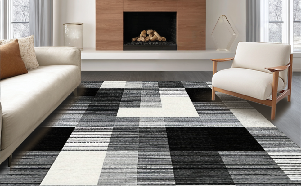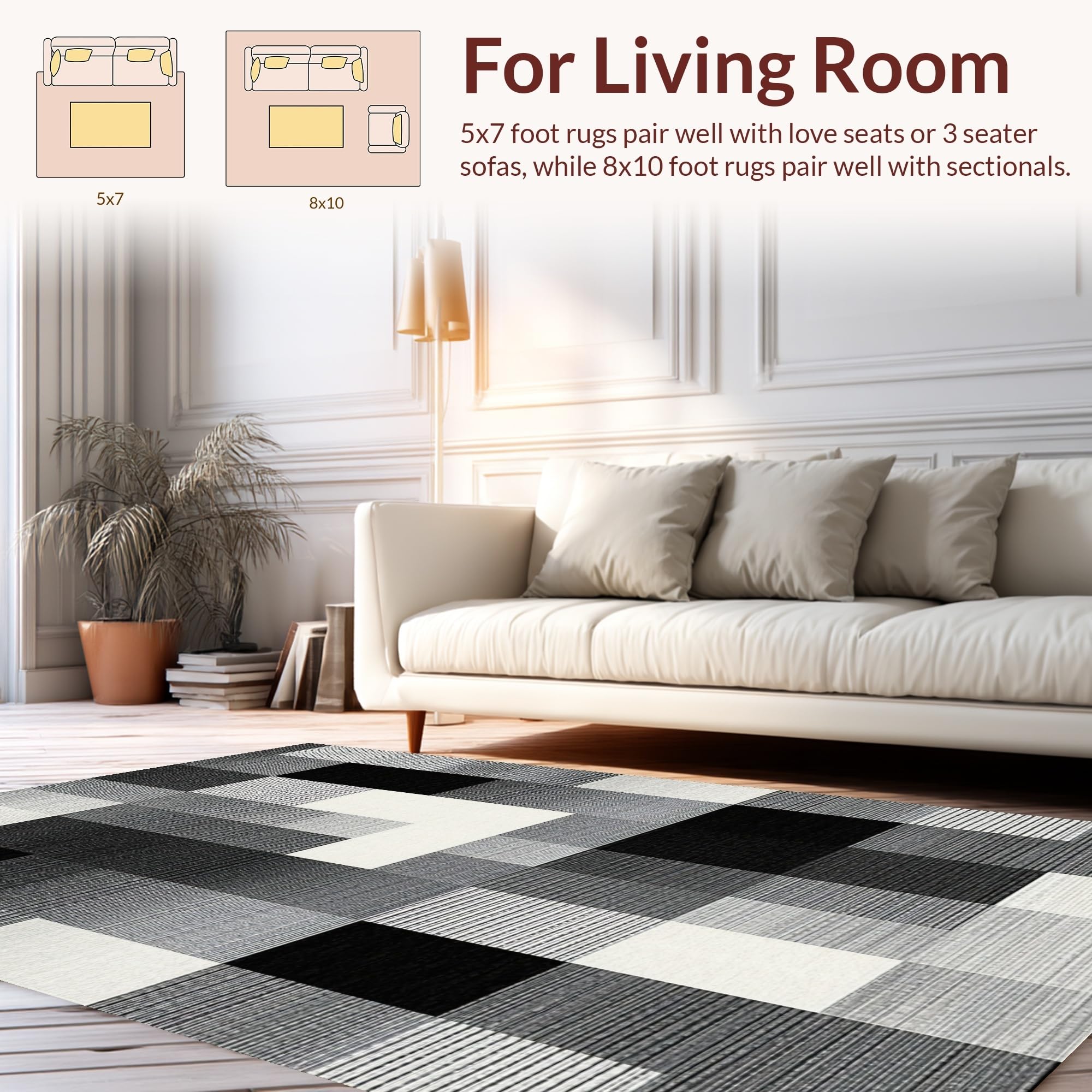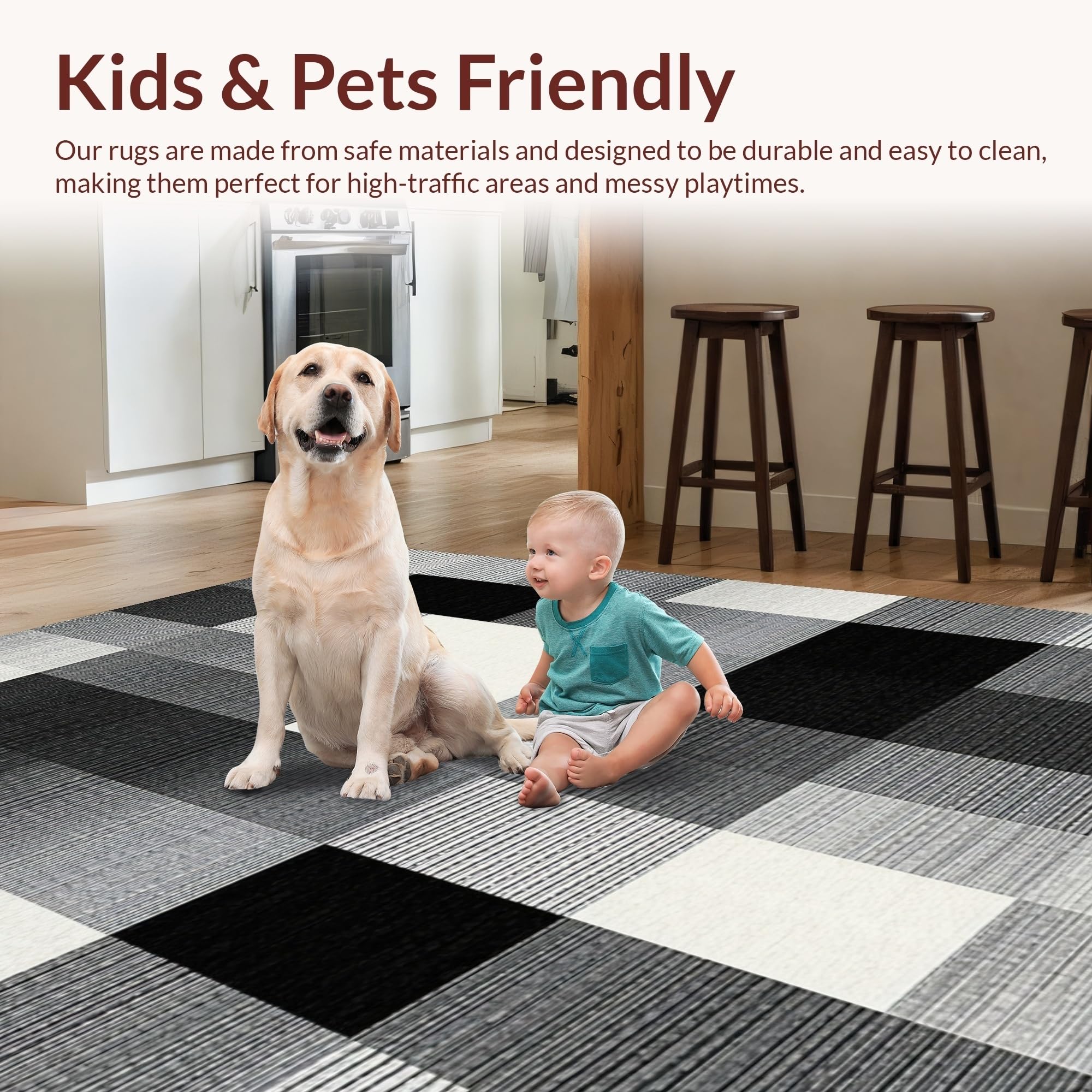 Ultra Soft Area Rug, Non Slip, Stain Resistant, Washable Area Rugs for Living Room, Bedroom, Dynamic Textured Ogee Pattern(Black) Overview: