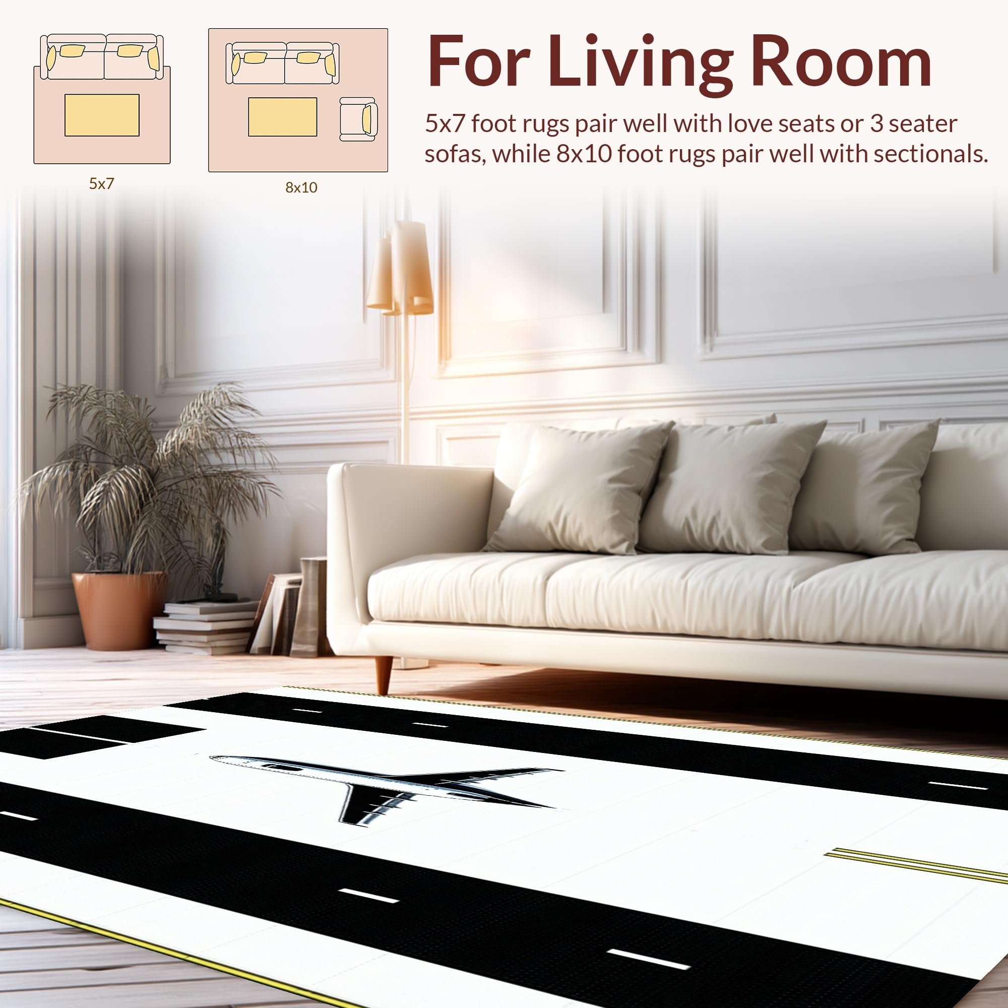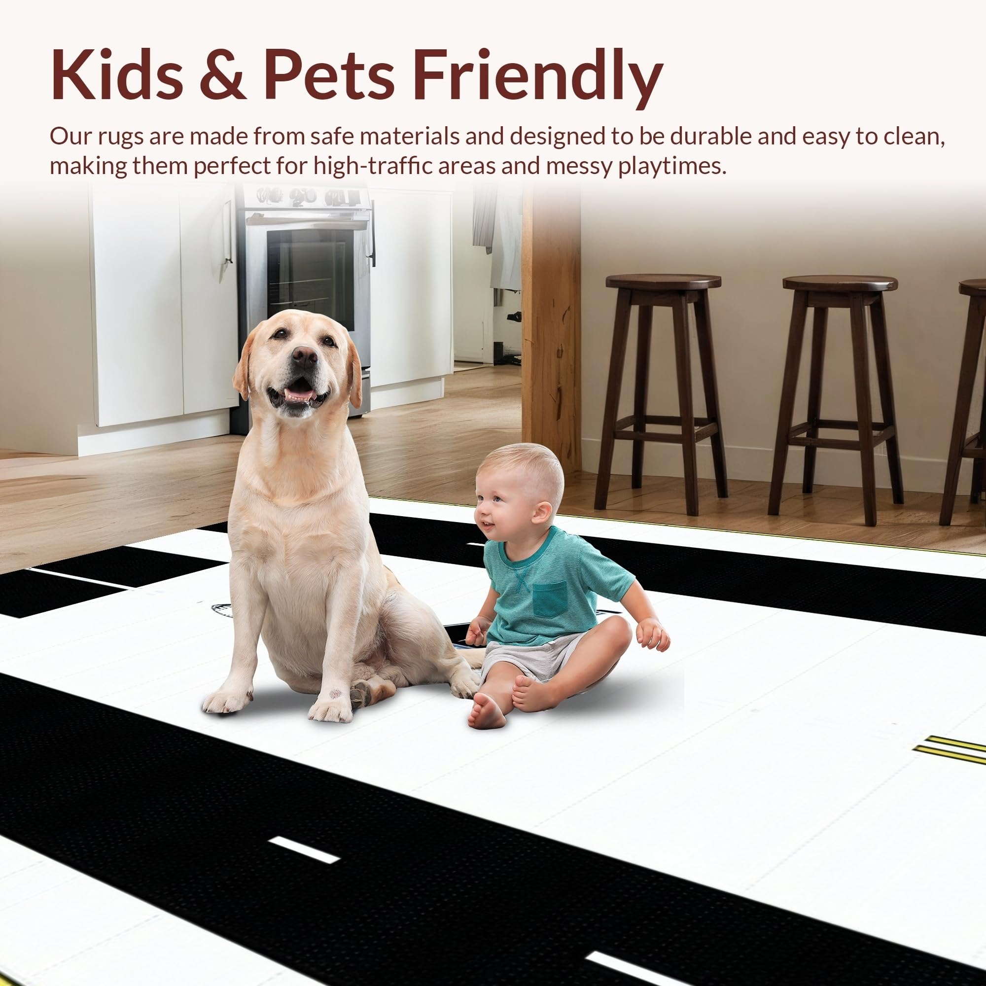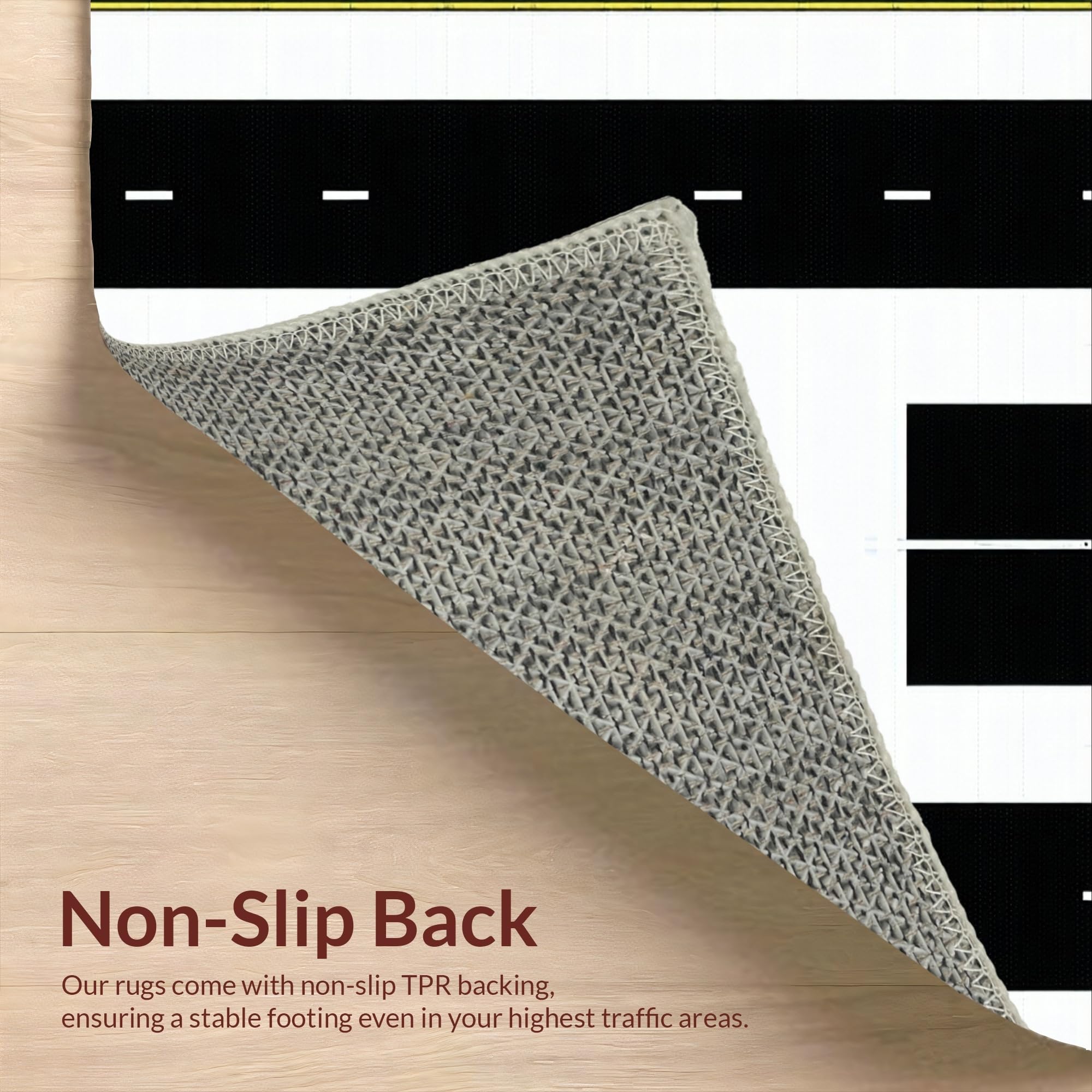 Ultra Soft Area Rug, Non Slip, Stain Resistant, Washable Area Rugs for Living Room, Bedroom, Dynamic Track Pattern Rug Art(Black) Overview:
