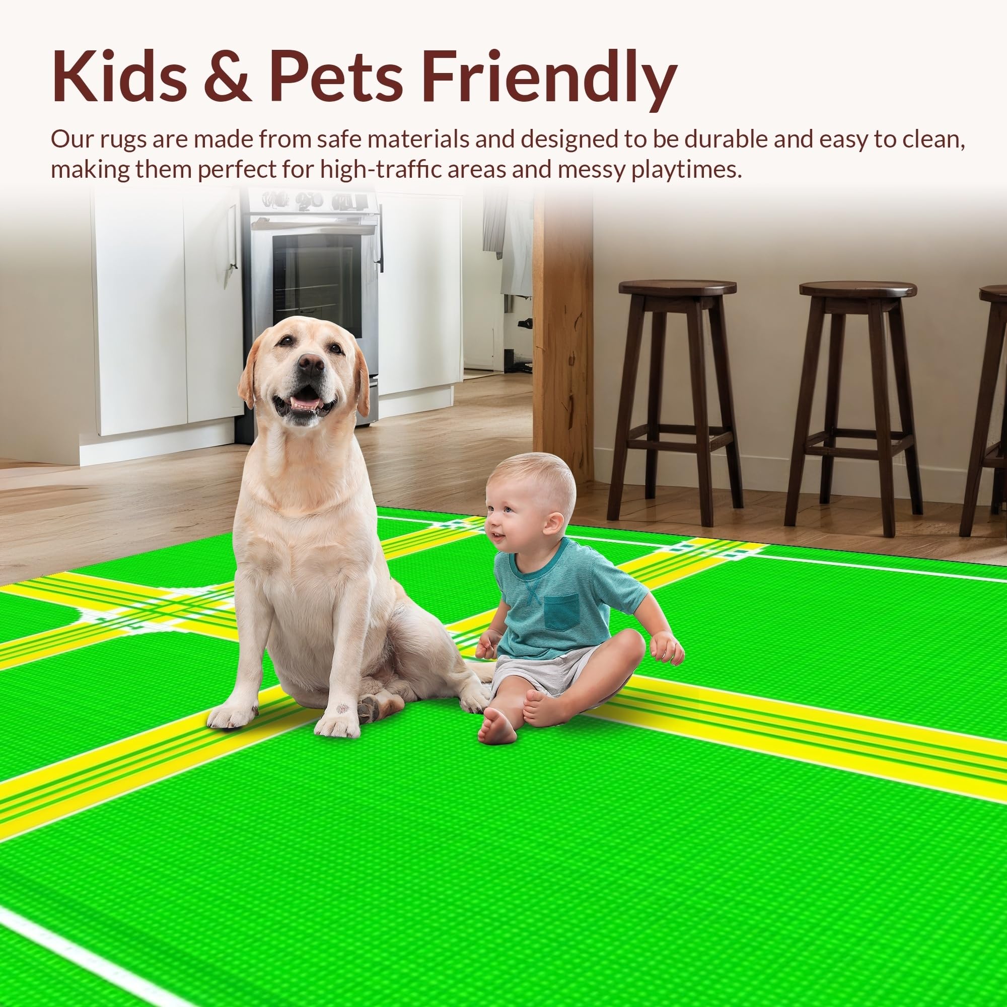 Ultra Soft Area Rug, Non Slip, Stain Resistant, Washable Area Rugs for Living Room, Bedroom, Dynamic Traffic-Themed Design(Green) Overview: