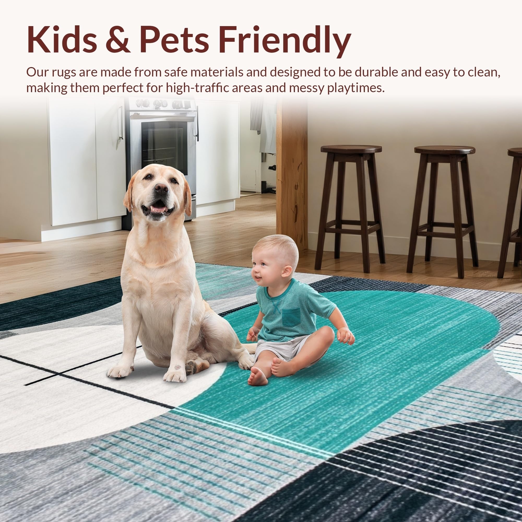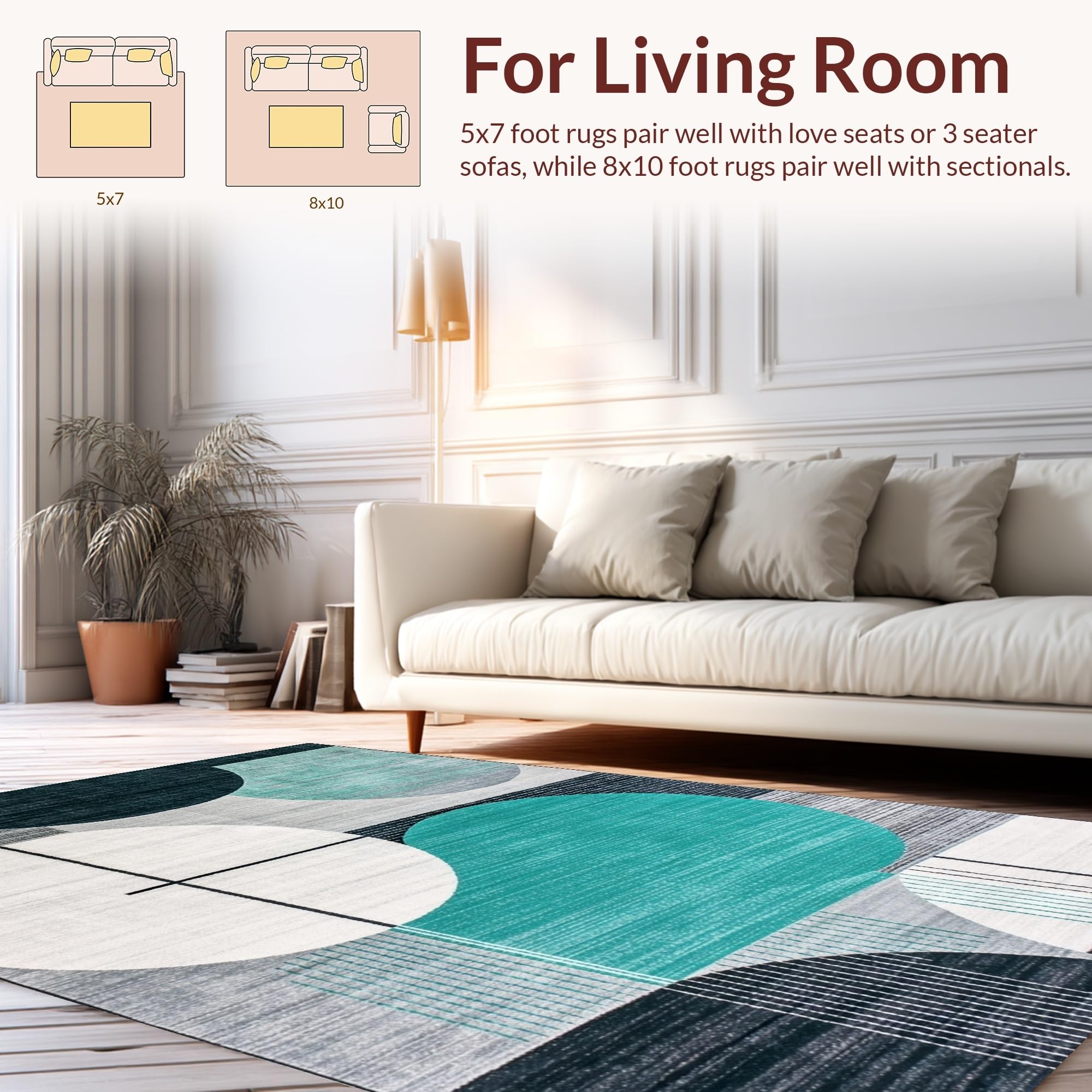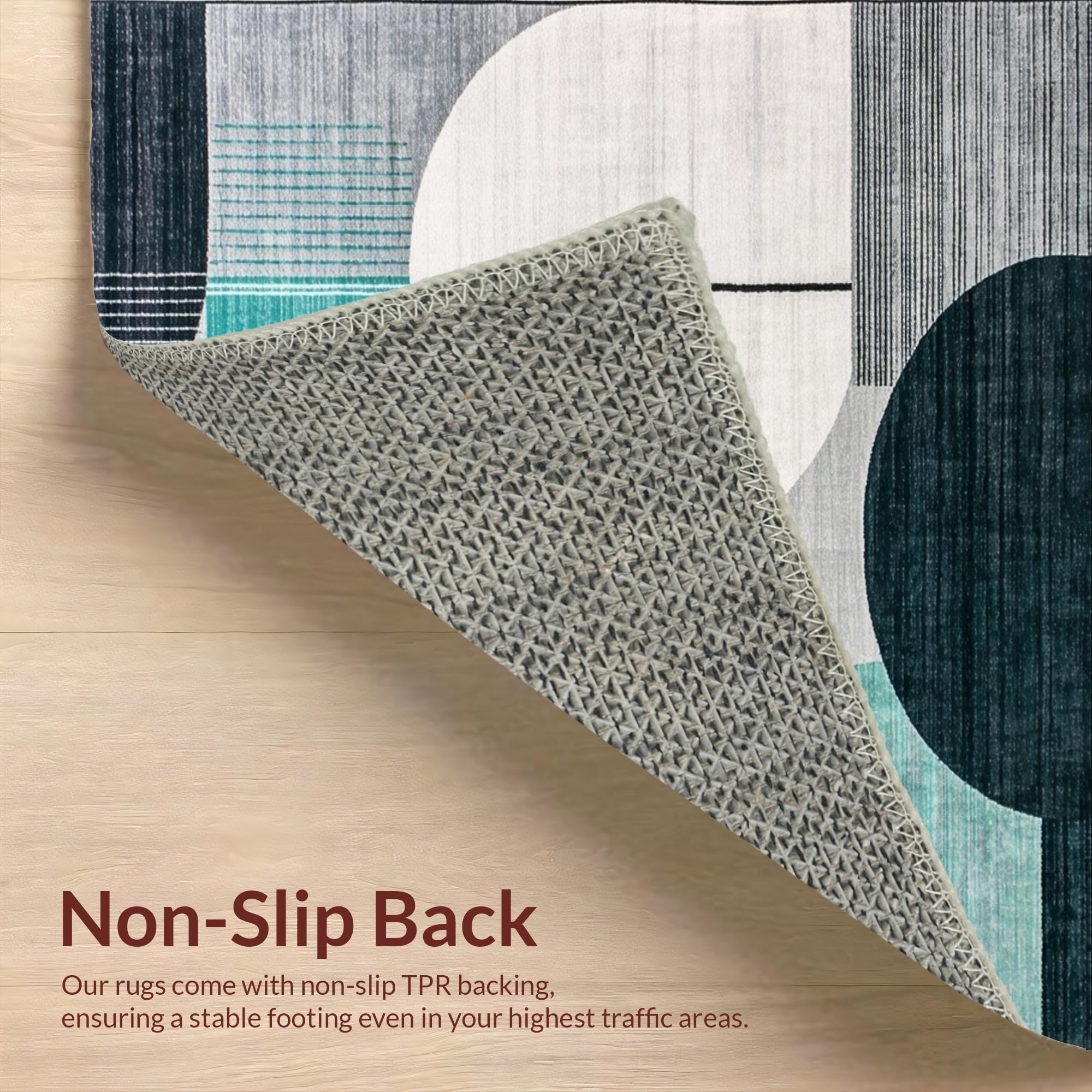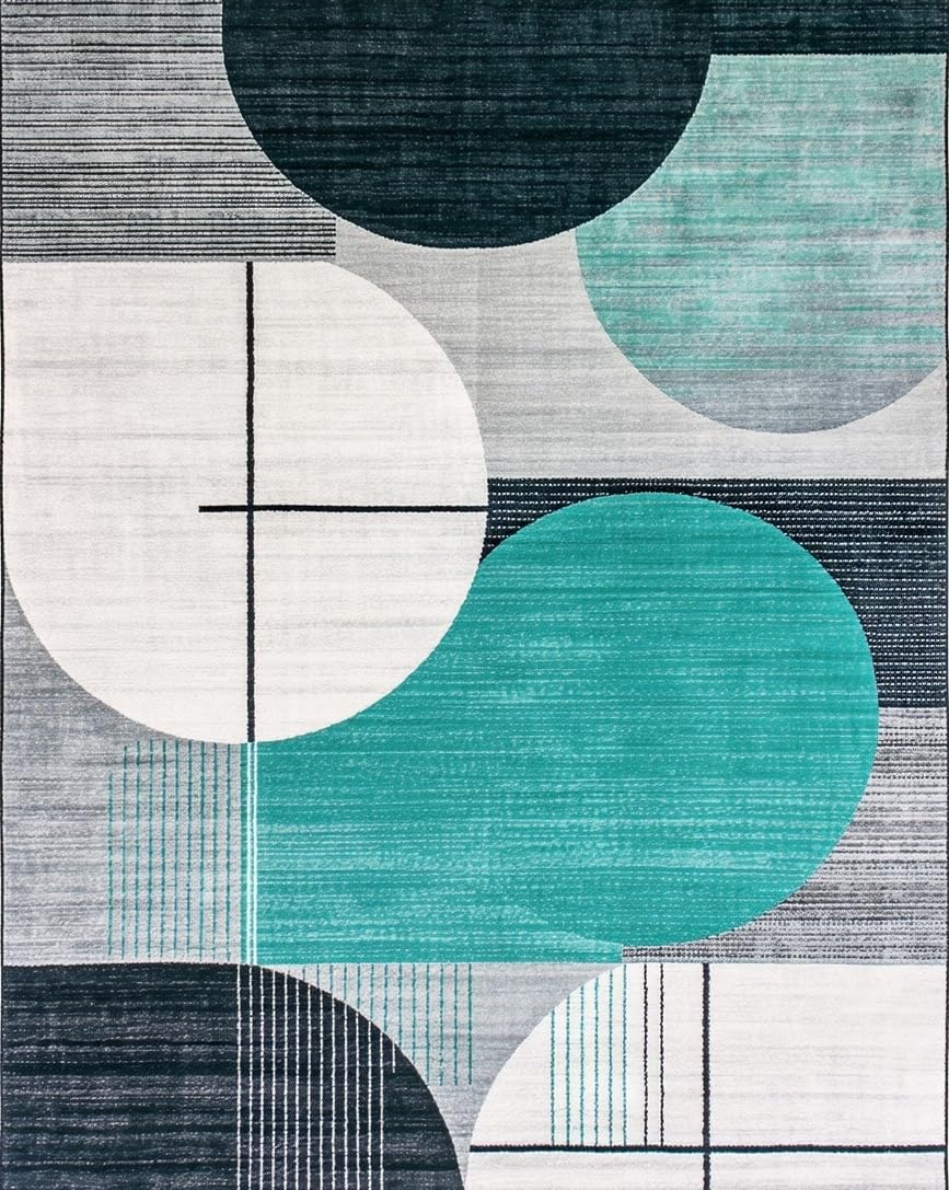 Ultra Soft Area Rug, Non Slip, Stain Resistant, Washable Area Rugs for Living Room, Bedroom, Dynamic Transitional Circular Art Composition(Gray) Overview: